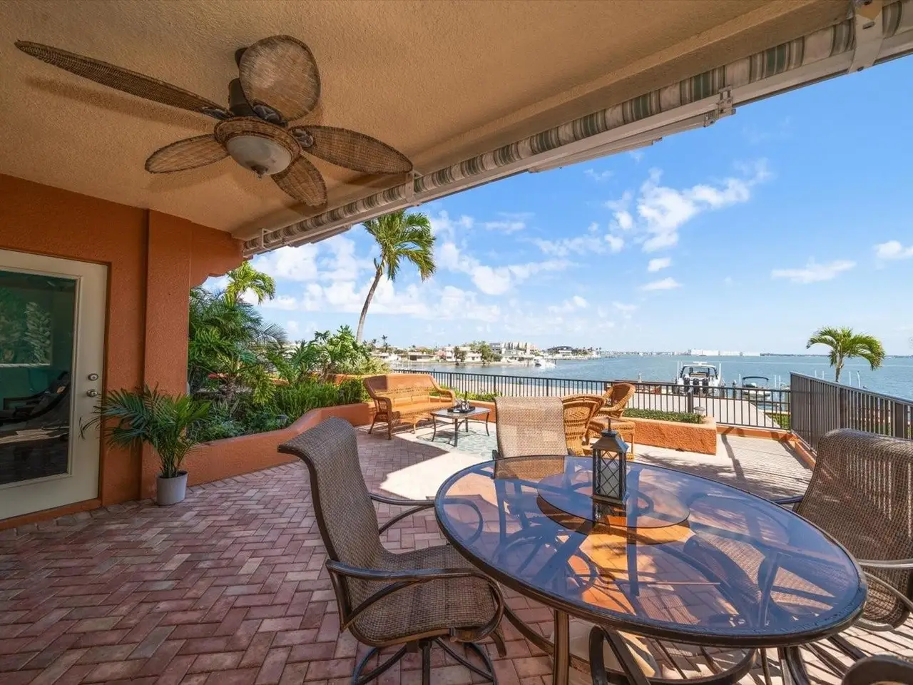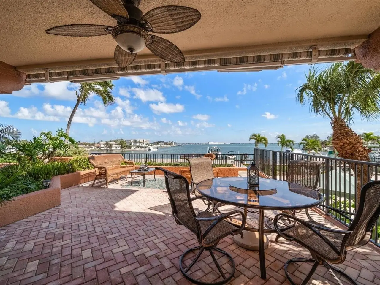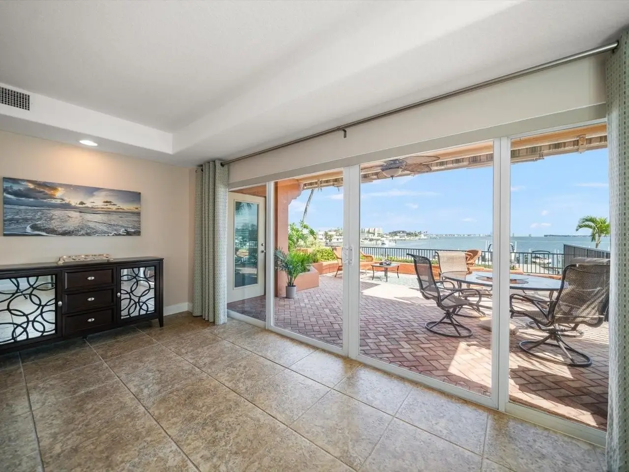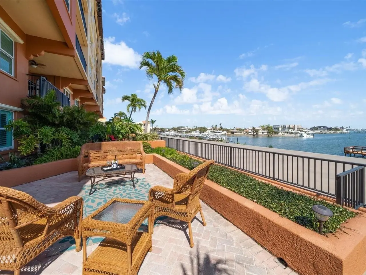 RARE OPPORTUNITY: 3 Bedrooms, 2.5 Bathrooms, 2-Car Garage CORNER UNIT with Breathtaking Water Views and a DEEDED BOAT SLIP in the exclusive, gated community of Boca Sands, St. Pete Beach. This stunning residence offers unobstructed views of Boca Ciega Bay and features a spacious, coveted GARDEN PATIO just steps from the pool—ideal for outdoor entertaining. Enter the unit through a private foyer with elevator access, leading directly into a bright, open layout. The well-appointed kitchen includes wood cabinetry, granite countertops, and a large breakfast bar. Adjacent to the kitchen is a versatile dining area or flex room, with tray ceilings, crown molding, and a granite bar perfect for entertaining. The generous great room is bathed in sunlight from the south-facing windows, with sliding doors that lead to the east-facing garden patio. Double doors from the great room lead to the elegant primary suite, featuring a California walk-in closet, a sitting area with beautiful bay views, including sunrise, and private access to the patio. The en-suite bath features dual sinks, granite counters, a soaking tub, an enclosed shower, and a separate water closet. The second bedroom also boasts an en-suite bathroom, with sliding glass doors leading to a west-facing balcony—perfect for sunset views. A third bedroom offers flexible living space, ideal for an office, exercise room, or even a fourth bedroom. Additional features include an interior laundry room with shelving and utility sink, a half bath, and a large walk-in pantry. The home also offers travertine tile and engineered wood flooring throughout. The private two-car side-by-side garage is conveniently located near the building entrance and the Community Pool & Spa area. Residents enjoy a heated pool in the winter and a cooled pool in the summer, a hot tub/spa, an outdoor shower, restrooms and private cabanas by the poolside, for the ultimate relaxation experience. The community also features a Dock for fishing, a cleaning station and a location for storage of Kayaks. Ideally situated with easy access to St. Pete Beach just across the street, downtown St. Petersburg (15 minutes away), and Tampa International Airport (35 minutes), this rare gem in Boca Sands offers a low-maintenance luxury lifestyle in a prime location. Don’t miss the opportunity to experience this exceptional home!