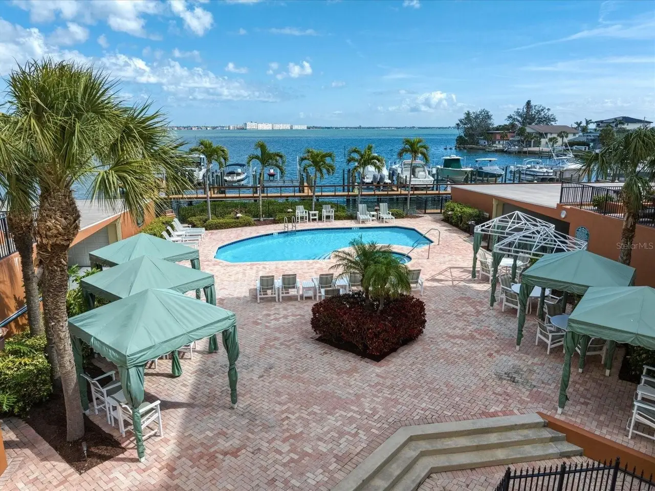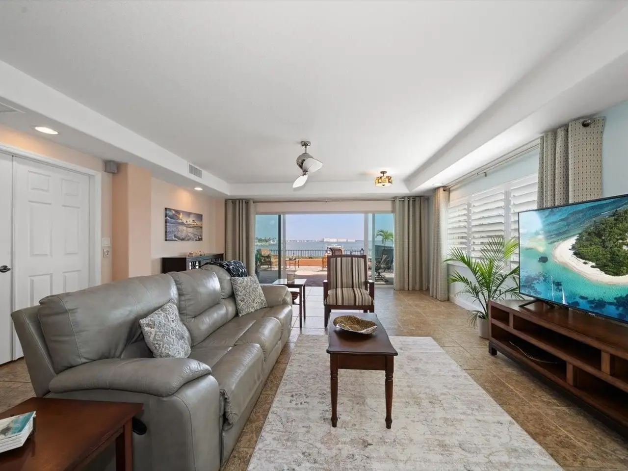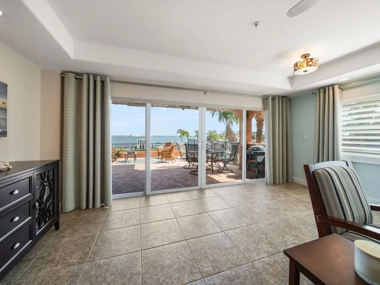 RARE OPPORTUNITY: 3 Bedrooms, 2.5 Bathrooms, 2-Car Garage CORNER UNIT with Breathtaking Water Views and a DEEDED BOAT SLIP in the exclusive, gated community of Boca Sands, St. Pete Beach. This stunning residence offers unobstructed views of Boca Ciega Bay and features a spacious, coveted GARDEN PATIO just steps from the pool—ideal for outdoor entertaining. Enter the unit through a private foyer with elevator access, leading directly into a bright, open layout. The well-appointed kitchen includes wood cabinetry, granite countertops, and a large breakfast bar. Adjacent to the kitchen is a versatile dining area or flex room, with tray ceilings, crown molding, and a granite bar perfect for entertaining. The generous great room is bathed in sunlight from the south-facing windows, with sliding doors that lead to the east-facing garden patio. Double doors from the great room lead to the elegant primary suite, featuring a California walk-in closet, a sitting area with beautiful bay views, including sunrise, and private access to the patio. The en-suite bath features dual sinks, granite counters, a soaking tub, an enclosed shower, and a separate water closet. The second bedroom also boasts an en-suite bathroom, with sliding glass doors leading to a west-facing balcony—perfect for sunset views. A third bedroom offers flexible living space, ideal for an office, exercise room, or even a fourth bedroom. Additional features include an interior laundry room with shelving and utility sink, a half bath, and a large walk-in pantry. The home also offers travertine tile and engineered wood flooring throughout. The private two-car side-by-side garage is conveniently located near the building entrance and the Community Pool & Spa area. Residents enjoy a heated pool in the winter and a cooled pool in the summer, a hot tub/spa, an outdoor shower, restrooms and private cabanas by the poolside, for the ultimate relaxation experience. The community also features a Dock for fishing, a cleaning station and a location for storage of Kayaks. Ideally situated with easy access to St. Pete Beach just across the street, downtown St. Petersburg (15 minutes away), and Tampa International Airport (35 minutes), this rare gem in Boca Sands offers a low-maintenance luxury lifestyle in a prime location. Don’t miss the opportunity to experience this exceptional home!