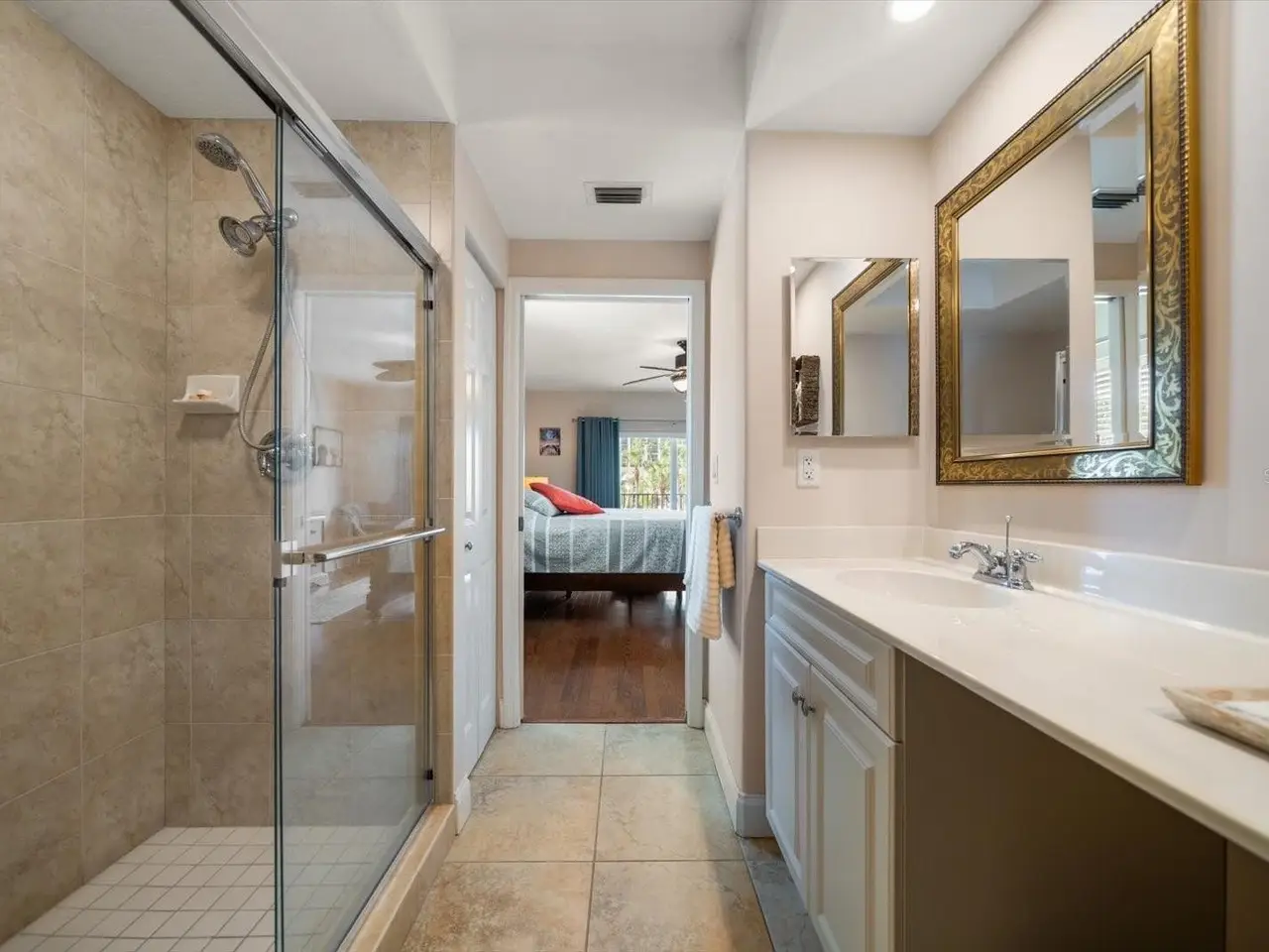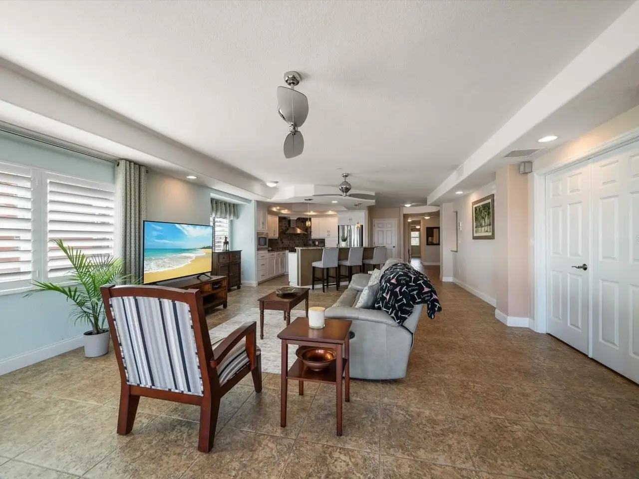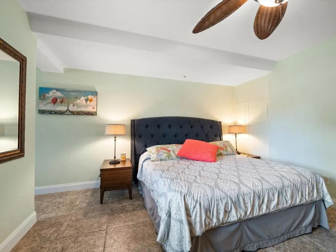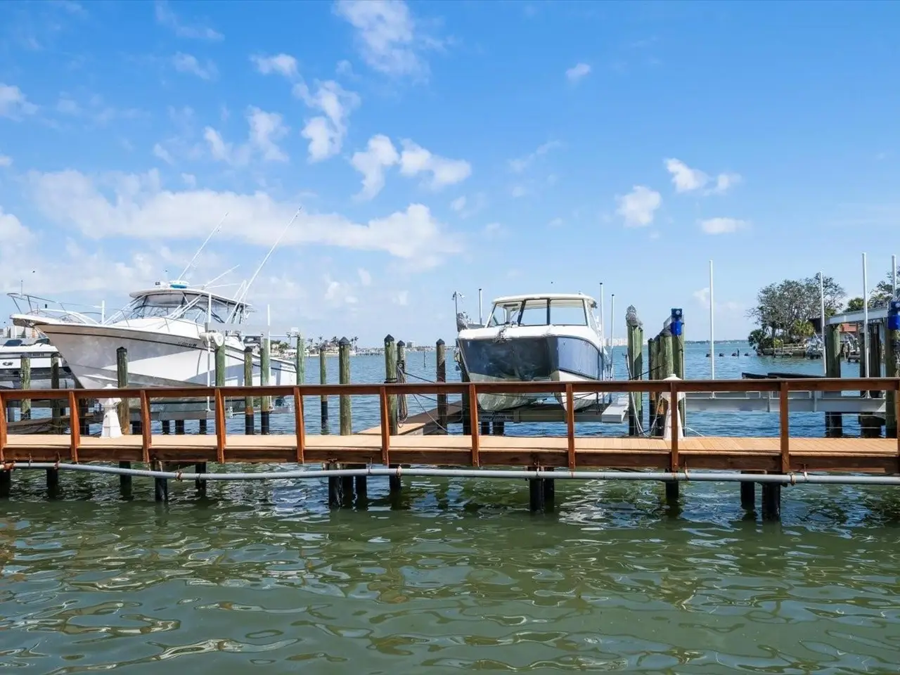 RARE OPPORTUNITY: 3 Bedrooms, 2.5 Bathrooms, 2-Car Garage CORNER UNIT with Breathtaking Water Views and a DEEDED BOAT SLIP in the exclusive, gated community of Boca Sands, St. Pete Beach. This stunning residence offers unobstructed views of Boca Ciega Bay and features a spacious, coveted GARDEN PATIO just steps from the pool—ideal for outdoor entertaining. Enter the unit through a private foyer with elevator access, leading directly into a bright, open layout. The well-appointed kitchen includes wood cabinetry, granite countertops, and a large breakfast bar. Adjacent to the kitchen is a versatile dining area or flex room, with tray ceilings, crown molding, and a granite bar perfect for entertaining. The generous great room is bathed in sunlight from the south-facing windows, with sliding doors that lead to the east-facing garden patio. Double doors from the great room lead to the elegant primary suite, featuring a California walk-in closet, a sitting area with beautiful bay views, including sunrise, and private access to the patio. The en-suite bath features dual sinks, granite counters, a soaking tub, an enclosed shower, and a separate water closet. The second bedroom also boasts an en-suite bathroom, with sliding glass doors leading to a west-facing balcony—perfect for sunset views. A third bedroom offers flexible living space, ideal for an office, exercise room, or even a fourth bedroom. Additional features include an interior laundry room with shelving and utility sink, a half bath, and a large walk-in pantry. The home also offers travertine tile and engineered wood flooring throughout. The private two-car side-by-side garage is conveniently located near the building entrance and the Community Pool & Spa area. Residents enjoy a heated pool in the winter and a cooled pool in the summer, a hot tub/spa, an outdoor shower, restrooms and private cabanas by the poolside, for the ultimate relaxation experience. The community also features a Dock for fishing, a cleaning station and a location for storage of Kayaks. Ideally situated with easy access to St. Pete Beach just across the street, downtown St. Petersburg (15 minutes away), and Tampa International Airport (35 minutes), this rare gem in Boca Sands offers a low-maintenance luxury lifestyle in a prime location. Don’t miss the opportunity to experience this exceptional home!