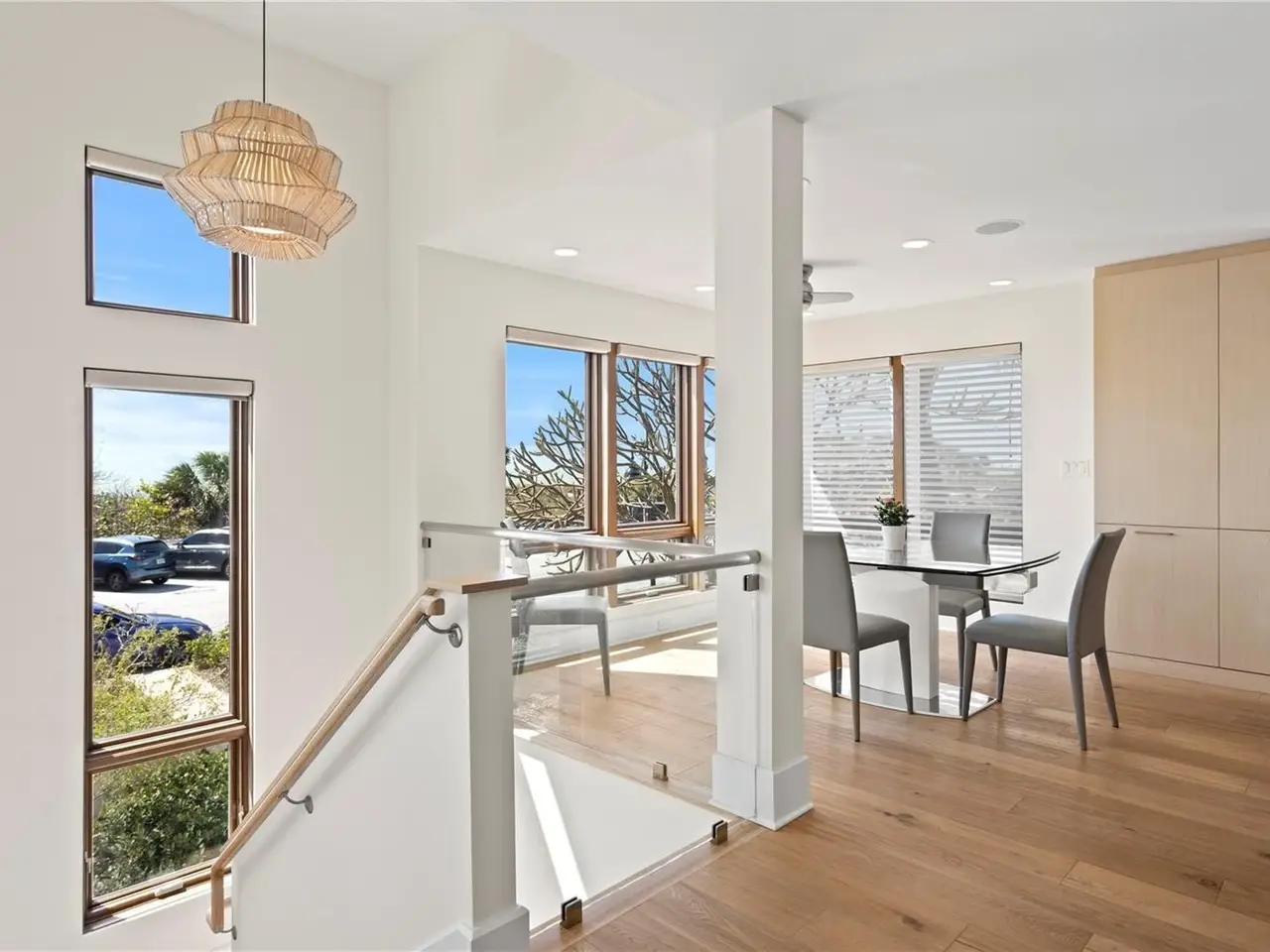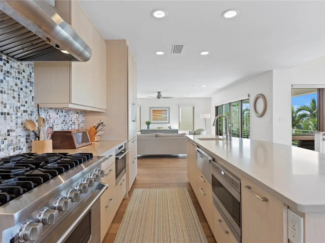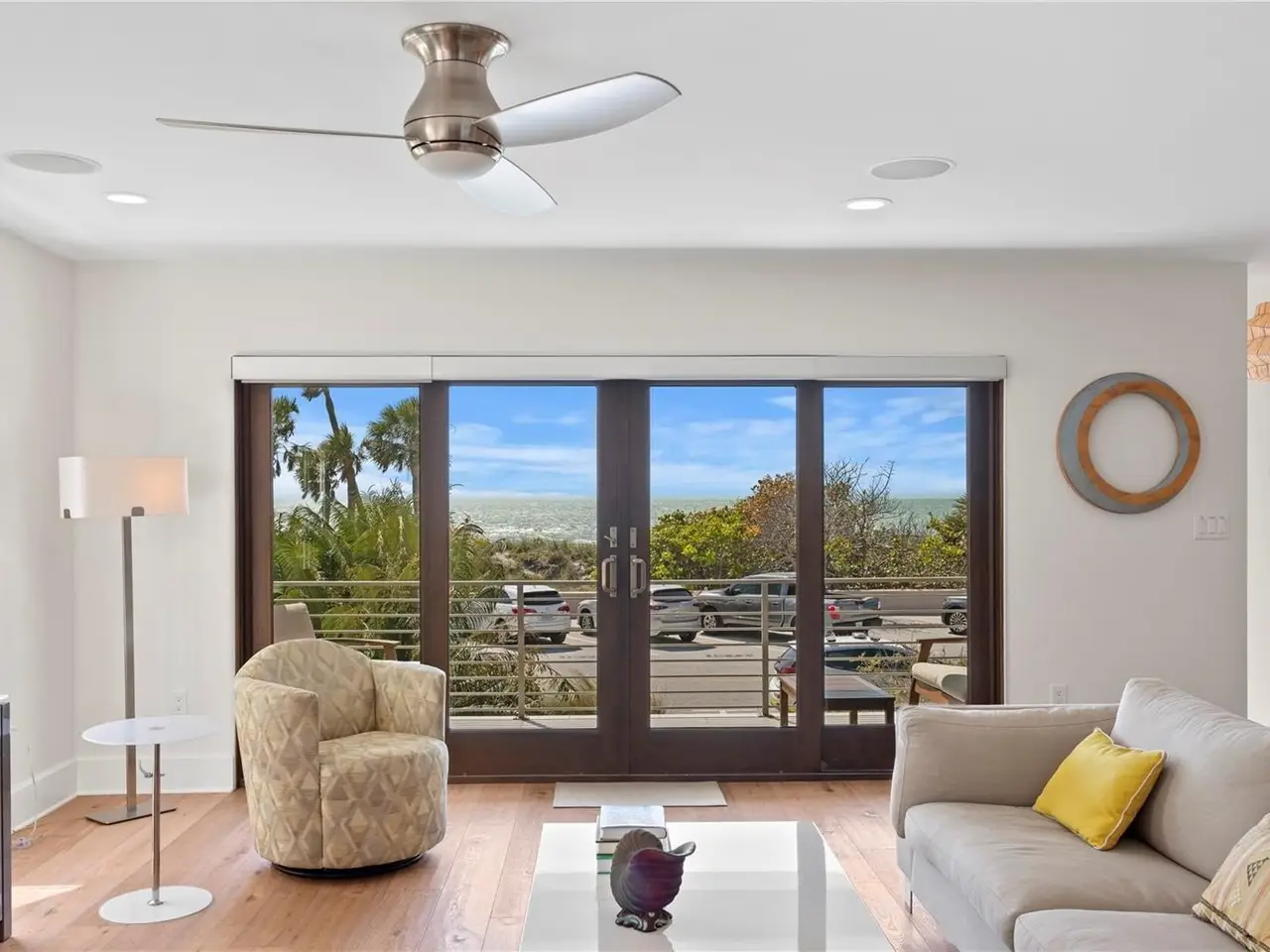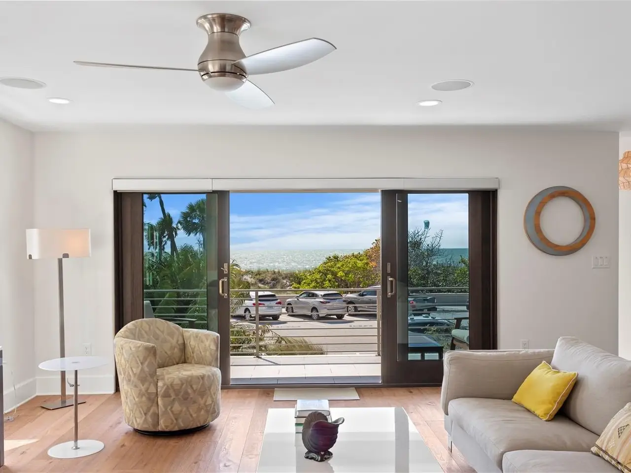 Modern Gulf-View Masterpiece | 4 Bed, 4 Bath | Custom Luxury Finishes. This contemporary architectural gem offers breathtaking, unobstructed Gulf views and is move-in ready. Renovated in 2013, the home features approximately 2,350 sq. ft. of light-filled living space upstairs, with an additional 1,600 sq. ft. on the lower level. Designed for elevated coastal living, this 4-bedroom, 4-bath residence includes a private elevator, smart home automation, and two-zone HVAC for maximum comfort. Upper-level HVAC has UV Air Purification. The open-concept main living area features wide-plank oak flooring, while all bathrooms are beautifully tiled. The chef’s dream kitchen boasts a custom gourmet setup, including: • Viking 6-burner natural gas range with electric oven • Built-in Liebherr refrigerator • Miele dishwasher with panel matching cabinetry • Wolf builtin steam convection oven, warming drawer, and microwave • Quartz countertops The luxurious primary suite offers a spacious walk-in closet and rich dark oak flooring complemented by powered window blinds for modern convenience. Step out onto a private outdoor tile deck, perfect for morning coffee or evening relaxation. Additional amenities include laundry room, an entertainment bar area as well as a media room equipped with a 75” Sony TV and surround sound. Built for durability and peace of mind, the home features Pella and Andersen hurricane-resistant windows and sliding doors. Sprinkler system pump replaced, and all sprinklers inspected and operating 2025. The oversized garage accommodates up to two vehicles. Roof is Rolled Modified Bitumen. Flood elevation is 9 feet. Bonus: Potential for a third-floor roof deck addition to expand outdoor living and take in panoramic Gulf views