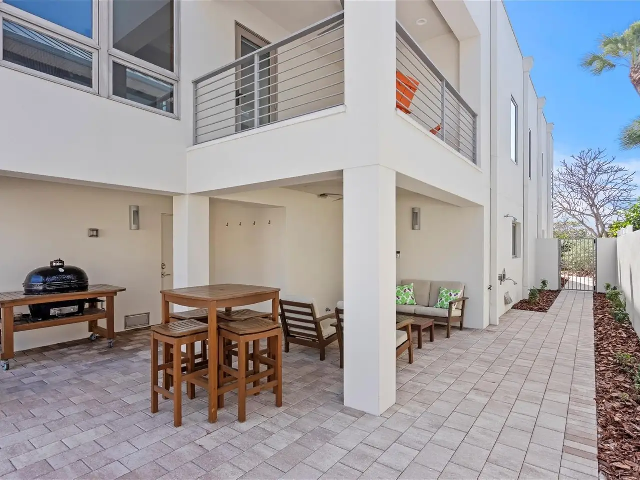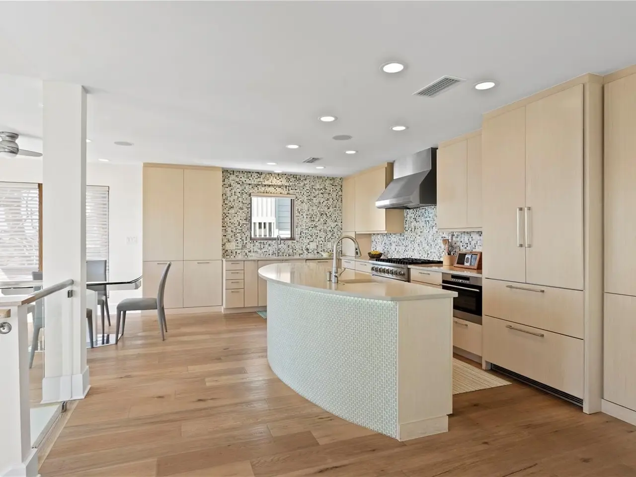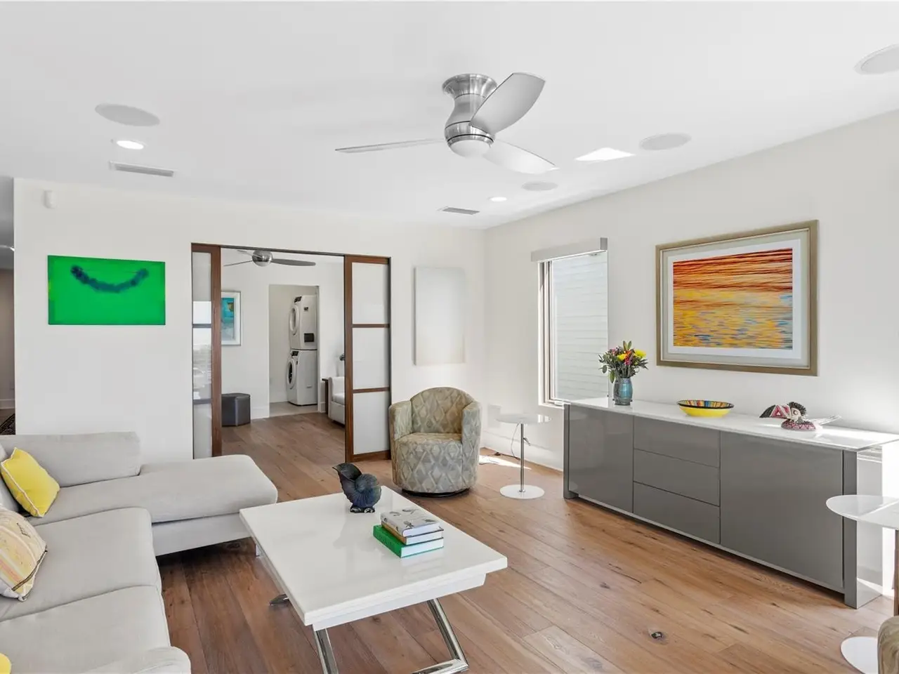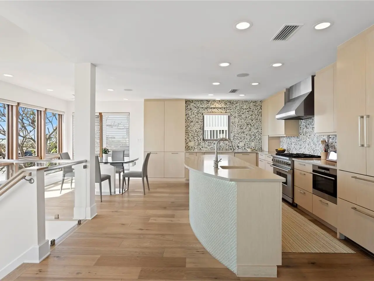 Modern Gulf-View Masterpiece | 4 Bed, 4 Bath | Custom Luxury Finishes. This contemporary architectural gem offers breathtaking, unobstructed Gulf views and is move-in ready. Renovated in 2013, the home features approximately 2,350 sq. ft. of light-filled living space upstairs, with an additional 1,600 sq. ft. on the lower level. Designed for elevated coastal living, this 4-bedroom, 4-bath residence includes a private elevator, smart home automation, and two-zone HVAC for maximum comfort. Upper-level HVAC has UV Air Purification. The open-concept main living area features wide-plank oak flooring, while all bathrooms are beautifully tiled. The chef’s dream kitchen boasts a custom gourmet setup, including: • Viking 6-burner natural gas range with electric oven • Built-in Liebherr refrigerator • Miele dishwasher with panel matching cabinetry • Wolf builtin steam convection oven, warming drawer, and microwave • Quartz countertops The luxurious primary suite offers a spacious walk-in closet and rich dark oak flooring complemented by powered window blinds for modern convenience. Step out onto a private outdoor tile deck, perfect for morning coffee or evening relaxation. Additional amenities include laundry room, an entertainment bar area as well as a media room equipped with a 75” Sony TV and surround sound. Built for durability and peace of mind, the home features Pella and Andersen hurricane-resistant windows and sliding doors. Sprinkler system pump replaced, and all sprinklers inspected and operating 2025. The oversized garage accommodates up to two vehicles. Roof is Rolled Modified Bitumen. Flood elevation is 9 feet. Bonus: Potential for a third-floor roof deck addition to expand outdoor living and take in panoramic Gulf views