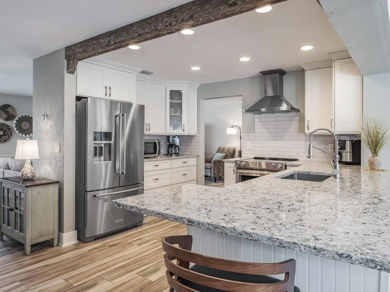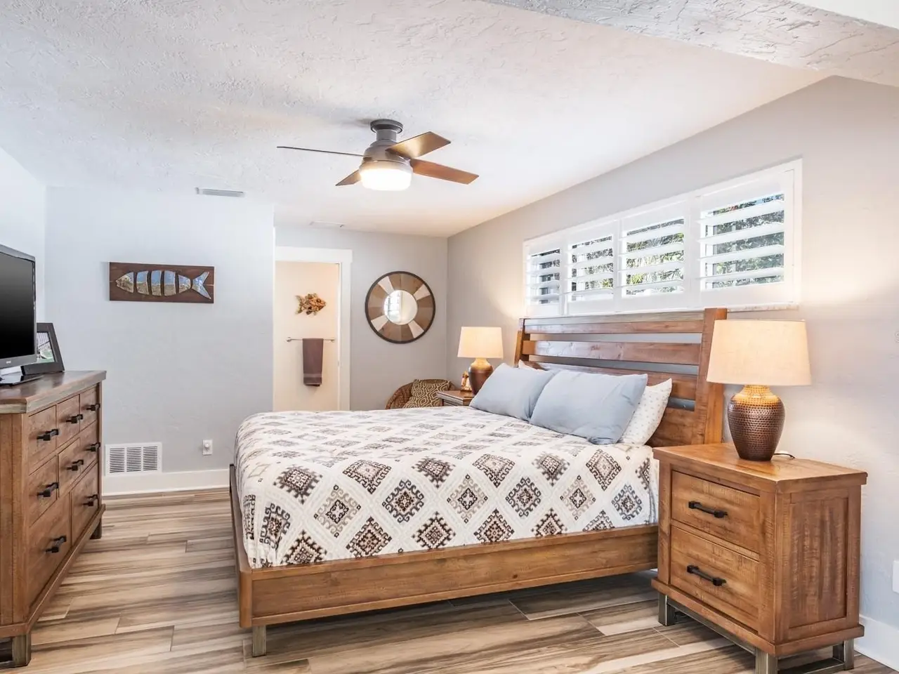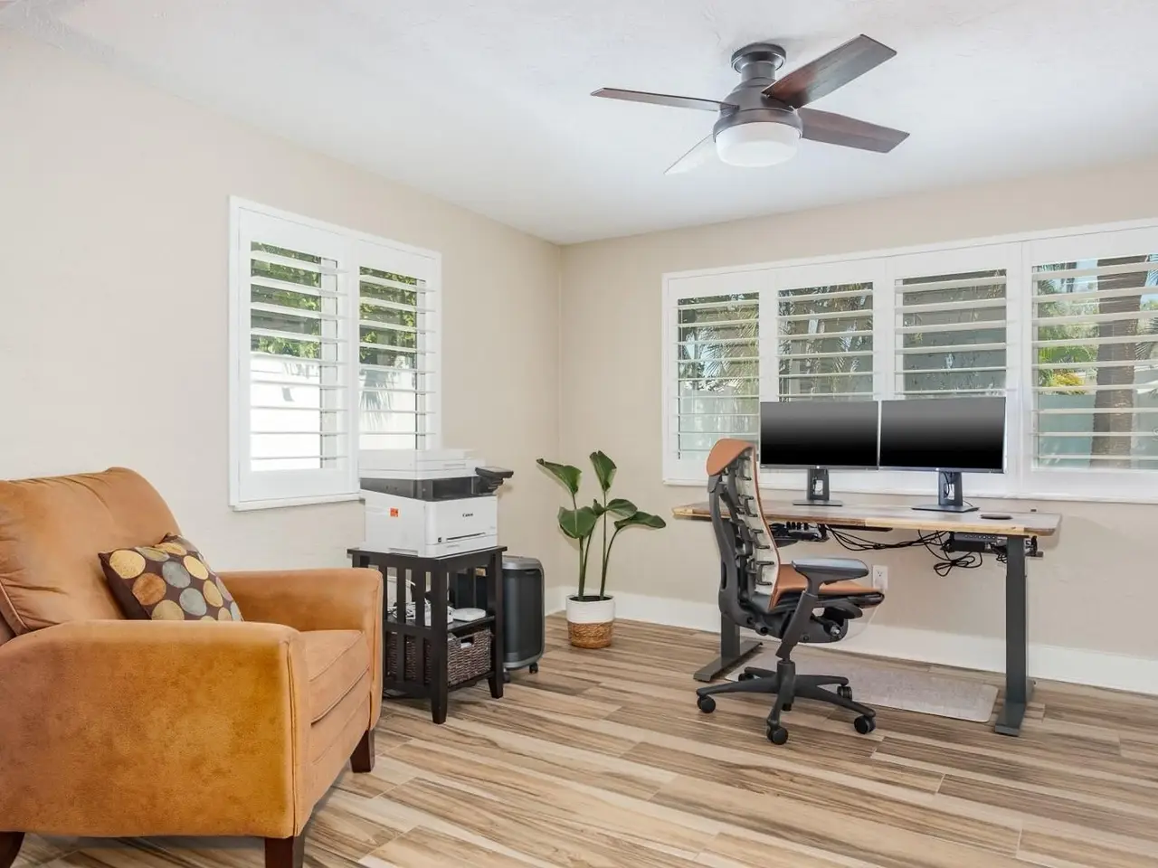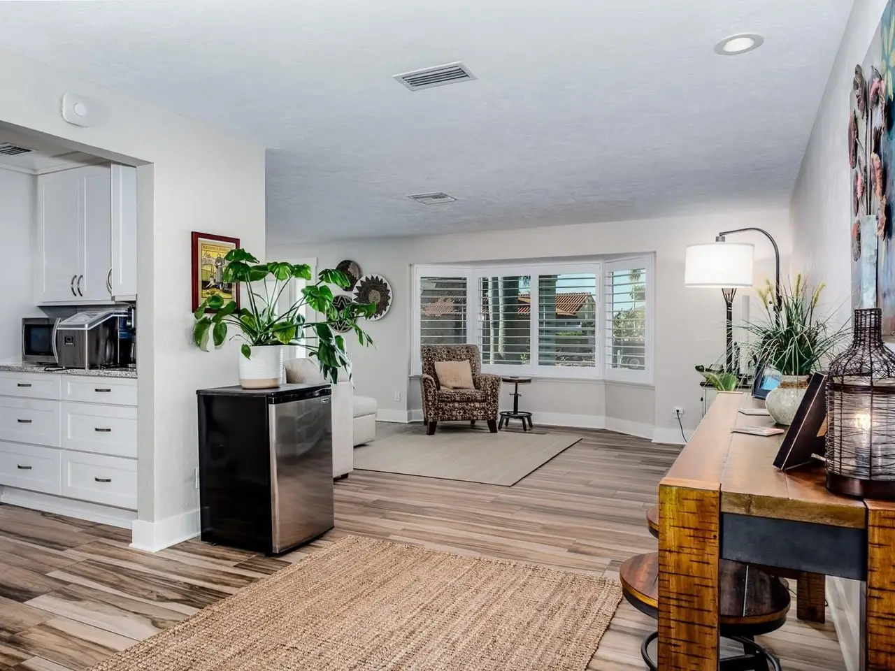 Welcome to the secluded Island of Vina Del Mar! This 2BR/2BA coastal-inspired home in the coveted Vina Del Mar neighborhood offers light-filled, open-concept living with views of the landscaped backyard and saltwater pool. The updated kitchen features custom quartz countertops, all-wood cabinetry & pantry with soft-close drawers, and a striking 100-year-old cypress beam with matching accent trim. The split floor plan includes a spacious primary suite with an en suite bath, a walk-in closet with custom shelving, and a versatile office/den/nursery space with pool access. The guest suite offers a built-in closet and adjacent bath, with a custom pocket door for added privacy. Two distinct living areas provide flexibility—one for larger gatherings, the other is open to the kitchen with direct pool access. The covered lanai offers shade while overlooking the private backyard, with an adjacent lounge area ideal for cooling off indoors. Meticulously upgraded and kept, the home features a new roof (2025), pool pump (2024), water purification & filtration system (2022), water heater (2020), Air Knight purification system (2017), custom Pebble-finish saltwater pool (2017), wood plank-style porcelain flooring, plantation shutters, Nest smart thermostat & smoke/CO detectors, updated electrical panel, newer windows and doors, fresh paint, and more. The two-car garage provides additional storage, while underground power lines preserve unobstructed views. Nearby Vina Del Mar Park offers a playground, dog park, pickleball, tennis, and basketball courts. Cruise down to the beach, restaurants, shops and entertainment in famous Pass-A-Grille or even a short drive to the vibrant Downtown St Pete for nightlife and the St Pete Pier. Don’t miss your chance to live the Salt Life!