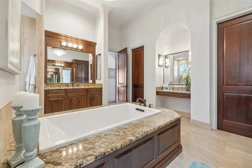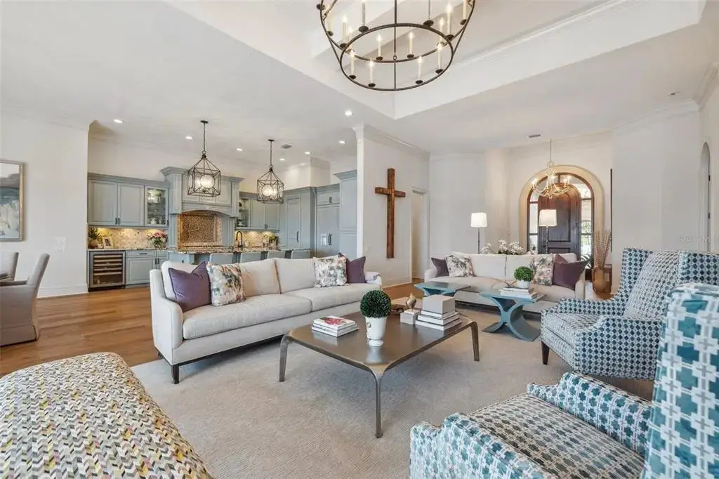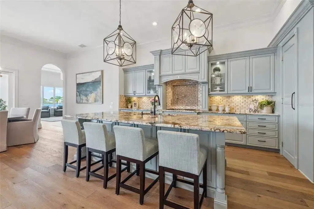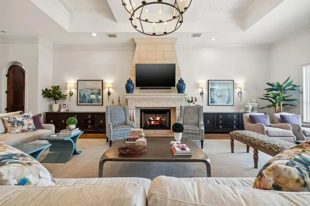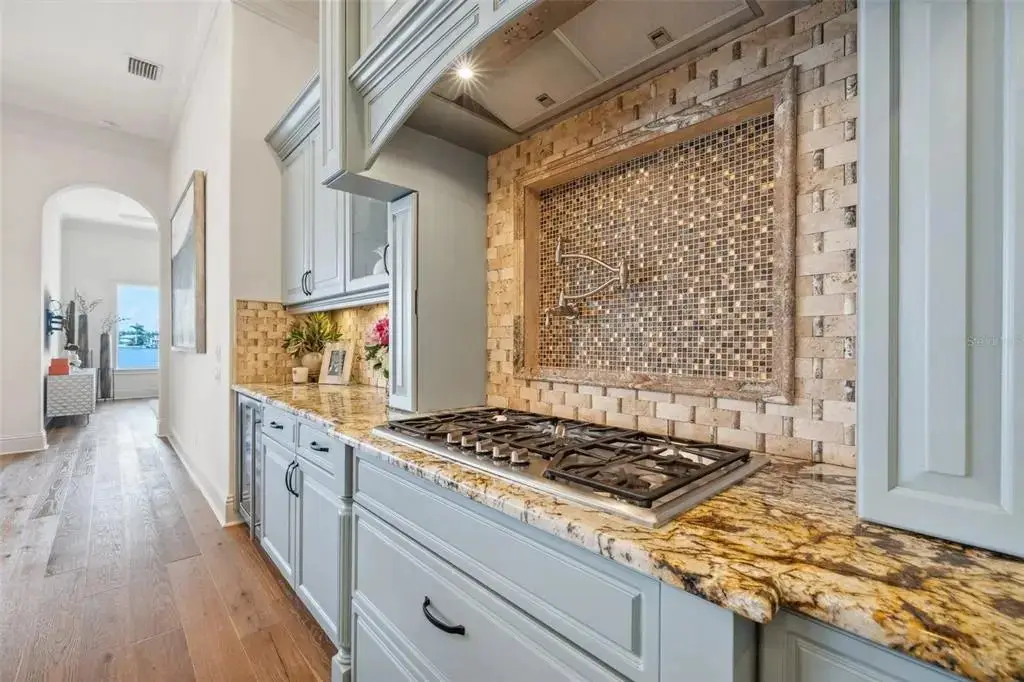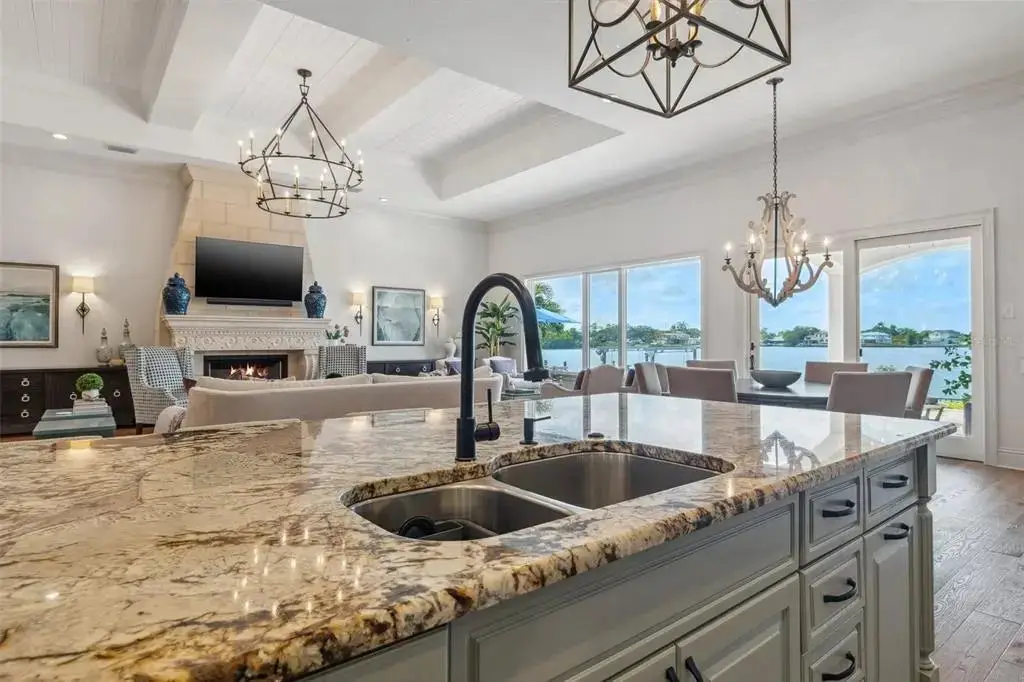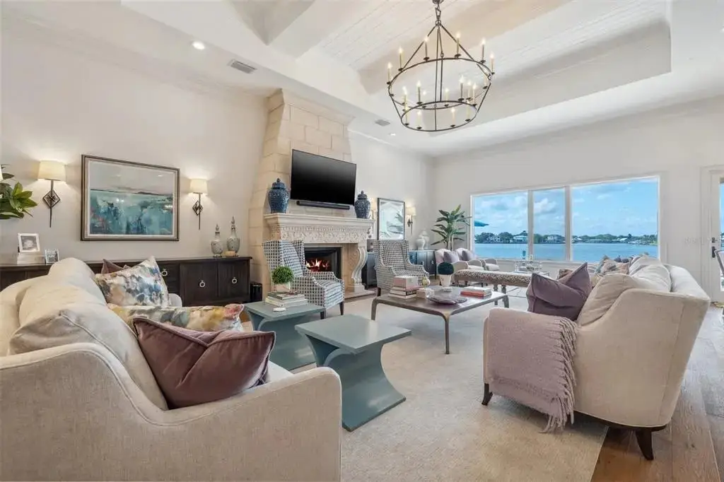 Experience coastal elegance and luxury living at its finest at 301 Bayview Drive NE, nestled on the shores of Smacks Bayou in the exclusive Snell Isle neighborhood of St. Petersburg. Elevation is 9.8 and sustained NO WATER INTRUSION in recent storms. Built by Andrew Vecchio in 2015, this exceptional waterfront residence offers superior craftsmanship, timeless finishes, and a flexible floor plan designed for modern Florida living. Enjoy sweeping water views the moment you step inside. Soaring 10–12 ft ceilings throughout the home create an airy, open atmosphere, enhanced by gorgeous engineered hardwood flooring, custom designer lighting, and upscale finishes. The main living space is anchored by a stunning gas fireplace and filled with natural light from oversized windows and glass doors. The chef’s kitchen is a showstopper—featuring top-of-the-line Thermador appliances, a gas cooktop, pot filler, wine refrigerator, pantry, stone countertops, and an oversized island with bar seating—perfect for gathering and entertaining. Enjoy your private waterfront oasis with a heated saltwater pool, spa, covered lanai, outdoor kitchen, and private dock. Whether you're hosting sunset dinners or launching paddleboards from your backyard, this home was built for the Florida lifestyle. The private primary suite is a serene retreat offering panoramic water views, dual walk-in closets, and a spa-inspired en suite bath with dual vanities, a freestanding Jacuzzi soaking tub, and a glass-enclosed walk-in shower. Each guest bedroom includes its own en suite bath, providing comfort and privacy for family and guests. A unique highlight of this home is the separate casita/in-law suite—attached yet completely private with its own entrance, walk-in closet, and full bath. It’s ideal for multi-generational living, a dedicated home office, home gym, or studio. Additional features include a spacious laundry room, 3-car garage with high ceilings for extra storage or lift installation, and a circular brick driveway that enhances curb appeal. Located minutes from vibrant downtown St. Pete, yet tucked away in a peaceful enclave, 301 Bayview Drive offers the best of both worlds—quiet luxury living with world-class dining, culture, and shopping just moments away.