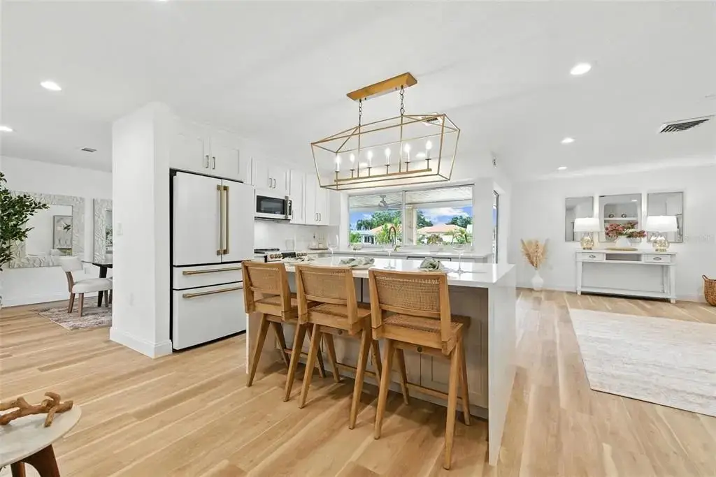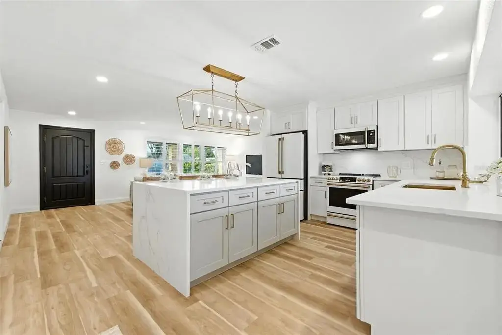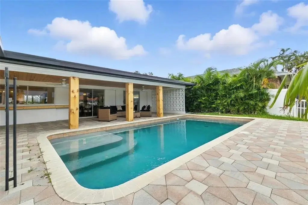 Magnificent Move-In Ready Four-Bedroom Waterfront Pool Home. This is one of those rare, needle-in-a-haystack homes that checks every box on a buyer’s wish list. From the ground up, every detail—inside and out—has been meticulously reimagined to cater to even the most discerning homeowner. From the moment you step inside, you'll be captivated by the stunning modern retreat that unfolds before you. Breathtaking water views greet you from nearly every room, while brand-new flooring flows seamlessly throughout, enhancing the home's elevated custom feel. What truly sets this property apart is its exceptional canal positioning. Unlike typical waterfront homes that face another backyard, this residence boasts unobstructed long-range views straight down the canal—delivering privacy, serenity, and the ultimate visual appeal. The open-concept living space remains beautifully intact, free from awkward patio conversions, step-downs, or unsightly ceiling beams. It’s a clean, cohesive design that maintains both form and function. Enjoy worry-free living with an array of high-end updates: a brand-new elevated HVAC system (2025), new water heater (2025), upgraded electrical, ample storage, and a fully redesigned kitchen and bathrooms. No expense was spared in transforming this rare four-bedroom, two-bath home into a modern showpiece. Set on an oversized lot, the property accommodates up to eight vehicles between the expansive driveway and garage. With no low bridge restrictions, enjoy direct Gulf and Bay large boat access from your own backyard with a private dock and 9,000 lb boat lift—perfect for boating, fishing, island hopping, or relaxing at nearby sandbars. The jaw-dropping chef’s kitchen is a dream, featuring custom cabinetry, designer lighting, brand-new Café appliances, quartz countertops with sleek hidden wireless chargers and dramatic waterfall edges. The luxurious primary suite feels like a five-star resort. Indulge in a spacious walk-in closet, a custom vanity with backlit mirror, elegant tile flooring, striking fluted tile walls with dual shower heads— all carefully curated to blend comfort with sophisticated design. Step through any of the four rear-facing sliders to your beautifully updated deck, ideal for entertaining or unwinding as you watch dolphins and manatees play in the water. The remodeled pool area is equally impressive, featuring new pavers, professional landscaping, upgraded lighting, and a tongue-and-groove ceiling—setting the scene for unforgettable evening swims or relaxed outdoor gatherings. Even the garage floor was thoughtfully upgraded with a sleek epoxy finish—no detail has been overlooked. Located in the warm and welcoming community of Ponderosa Shores—once hailed as "St. Pete’s Hidden Gem"—you’ll be just minutes from the vibrant energy of Downtown St. Petersburg. Cruise this golf-cart-friendly neighborhood, join the festive Shore Acres Holiday Parade, or enjoy a scenic bike ride along the Northeast Trail to Historic Vinoy Park and Downtown. With its unbeatable location, top-to-bottom updates, and luxurious waterfront lifestyle, this move-in ready masterpiece is a rare find. Don’t wait—schedule your private showing today and experience the pinnacle of Florida waterfront living.