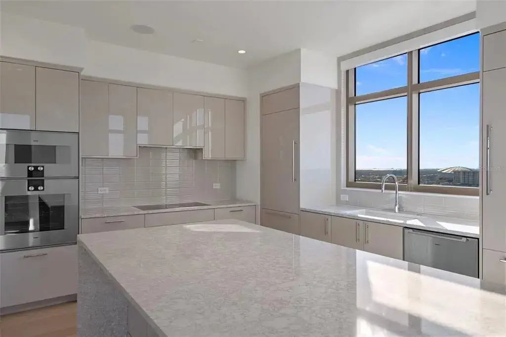 One or more photo(s) has been virtually staged. Now complete and move-in ready, this full floor home at The Nolen St. Pete offers an exceptional blend of luxury, privacy, and design within a 23-story boutique tower of only 31 residences. The elevator opens directly into a spacious foyer with a storage closet and double-door entry revealing breathtaking views of Old Northeast, Tampa Bay, and the Vinoy Basin. The chef’s kitchen is equipped with Gaggenau appliances, an induction cooktop, double ovens with convection microwave, a Blanco sink, two refrigerators, two freezers with ice makers, a large wine fridge, and an expansive waterfall island with quartz countertops and abundant pantry space. The open living area flows seamlessly to a 38-foot terrace that spans from the living room as well as a second terrace on the south side spanning the primary suite, showcasing sunrise and sunset views. The primary suite offers a spa-inspired bath with a soaking tub, walk-in shower with rain head and bench, dual vanities with LED illuminated mirrors, a makeup station, and an expansive walk-in closet. Both guest bedrooms feature en-suite baths, one guest room featuring terrace access. Additional highlights include a bonus study, powder bath, large laundry room with extra cabinetry, and generous storage throughout. Enjoy resort-style amenities including a saltwater pool and spa, fitness center, club lounge, fire pit area, outdoor grill space, and concierge service. The residence includes a private two-car garage within the parking structure and climate-controlled storage unit with its own mini-split AC. This is your opportunity to own a brand-new, never-lived-in residence at one of downtown St Pete's best locations. The Nolen is a thoughtfully designed, NGBS-certified green building, offering an elevated, maintenance-free lifestyle just steps from Beach Drive, waterfront parks, marinas, and downtown’s best dining and shopping. A new award-winning coffee shop is now open on the ground level — making it easier than ever to enjoy your morning routine or unwind just an elevator ride away. At The Nolen, downtown is downstairs — with the city’s finest restaurants, culture, fitness studios, and entertainment all within walking distance. The Nolen #2001 perfectly blends modern elegance, thoughtful design, and the timeless charm of St. Petersburg’s waterfront lifestyle. Come and view it today!