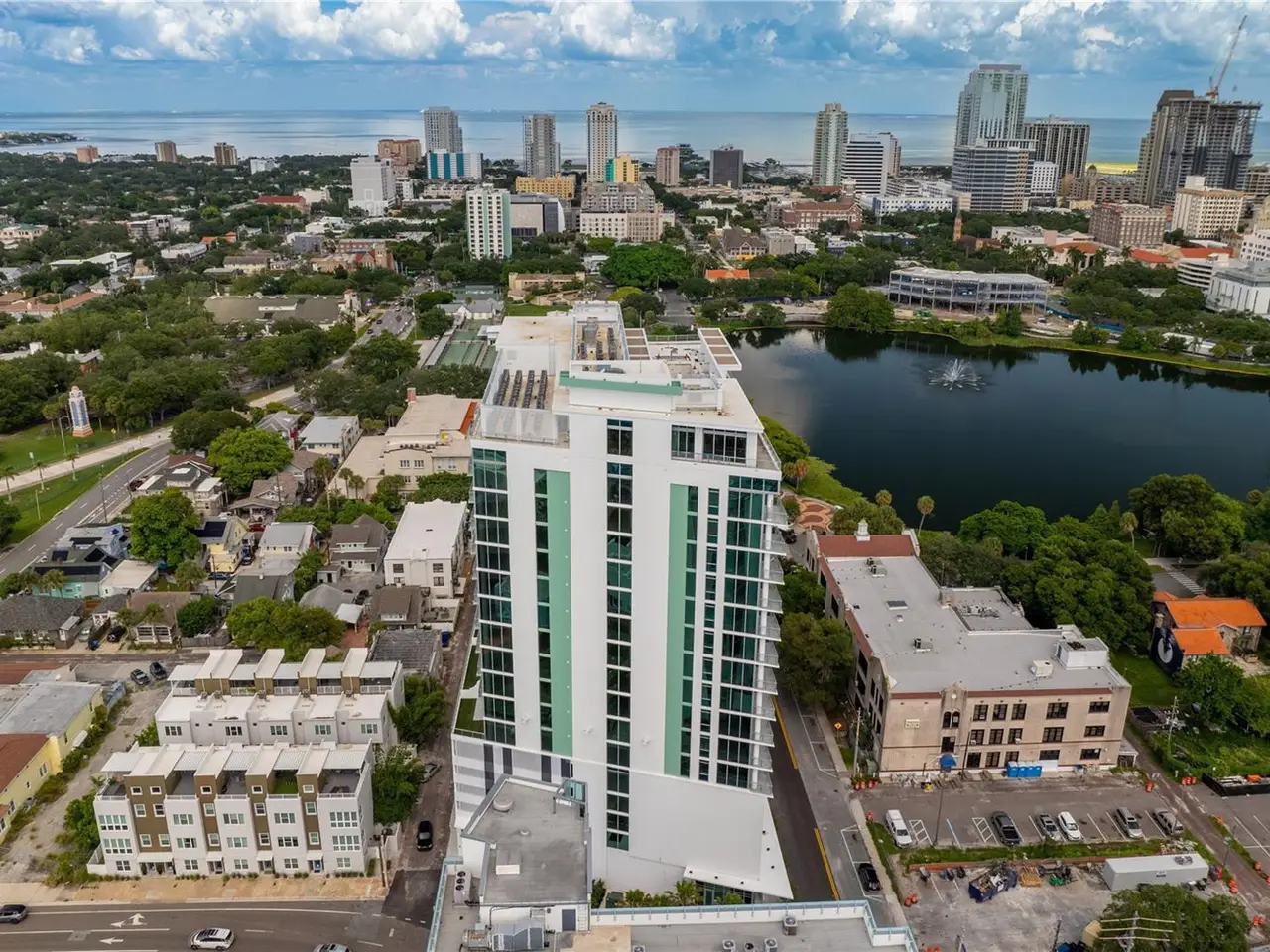 One or more photo(s) has been virtually staged. Discover your next extraordinary chapter at REFLECTION St. Pete. Be the first to embrace the pinnacle of urban luxury living in this exclusive offering with unparalleled views from its prime 12th-floor vantage point. Gaze eastward over Mirror Lake, where the St. Petersburg skyline meets the shimmering waters of Tampa Bay. Spanning over 1700 square feet, the Jade floor plan epitomizes sophistication with its spacious split layout. Entertain effortlessly in the expansive great room, adorned with floor-to-ceiling windows and sliding glass doors that invite the stunning vistas into every corner. Step out onto the expansive glass balconies to savor panoramic views that stretch across the vibrant heart of St. Petersburg. Indulge in a culinary journey with gourmet stainless steel appliances and sleek quartz countertops. Luxuriate in the elegance of porcelain flooring throughout the main living areas, while the European-inspired wet room bathrooms feature upgraded fixtures and refined finishes. Retreat to the master bedroom with its own terrace access, perfectly complementing the residence's elevated lifestyle. Residents of REFLECTION enjoy exclusive access to a 12,000 square foot rooftop oasis, featuring an air-conditioned fitness center and social club, a serene tropical pool and spa terrace, and an outdoor kitchen and wet bar. Each amenity is designed to offer both relaxation and inspiration, framed by sweeping views of Mirror Lake, Downtown St. Petersburg, and Tampa Bay. Ideally situated at the intersection of Downtown St. Petersburg, the Edge District, and the Warehouse Art District, REFLECTION embodies the essence of urban vitality and cultural richness. Here, every detail is meticulously crafted to enhance your lifestyle, ensuring both comfort and convenience. Your safety is paramount at REFLECTION, with state-of-the-art electronic air filtration systems, MERV13 filters, and touchless amenities throughout the building. Experience a new standard of luxury living, where every aspect is designed to elevate your experience and exceed your expectations. Renter's insurance required by landlord.