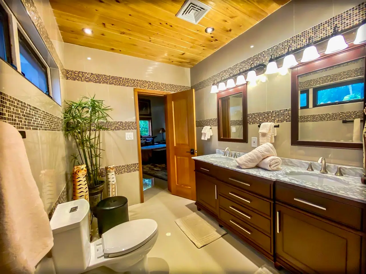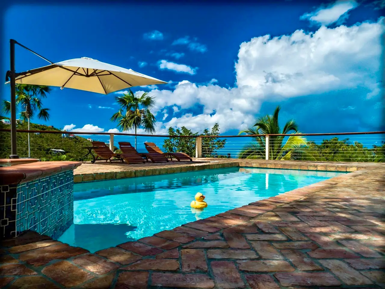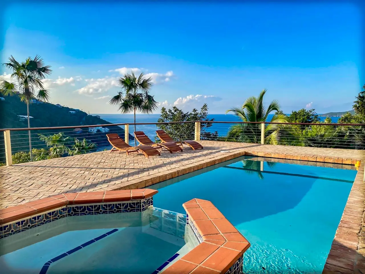 Exquisitely remodeled 5-bedroom, 6-bath villa with no detail overlooked. Enjoy sweeping views of St. Thomas' North Shore, Hans Lollik, and the surrounding Caribbean waters. Ideally located mid-island in the gated Mahogany Run community with 24-hour security, and just minutes from world-renowned Magens Bay. Tastefully furnished indoors and out, the villa offers air conditioning throughout--including all bedrooms, living spaces, and a media room. Relax by the pool, lounge on two spacious balconies, or soak up the sun in complete comfort--your elegant island retreat awaits.