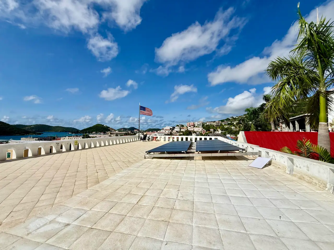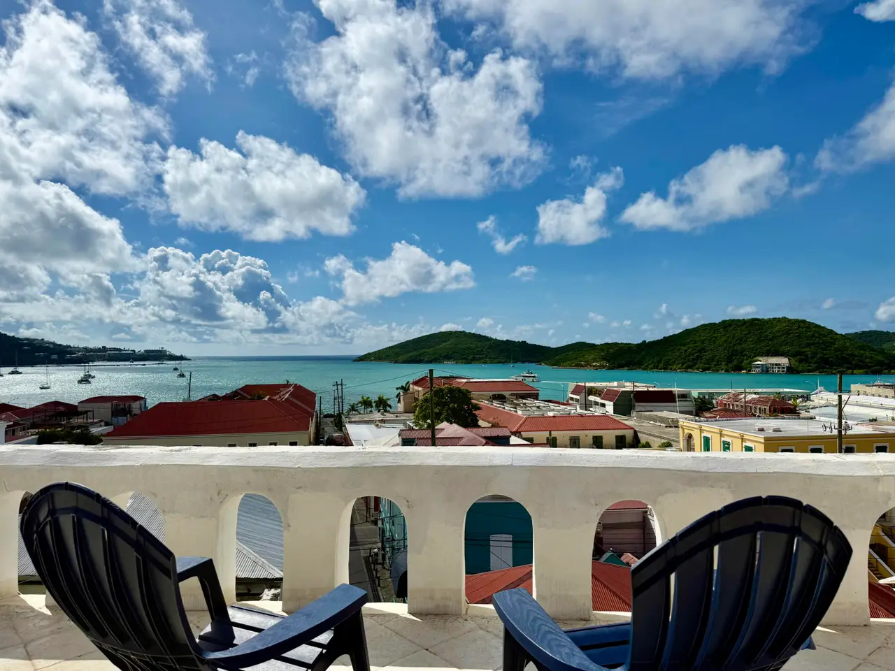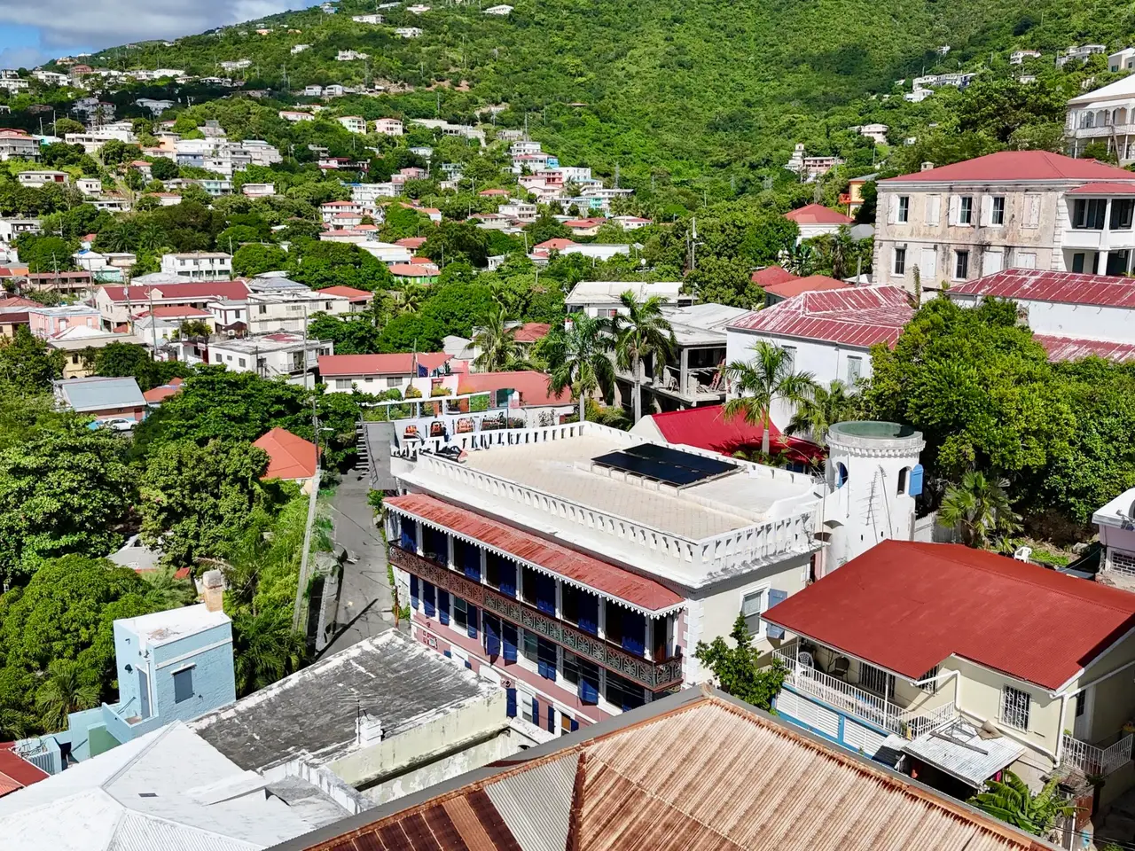 Experience a rare opportunity to own a distinguished piece of Virgin Islands heritage. Originally built in the 1700s, with a recorded deed dating to 1804, this architectural masterpiece seamlessly blends historic grandeur with modern sophistication. Soaring vaulted ceilings, graceful archways, mahogany floors, and intricate ironwork evoke timeless elegance, while solar power, air conditioning, and Starlink internet ensure contemporary comfort. Main residence features three bedrooms, two baths, an entertainment lounge, and a private rooftop terrace. Four beautifully appointed rental suites offer income potential. Perfectly situated in Charlotte Amalie near fine dining, boutiques, and ferries, this storied estate once owned by notable figures--embodies the enduring legacy of island luxury.