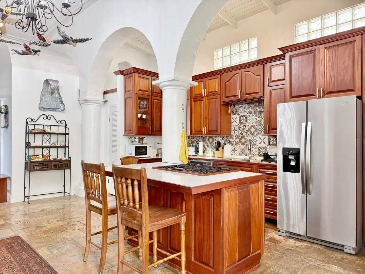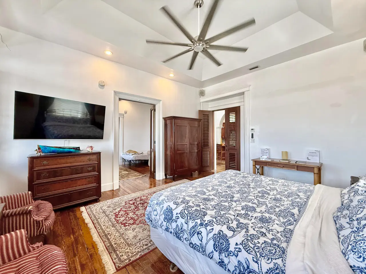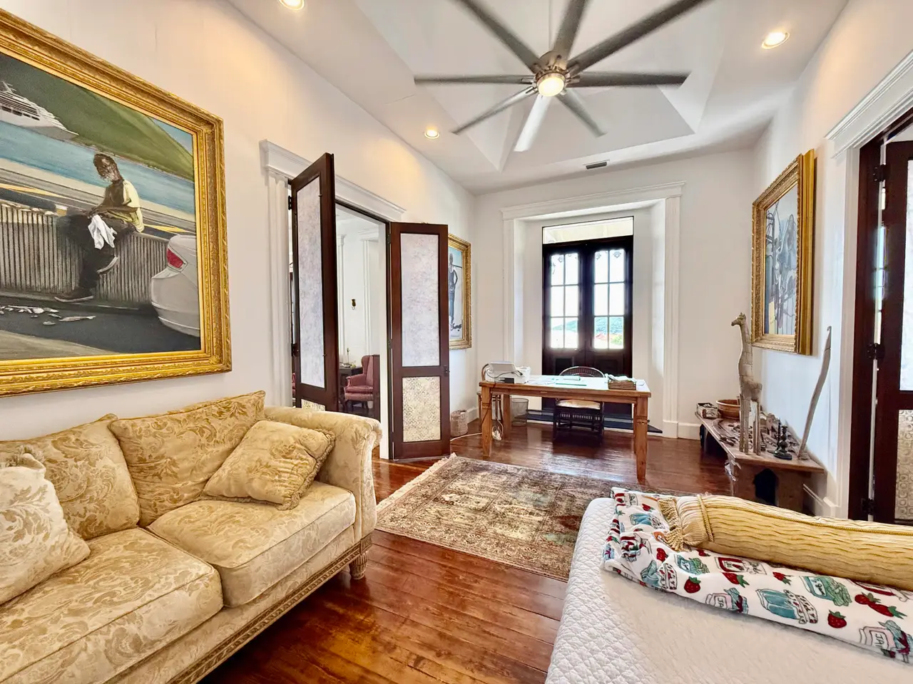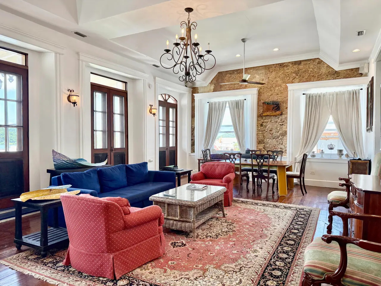 Experience a rare opportunity to own a distinguished piece of Virgin Islands heritage. Originally built in the 1700s, with a recorded deed dating to 1804, this architectural masterpiece seamlessly blends historic grandeur with modern sophistication. Soaring vaulted ceilings, graceful archways, mahogany floors, and intricate ironwork evoke timeless elegance, while solar power, air conditioning, and Starlink internet ensure contemporary comfort. Main residence features three bedrooms, two baths, an entertainment lounge, and a private rooftop terrace. Four beautifully appointed rental suites offer income potential. Perfectly situated in Charlotte Amalie near fine dining, boutiques, and ferries, this storied estate once owned by notable figures--embodies the enduring legacy of island luxury.