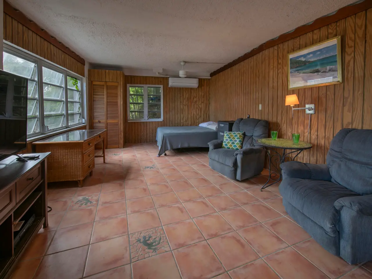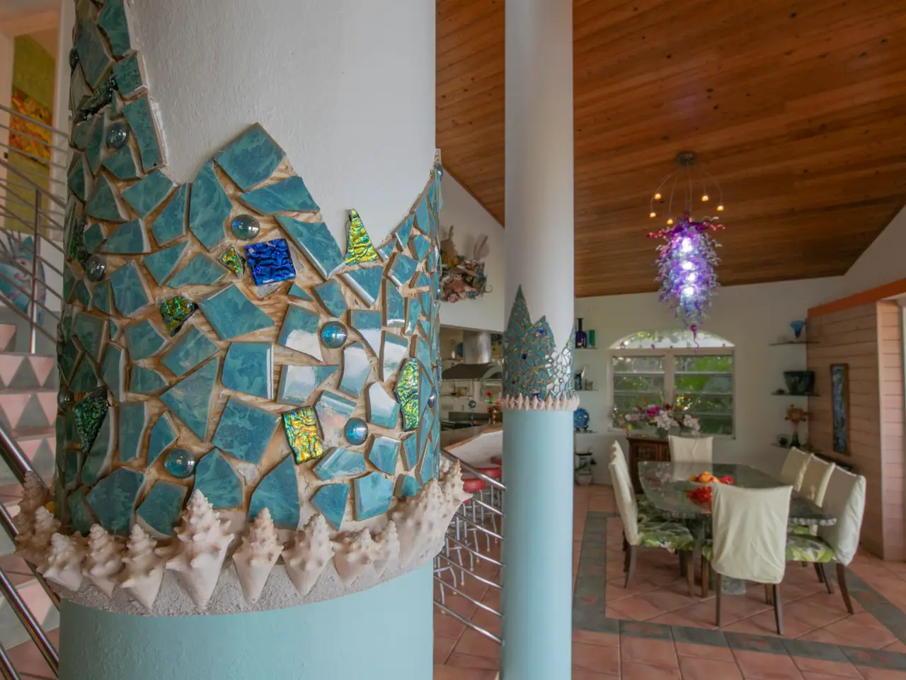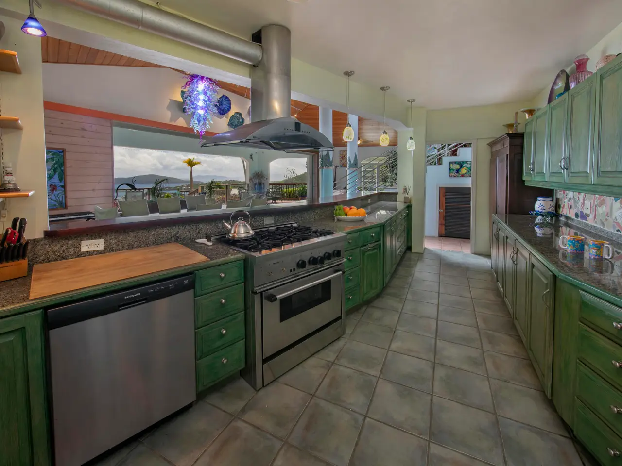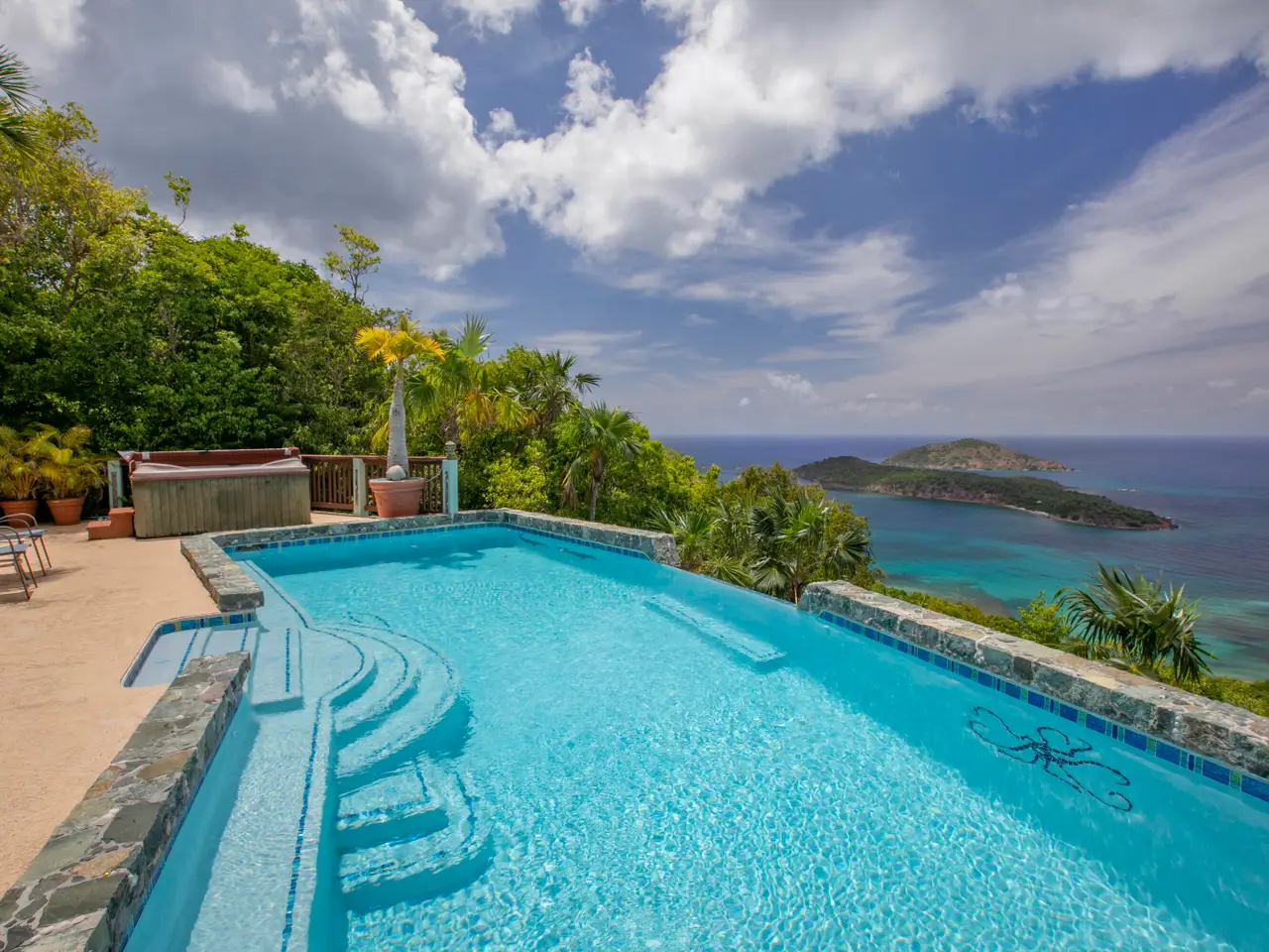 Villa Amour is a successful vacation rental that is also ready to be a home with an apartment. The expansive view overlooks Neltjeberg Beach all the way to the BVI. The property has a lush, remote feel while still being 5 minutes from a grocery store. The main house has 4 bedrooms with their own AC units and bathrooms, and an additional half bath on the main floor. The spacious living room has pocket doors that allow a seamless flow to the back porch, pool and hot tub. The apartment is a spacious studio with AC and a separate entrance. This concrete home is also equipped with a 25kW diesel generator w/300 gallon tank, and 45 solar panels with 9.2kW capacity. The sale includes adjoining lot 16-Rem Estate Neltjeberg.