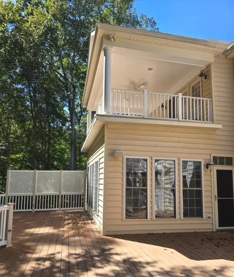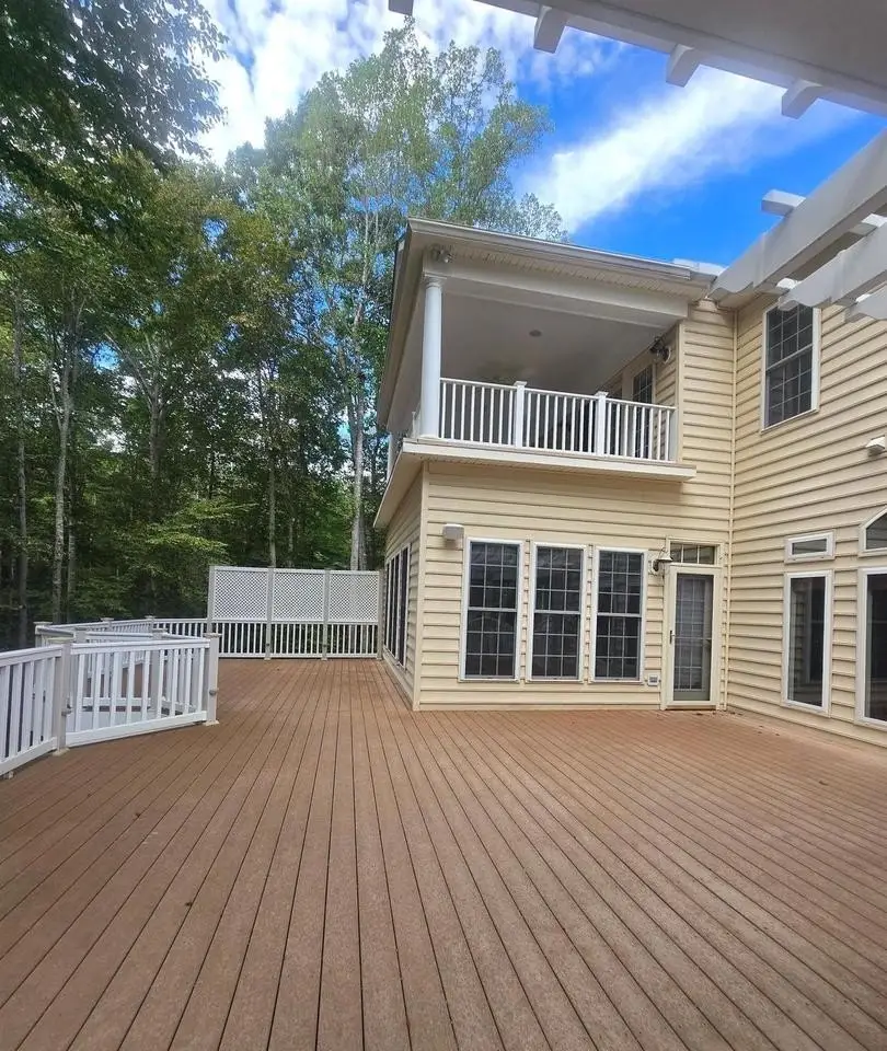 Nestled within the serene enclave of Smith Lake Estates, this exquisite Colonial-style residence offers a harmonious blend of luxury and comfort. This meticulously maintained home boasts a brick front facade with three car side load garage. Step inside to discover rich hardwood floors with accent crown and chair rail moldings. Just off of the foyer is a large office with white built-in bookcases with cabinets. The heart of the home features a spacious family room with a stone gas fireplace that flows effortlessly into the gourmet kitchen, complete with granite countertops, a crescent island with cooktop as well as pantry. The kitchen is designed for both culinary enthusiasts and casual gatherings, with a breakfast area or sunroom that invites leisurely mornings with backyard views. There is easy access to the large lighted composite made deck just off of the sunroom. Retreat to the luxurious owners suite, where you will discover two walk-in closets and the en-suite bathroom features a soaking tub and a large walk-in shower, also offering two seperate sink vanity areas. Enjoy the bedroom fireplace on cool nights and on warm nights enjoy the covered porch which you have access just off the bedroom. You will find 3 more bedrooms which two of them share a bathroom. Thoughtful details such as the whole house wired sound system with intercom adds a modern tone. This home also has a whole house Generac house generator (24 KW) uses propane and operates automatically when needed. On the lower level enjoy movies in a media room, equipment conveys and is located next to the billiards room. Enjoy the bar area and another fireplace for those gatherings. Equally impressive, set on a sprawling 3.7-acre wooded lot that offers privacy and tranquility with no HOA also this home has city water and sewer not well and septic. In addition this home is convenient to I-95, shopping and restaurants. Enjoy the hot tub, which has been winterized, and is tucked under the deck and sits on the stamped concrete patio. The meticulously landscaped grounds are equipped with a lawn sprinkler system and a charming shed just off of the driveway. See for yourself the perfect blend of luxury, comfort, and functionality in a setting that feels like a retreat.