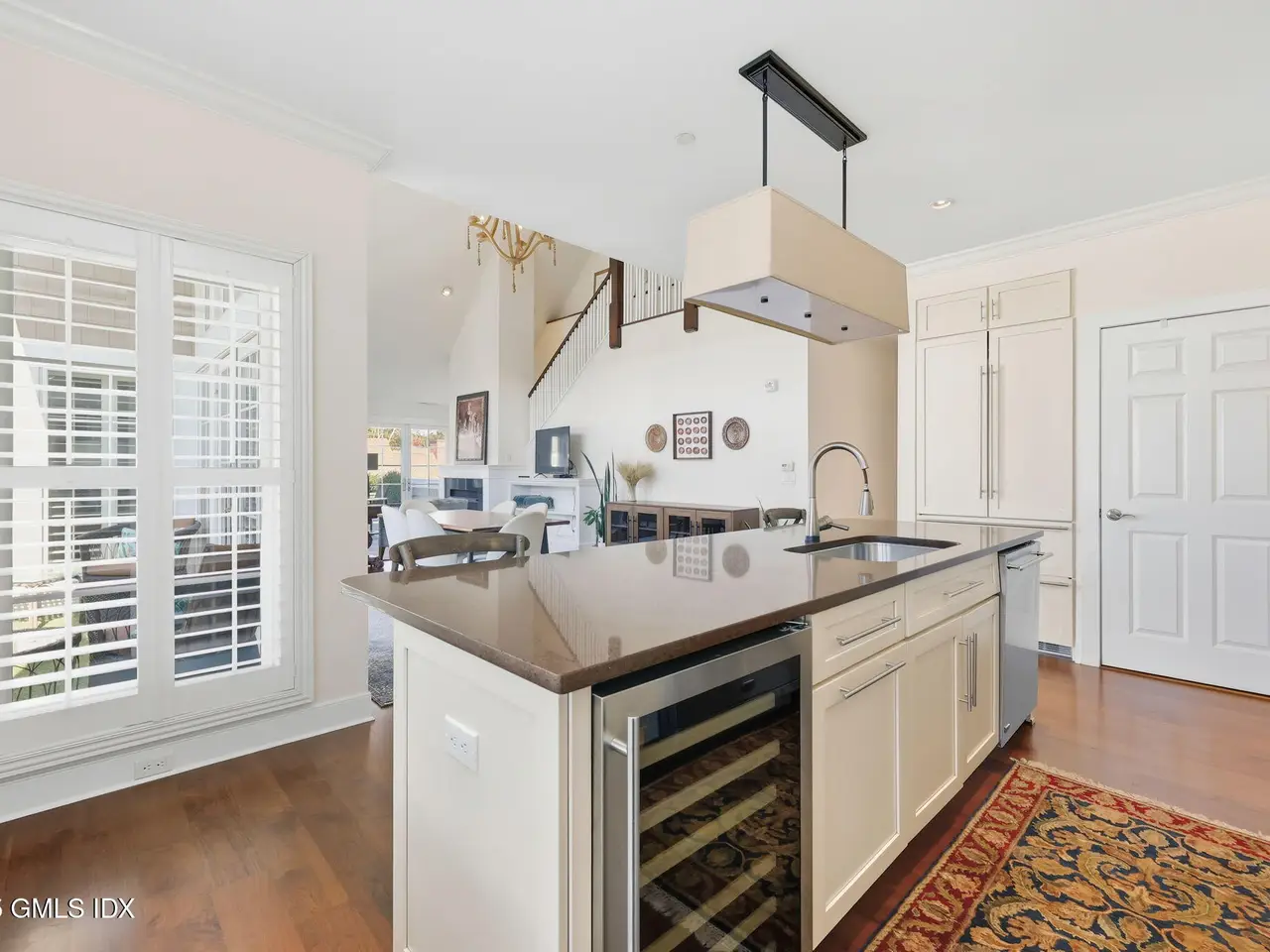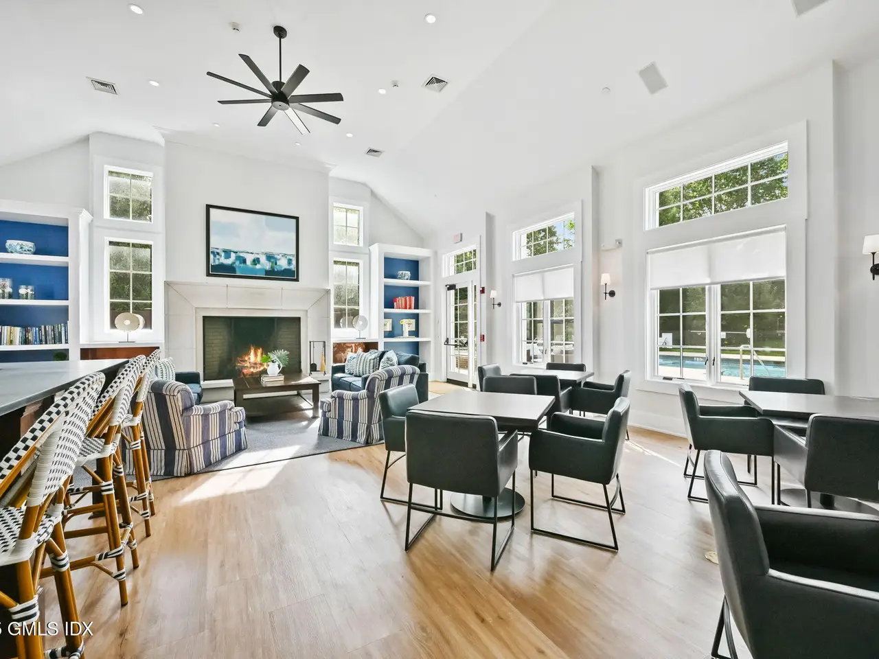 Penthouse duplex with dual private terraces offers a rare opportunity at the exclusive gated Palmer Hill Community on the Greenwich/Stamford border. This 2,077 sqft residence features soaring ceilings, floor-to-ceiling windows, and abundant natural light throughout. The home includes two primary suites and two and a half bathrooms; all finished with custom details. A gracious formal foyer leads to the open living and dining area with a fireplace and French doors to both terraces with a fountain, creating perfect indoor-outdoor living. The gourmet kitchen includes a generous eat-at island, six-burner stove, Liebherr refrigerator with two-drawer freezer, wine refrigerator, sink disposal, walk-in pantry with shelving, and full-size washer and dryer. The first-floor primary suite features detailed ceiling moldings, a custom walk-in closet, and a luxurious bath with steam shower, dual vanity, designer fixtures, and cabinetry. The second primary suite offers a custom walk-in closet, marble bathroom with dual vanity, and marble shower and flooring. A second-floor bonus room provides a flexible space ideal for a home office or lounge. Two indoor garage spaces and a private storage unit complete this exceptional home. Life feels like your on a vacation at Palmer Hill with a newly renovated clubhouse, fitness center, yoga room, business center, outdoor pool, hot tub, and fire pit. Quiet lanes invite leisurely walks and time with your dog. Enjoy easy access to I-95, Metro-North, Downtown Old Greenwich, Stamford, and Greenwich. Welcome to the easy life.