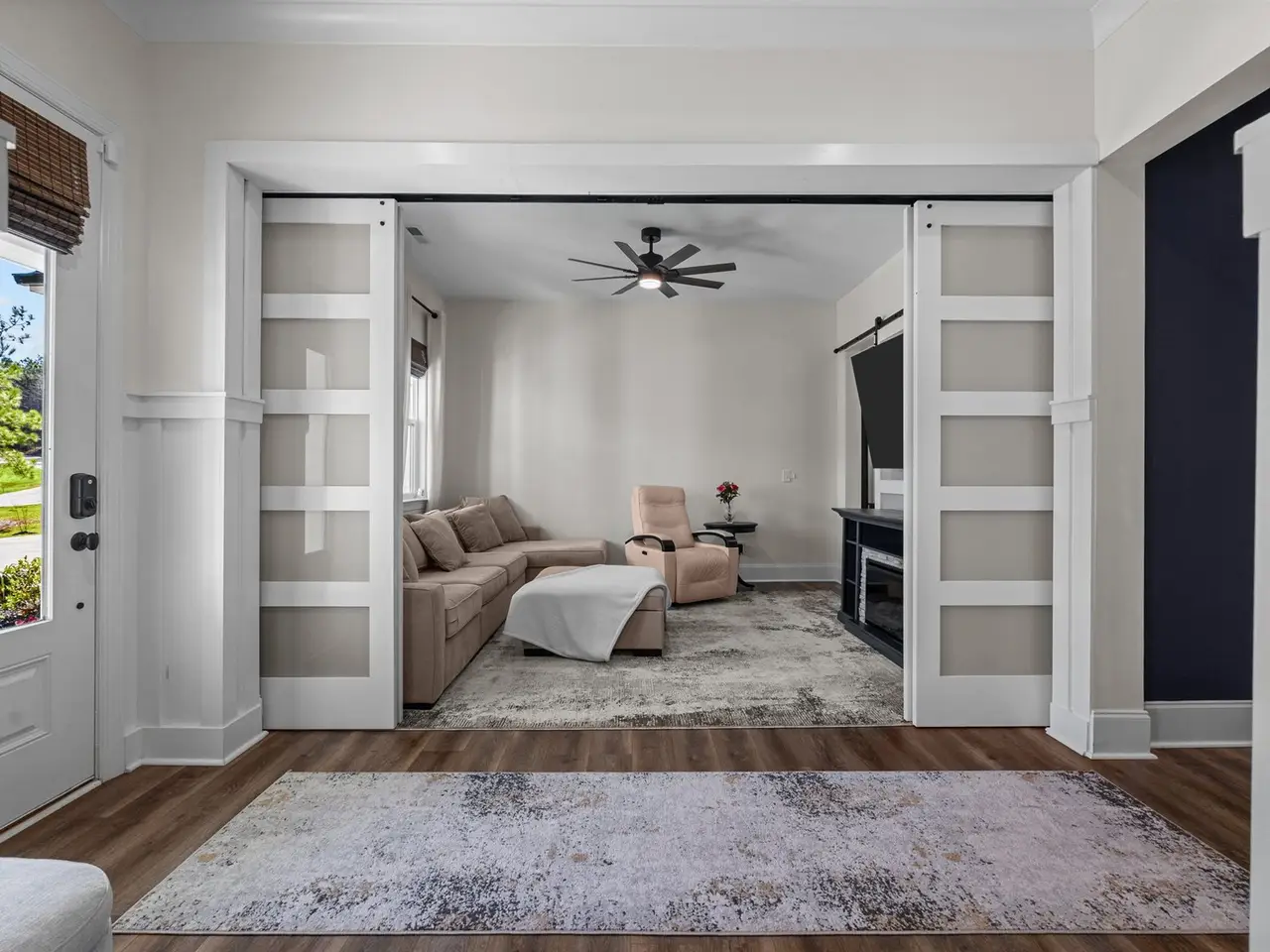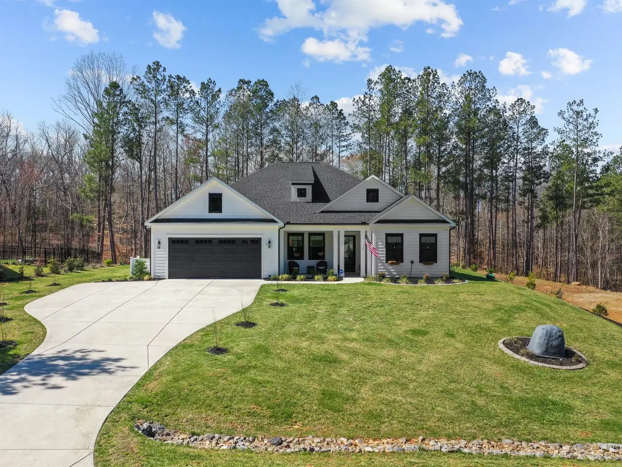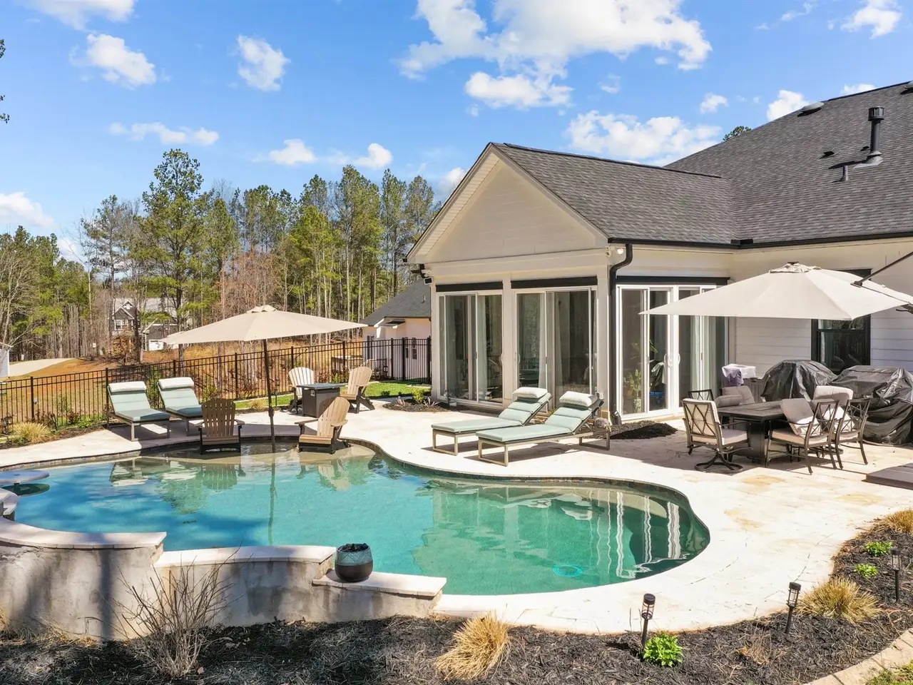 Indulge in the finest luxury living with this exceptional ranch home built in 2022 on over an acre, blending elegance, comfort, and modern convenience. The stunning primary suite offers a private retreat with a soaker tub and massive tile shower & large closet. With a flex room and a bonus room currently used as a 3rd guest bedroom, it offers versatile space for your family or guests. A bright all-season sunroom invites year-round enjoyment, with sliding doors throughout that lead you to a travertine deck and saltwater pool with a cascading waterfall, all surrounded by lush, manicured landscaping. The gourmet kitchen boasts a large quartz island and leathered granite countertops, custom built-ins, and a wine fridge, perfect for entertaining. Thoughtful upgrades include a whole-house 24kW generator, custom window treatments, an extended third-car driveway, and a security system with cameras. A truly sophisticated sanctuary, this home defines the lifestyle you're looking for.