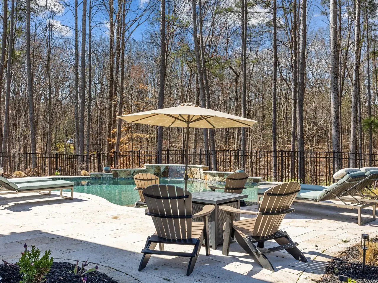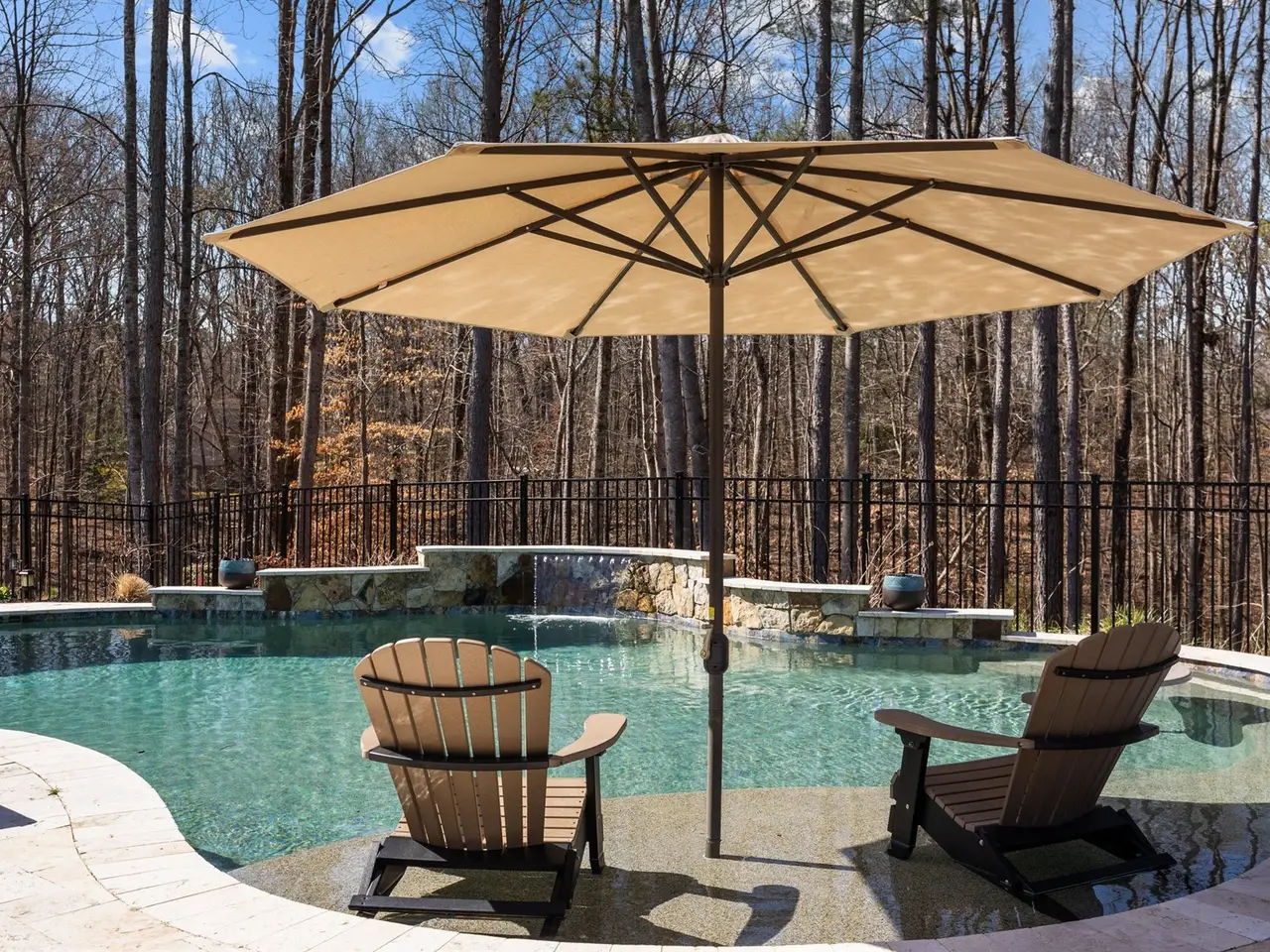 Saltwater pool with cascading waterfall