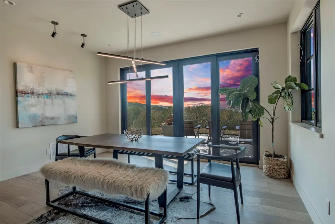 Mountain-modern luxury meets Yampa Valley beauty at 45233 Four Seasons Way. Completed in 2020, this exceptional residence rests on nearly 36 acres in the coveted Giant Sky Ranch community, where sweeping views of the Flat Tops Wilderness and breathtaking sunsets over Sleeping Giant set the stage for everyday living. Spanning 3,550 sq. ft., the home offers 4 bedrooms, 3.5 bathrooms, and a spacious 3-car garage—blending refined design with mountain functionality. The open-concept main level is perfect for entertaining, featuring a light-filled great room with a cozy fireplace and seamless access to two stamped-concrete patios. The gourmet kitchen is a chef’s dream, boasting Thermador appliances, sleek European-style cabinetry, and bold designer tile accents. The main-level primary suite creates a private sanctuary with a spa-inspired bath, walk-in closet, and direct patio access—all designed for single-level living. A floating staircase leads upstairs to three additional bedrooms, including a private guest suite and a versatile room pre-wired for use as an entertainment or media retreat. As part of Giant Sky Ranch, residents enjoy more than 420 acres of shared open space with trails, ponds, and gathering areas that invite year-round adventure. Whether hiking, biking, paddle boarding, or simply soaking in the tranquility of this private, gated community, outdoor recreation is always at your doorstep. And with downtown Steamboat Springs just 8 miles away, convenience pairs effortlessly with seclusion. With unmatched privacy, panoramic views, and direct access to Colorado’s most inspiring landscapes, this Four Seasons property delivers the ultimate balance of modern comfort and natural beauty.