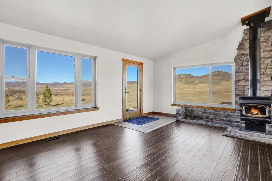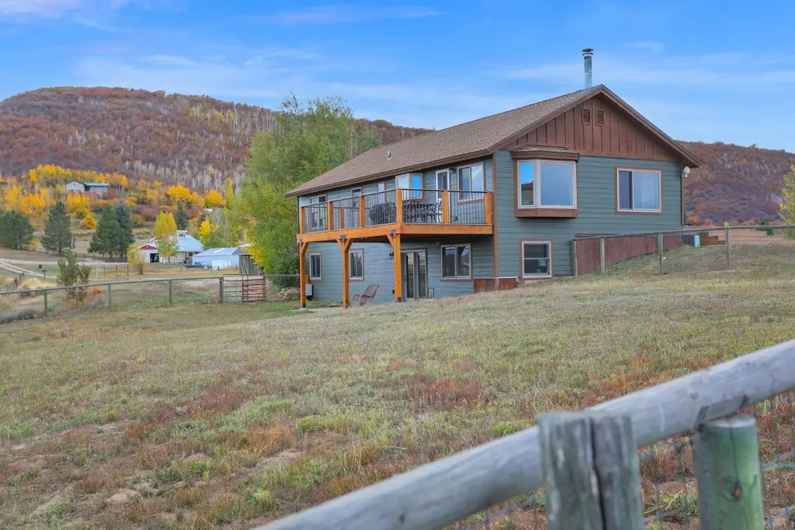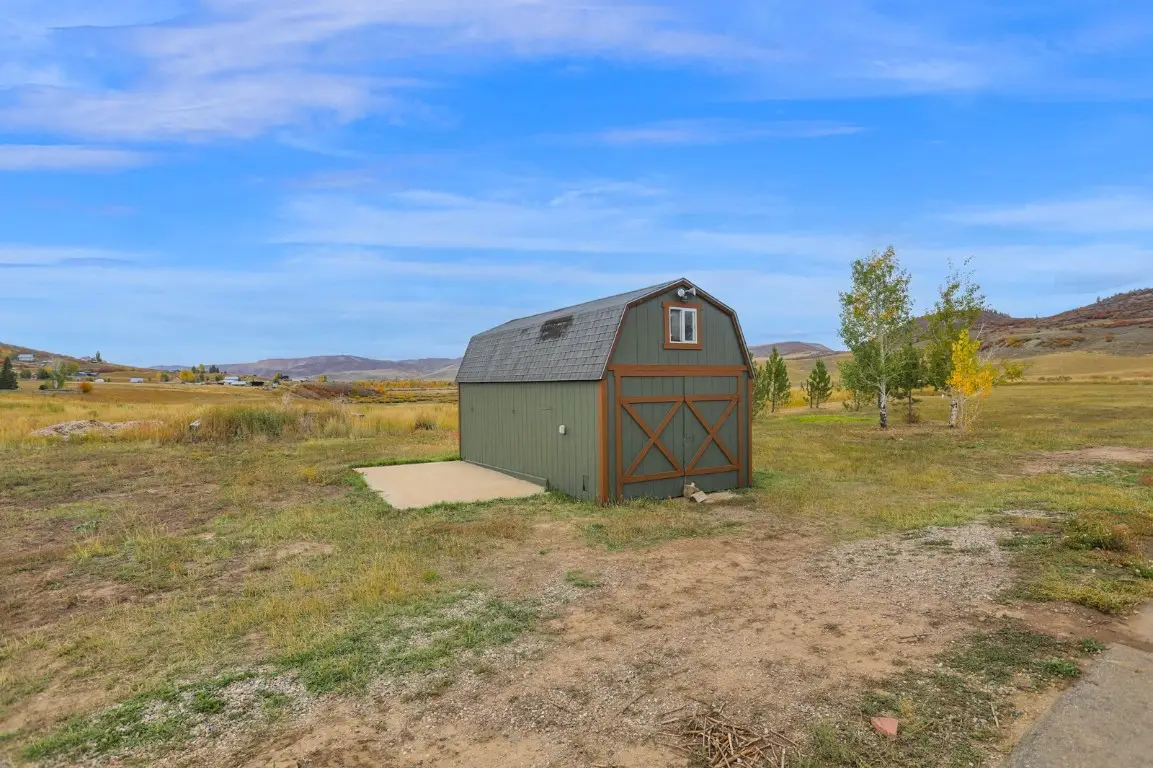 Idyllic country living, just a 15 minute drive to downtown Steamboat Springs. This 5-Bedroom/3-Bath home is situated on one of the very best lots (9.47 acres) in the Saddle Mountain Ranch neighborhood, enjoying incredible panoramic views overlooking Trout Creek and the 8,000 acre Saddleback Ranch. The main level features an open floorplan with hardwood floors and wood-burning stove in the Kitchen/Dining/Living areas enjoying the views and walking out to large decks on both the east and west sides of the home. A Primary Bedroom suite, 2nd bedroom and Den/Office complete the upper level. The walk-out lower level features 3 additional Bedrooms, full Bath, Laundry, and a large 2nd Living Area, walking out to a shaded patio. All bathrooms have been updated and all new paint on the exterior and interior of the home. A 1,500 sq. ft. garage/barn/shop provides considerable extra storage space and utility, as do the two detached storage sheds. The majority of the property offers a very level site with perimeter fencing, a 6+ acre hay pasture, "sportcourt" for basketball and pickleball, firepit, and fenced dog run adjacent to the home. Certainly suitable for livestock and plenty of level space for additional storage or ag buildings. This property sits well off the road, at the end of a shared drive. Private and peaceful in a truly spectacular setting.