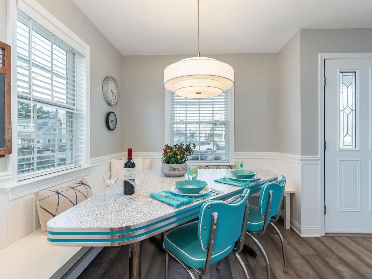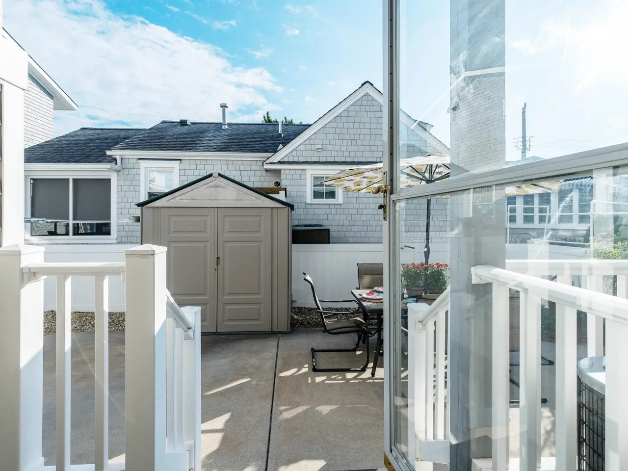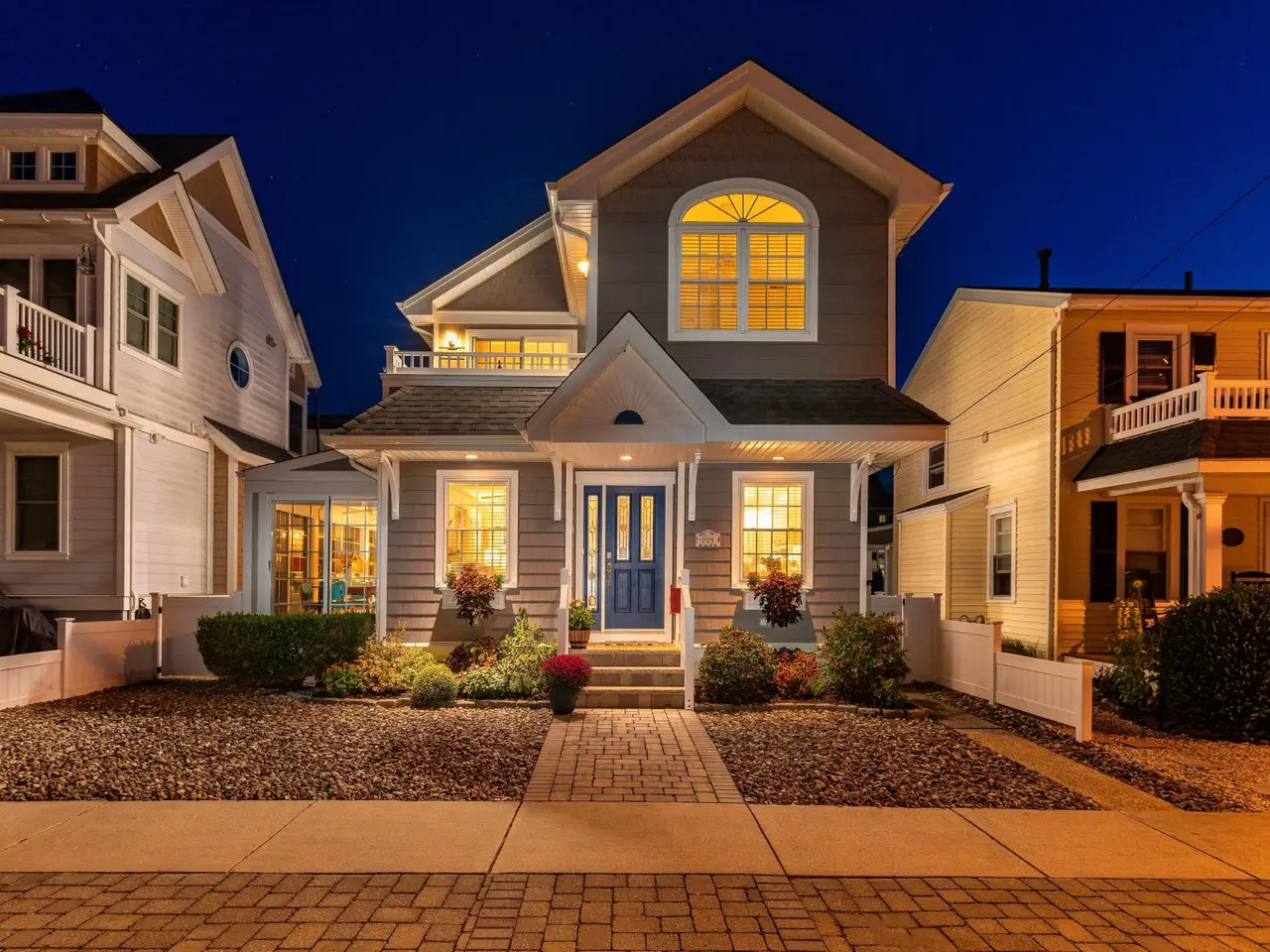 Discover this move-in-ready single-family home in the highly desirable South End of Stone Harbor. Built in 2002 and designed for easy first-floor living, this property on wide 110th street offers comfort, safety, and accessibility for every stage of life. The first floor features a spacious custom kitchen updated by Ocean Interiors in 2023 with white cabinetry, Cambria quartz countertops, generous storage, and perfectly hidden washer/dryer. Gourmet appliances, including a wine cooler, make it ideal for a cook's lifestyle, and the custom dining table with built-in bench seating and wainscoting maximizes space for gatherings with style. The inviting family room includes an entertainment area and opens to an expansive glass-enclosed, heated and screened porch with solar shades, two ceiling fans, and a wall-mounted TV-perfect for entertaining or cozy evenings year-round. Two slider white plantation doors were installed to separate the porch for privacy and shade as needed. Take the beautifully white wainscoted central staircase to the second level which offers three bedrooms, including a light-filled primary suite with vaulted ceiling and private full bath. Two additional bedrooms with side-by-side twin beds share a full hall bathroom, while an office alcove provides slider access to a north-facing porch shared with the primary suite. This elevated outdoor space is a private retreat where you can enjoy ocean breezes after work or before bedtime. Outside, there is a welcoming entry with a wide paver walkway, bilateral railings, The property features manicured Belgian block flower beds, a gated rear yard for privacy and safety, and a rear patio complete with outdoor shower, dining area, and a home grown vegetable garden. With two-zone heating and thoughtful architectural details, this home is both functional and charming. The location is one of the best in Stone Harbor's South End. Just steps from the bay and ocean, you'll find surfing at Nuns' Beach, swimming at the guarded 111th Street beach, and kayak access from 114th Street by the Bird Sanctuary. Chelsea Place playground, and downtown shops and dining are all nearby, making this a true South End gem. This is a rare opportunity to own a turn-key Stone Harbor home that blends easy living with coastal charm, modern updates, and an ideal location. Offered furnished with exclusions list. Note: Foundation and a few studs from one wall retained from original build in 1955.