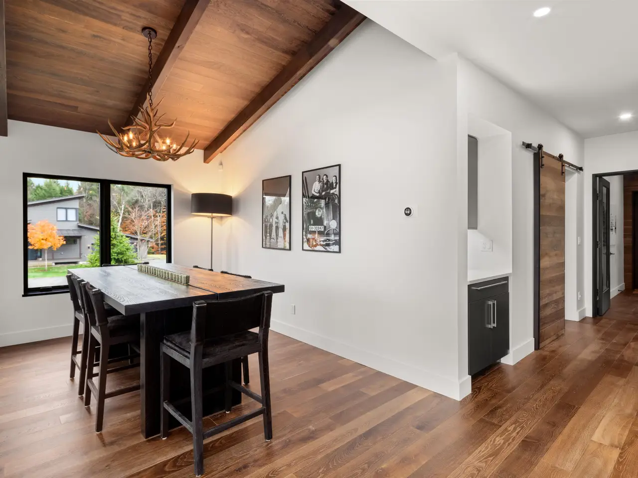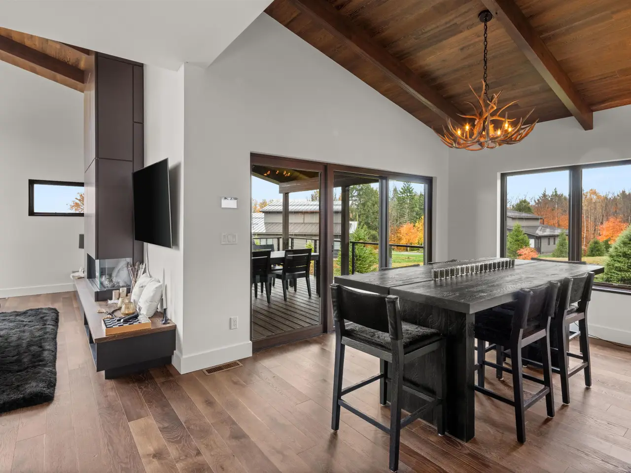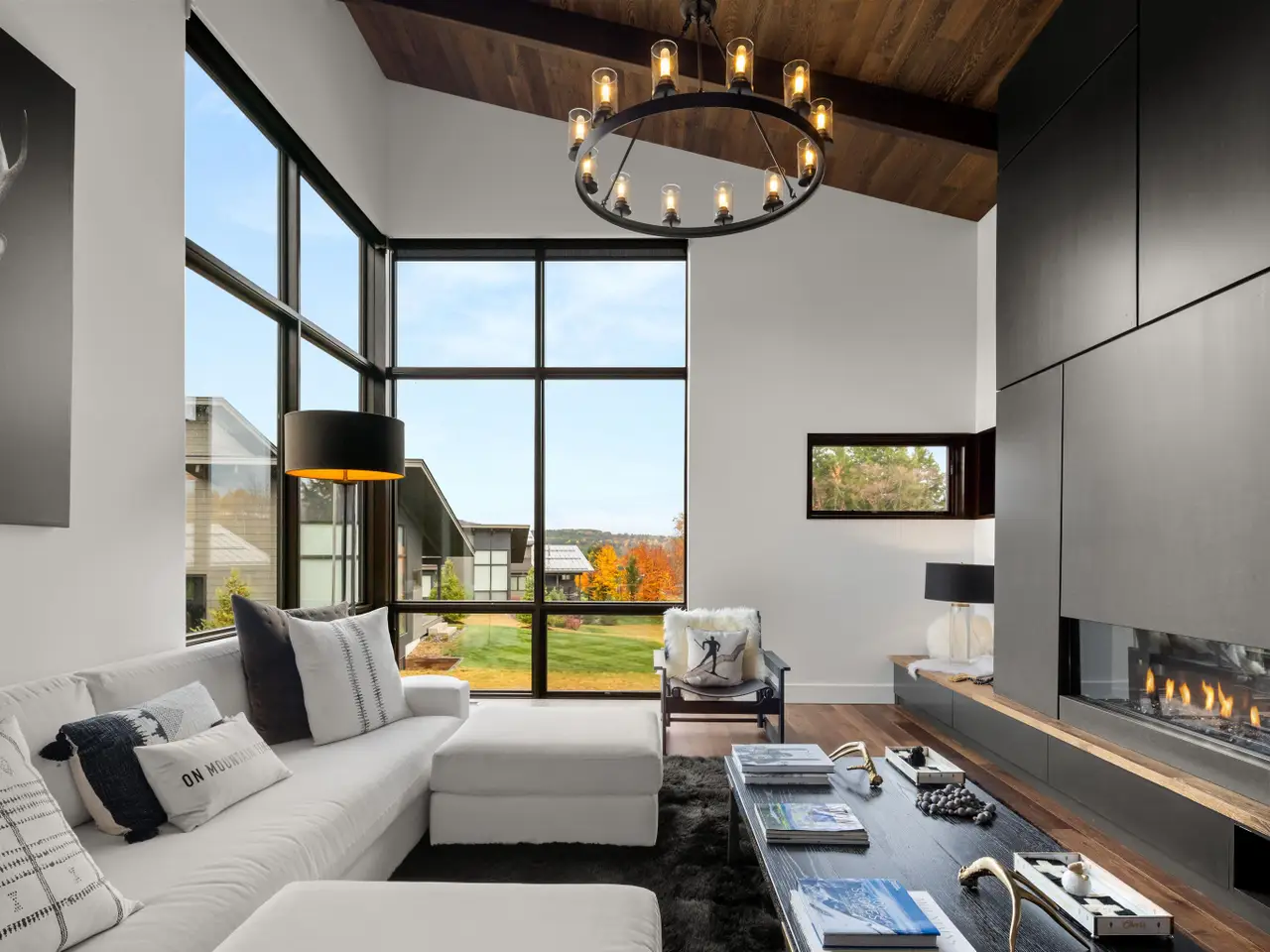 Wildewood offers a year-round residential experience immersed in nature, just minutes from Stowe Mountain Resort. The “Birches” home features four bedrooms and three floors of beautifully finished living space, including a covered porch, a spacious first-floor primary suite, and a bright walk-out level with a second bedroom suite and inviting family room. This meticulously crafted Mountain Modern residence showcases open-concept living areas with soaring ceilings, refined finishes, and a dramatic faux-steel-clad gas fireplace as a stunning centerpiece. Step outside and embrace the outdoors—enjoy the community pond for summer fishing or winter skating, or set out on the Catamount Trails for walking, snowshoeing, and cross-country skiing. Summer amenities include tennis courts, a swimming pool, and easy access to nearby hiking trails. At Wildewood, every day is an invitation to reconnect—with nature, with friends and family, and with the simple joy of Vermont living.