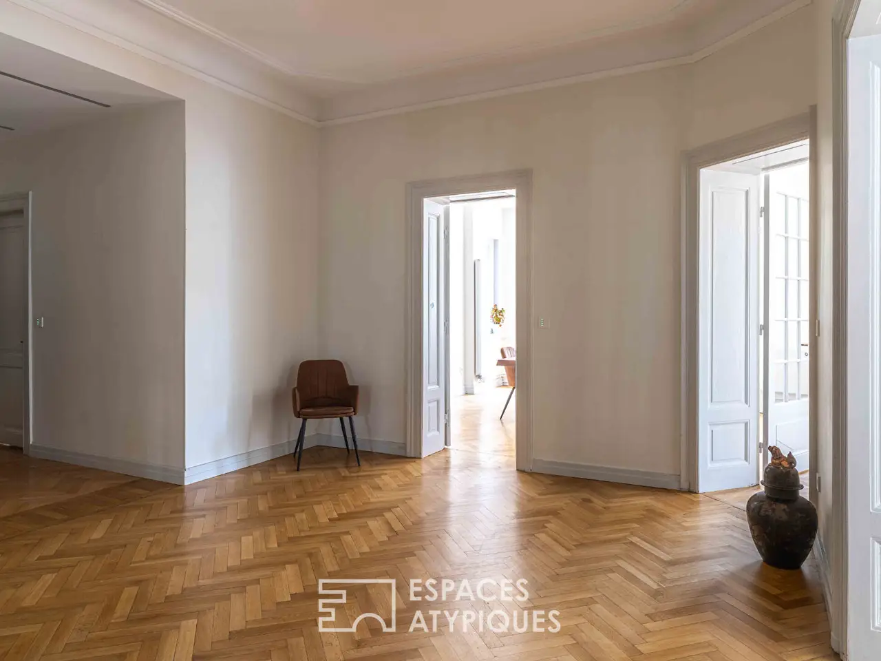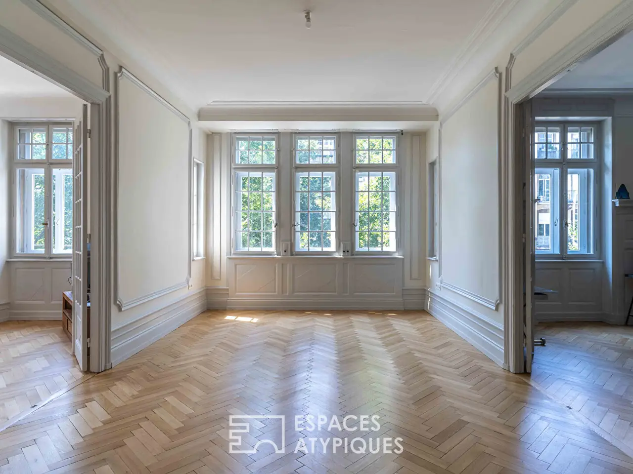 Located in a sought-after area, just a few minutes' walk from the Orangerie and the European institutions, this 246 m2 bourgeois flat is on the first floor with lift of a character building dating from 1910. In 2023, it underwent a meticulous renovation to enhance its many charming features. The entrance hall opens onto a generous hallway that leads to the flat's various rooms, including the double living room, which sets the tone with its solid parquet flooring, mouldings, wood panelling and high ceilings. Completely independent, the kitchen is housed behind superb glass doors whose sleek contemporary lines blend elegantly with the authentic charm of the premises. The room opens onto a terrace that is currently under construction, a rare feature for this type of property. The sleeping area includes a laundry room, a shower room and five spacious bedrooms, all of which boast all the charm of the old reinvented for a contemporary lifestyle. A master suite with its own bathroom with shower and bath completes the night space. Particular attention has been paid to comfort, with the installation of a home automation system. Two cellars and three good-sized bedrooms complete this exceptional property, which will delight lovers of old-world charm. Schools within 10 minutes' walk Bus 2 minutes' walk Motorway access 5 min away REF. 1604Additional information* 8 rooms* 6 bedrooms* 2 bathrooms* Floor : 1* 4 floors in the building* 5 co-ownership lots* Annual co-ownership fees : 8 726 €* Property tax : 3 878 €* Proceeding : NonEnergy Performance CertificatePrimary energy consumptiond : 226 kWh/m2.yearHigh performance housing*A*B*C*226kWh/m2.year49*kg CO2/m2.yearD*E*F*GExtremely poor housing performance* Of which greenhouse gas emissionsd : 49 kg CO2/m2.yearLow CO2 emissions*A*B*C*49kg CO2/m2.yearD*E*F*GVery high CO2 emissionsEstimated average amount of annual energy expenditure for standard use, established from energy prices for the year 2021 : between 3080 € and 4200 €Agency feesThe fees include VAT and are payable by the vendorMediatorMediation Franchise-Consommateurswww.mediation-franchise.com29 Boulevard de Courcelles 75008 ParisInformation on the risks to which this property is exposed is available on the Geohazards website : www.georisques.gouv.fr