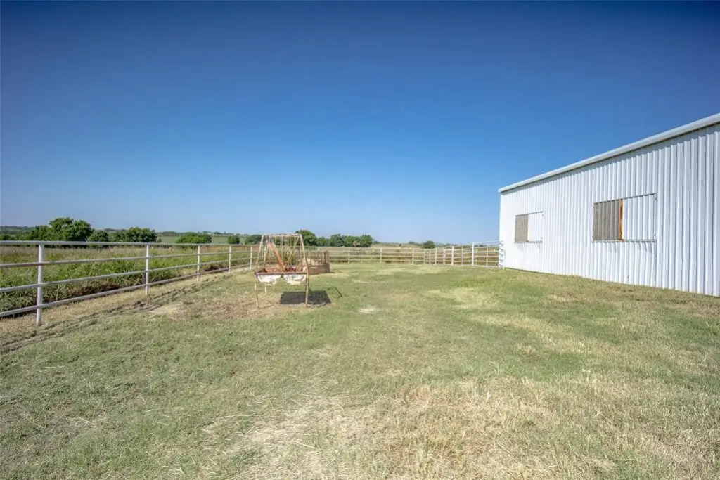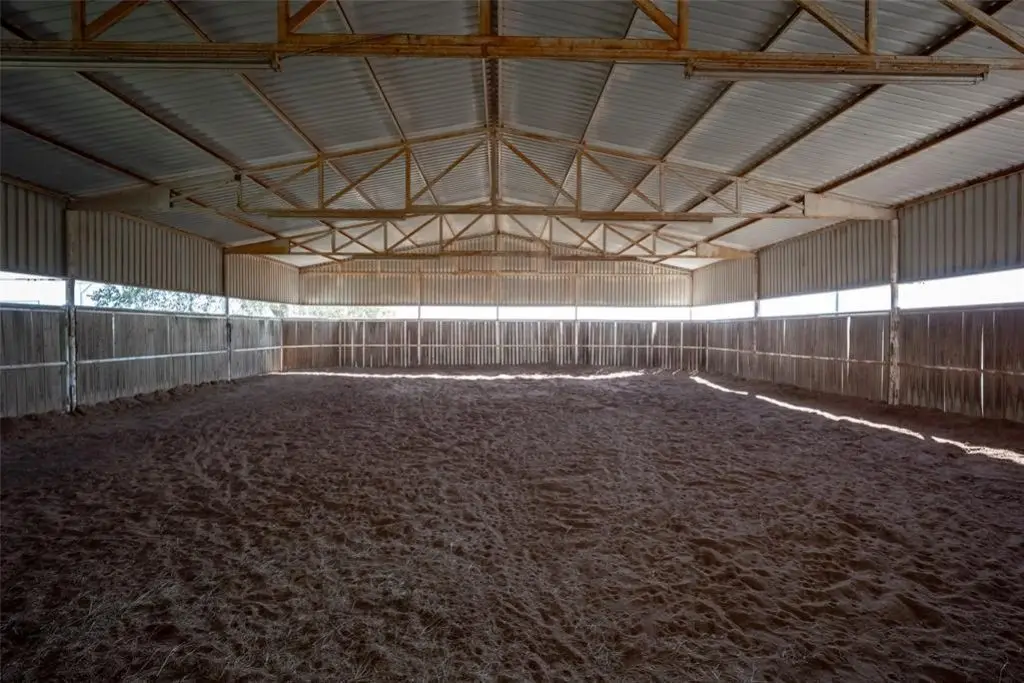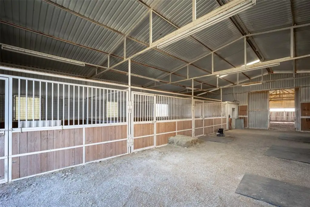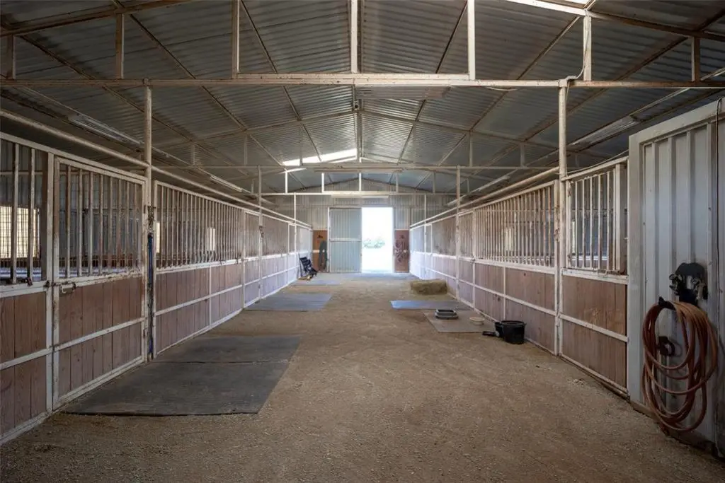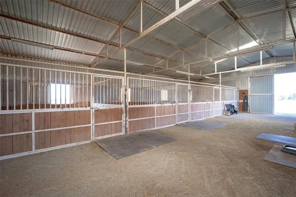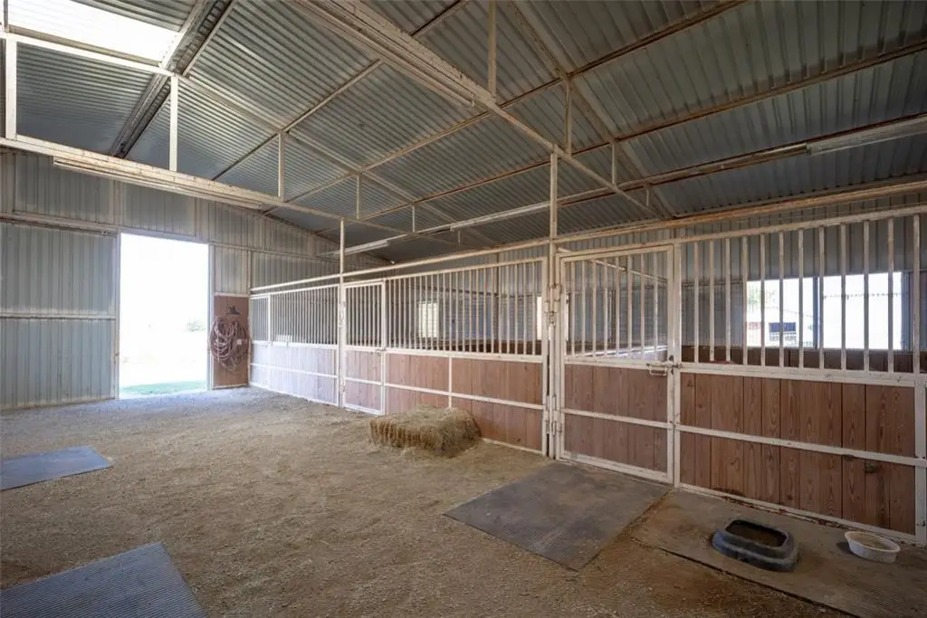 Metal barn with oversized stalls and round pen