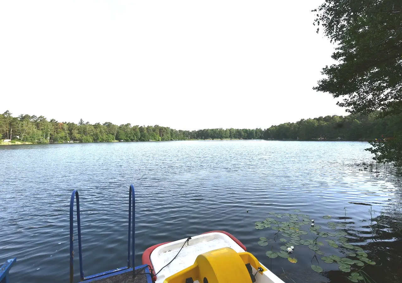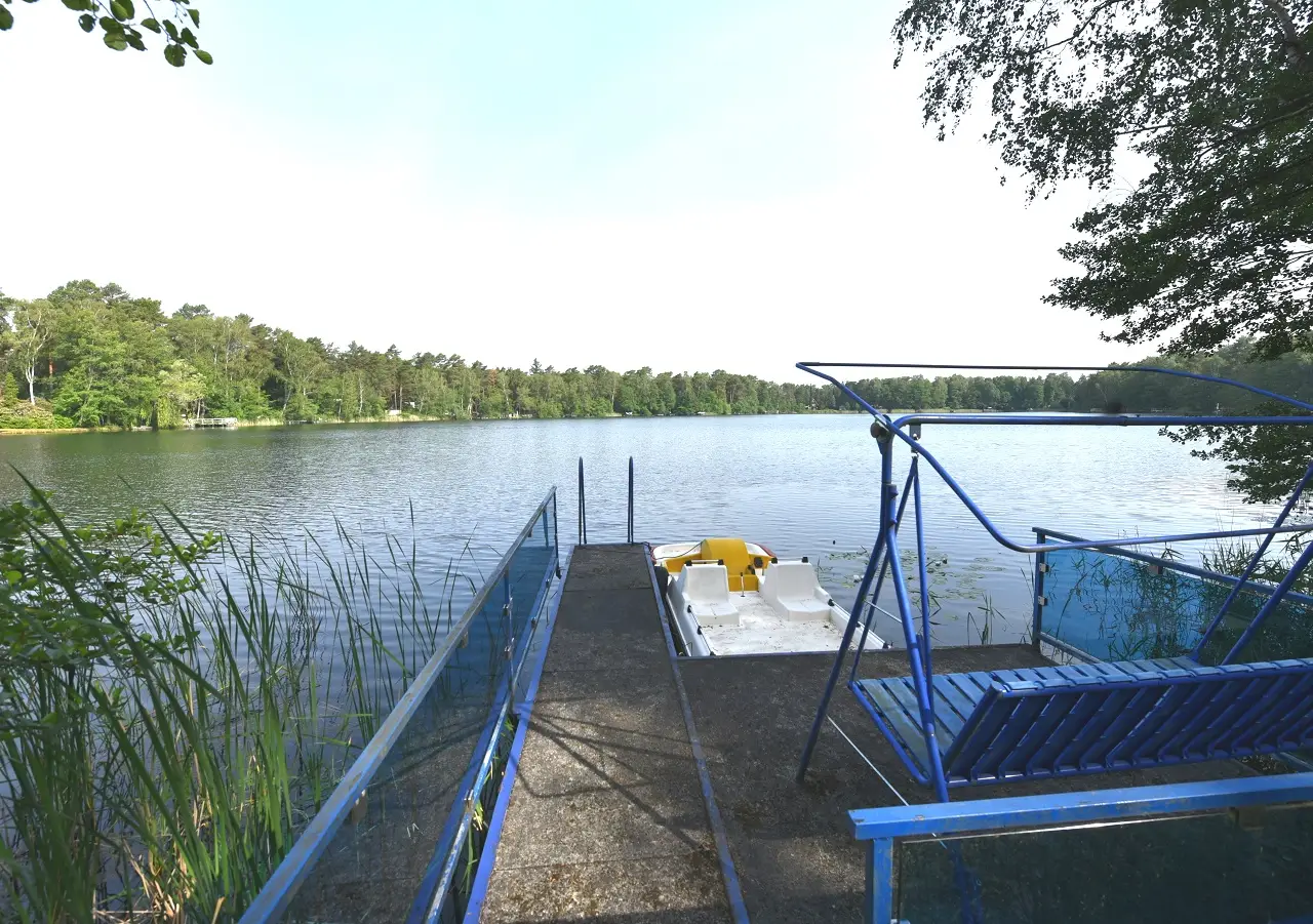 The dreamlike lake property with a wide shoreline is located in the unique nature reserve in Heidesee, Streganz district, about 35 km from the gates of Berlin. The holiday guesthouse with a sunny south-facing terrace has a garage extension on the right-hand side and was built in 1968. There is another outbuilding on the property. The property includes a solid jetty. The park-like property of about 943 m² is tastefully laid out and fenced. The property includes rare plants, a marble driveway, statues and landscaped paths. Wastewater is disposed of in a certified septic tank. NOTE: This is a recreation area or recreation property (location in the open air according to Section 35 of the Building Code). Position LOCATION/TRANSPORT: Streganz is located around 25 km southeast of the city limits of Berlin. The municipality has a train station with regional trains to Berlin and Dresden. By train, you can get to Berlin's Alexanderplatz in an hour. The A12 federal highway, Friedersdorf junction, can be reached directly. The Schönefelder Kreuz can be reached in just a few minutes with the Berlin city highway A 113 or the A 13 towards Dresden. Friedersdorf also has a glider airfield. The new BER airport is around 25 minutes away by car and Berlin city center is around 35 minutes away by car. A bus line runs regularly to the Königs Wusterhausen S-Bahn station. Königs Wusterhausen is connected to the Berlin S-Bahn ring. ECONOMY/INFRASTRUCTURE: The municipality of Heidesee and all its districts offer a good infrastructure with daycare centers, schools, medical care, cultural and sports facilities. The town of Friedersdorf itself has a bakery, flower shop, drinks market, Raiffeisen hardware store, hairdresser, drugstore, farm shop, two restaurants and a physiotherapy clinic. The TESLA Giga Factory opened its doors in 2021 and expects around 10,000 jobs in the medium term. The opening of Berlin Brandenburg Airport (BER) has created many jobs. LEISURE/NATURE: Streganz, now part of the municipality of Heidesee, is located around 25 km southeast of the Berlin city limits in the Dahme-Spreewald district. Here is the approximately 300 hectare "Skabyer Torfgraben" nature reserve. The body of water is embedded in the East Brandenburg heath and has many attractive lakes. Otters, kingfishers, cranes and sand lizards can be found here. parking space 1 x garage