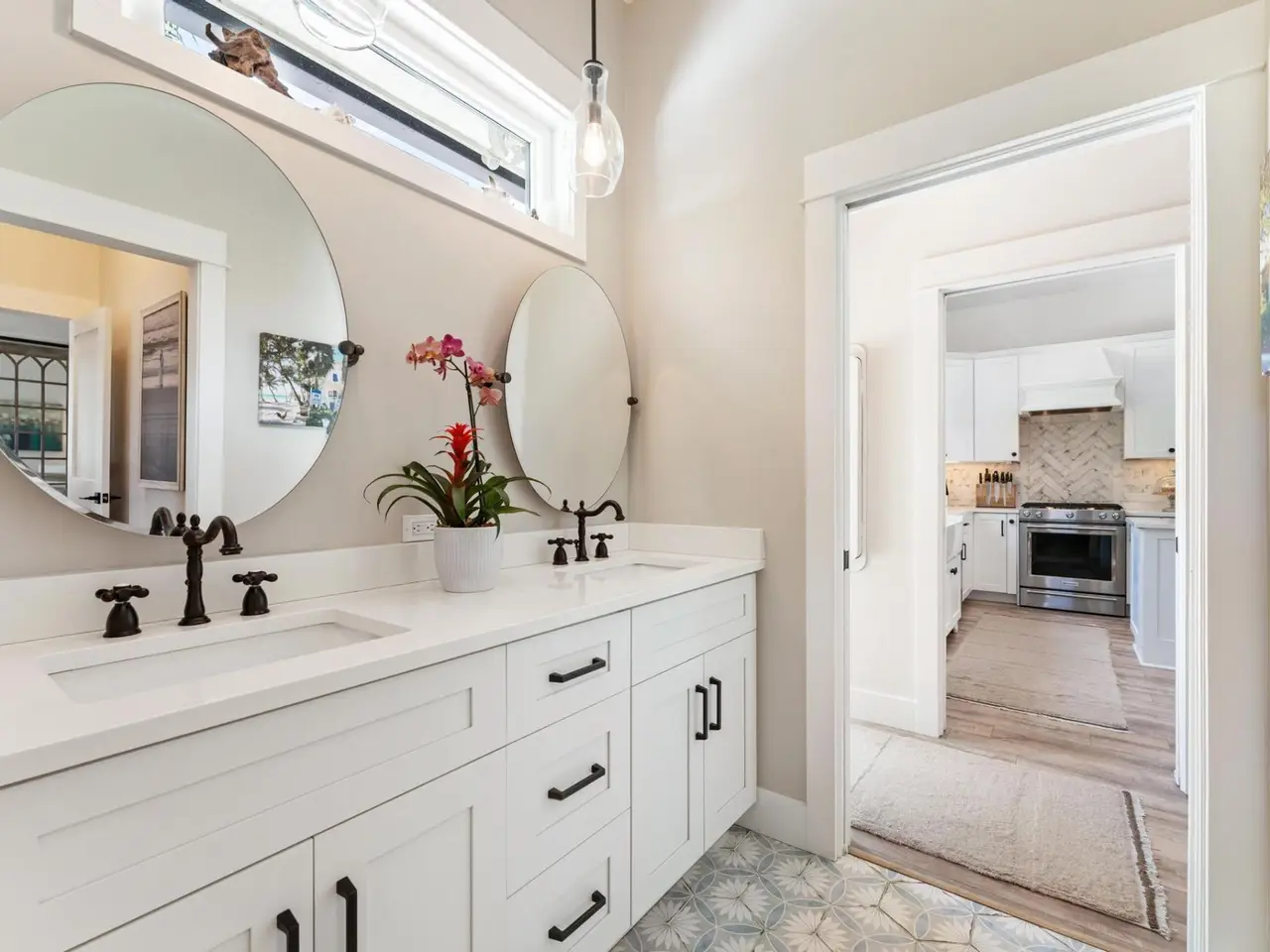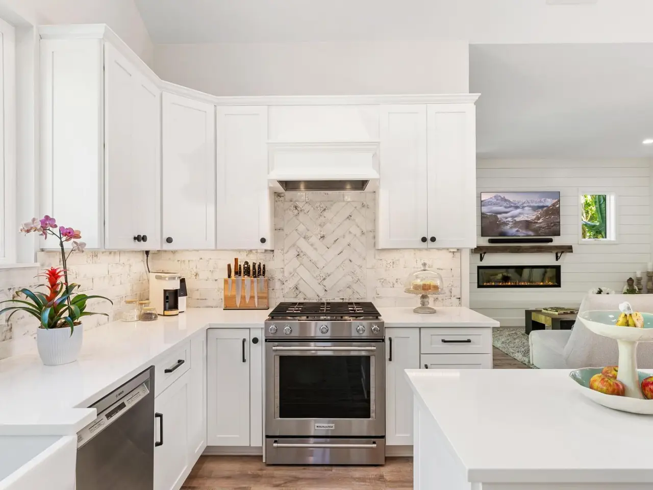 • Reconfigured kitchen with large island