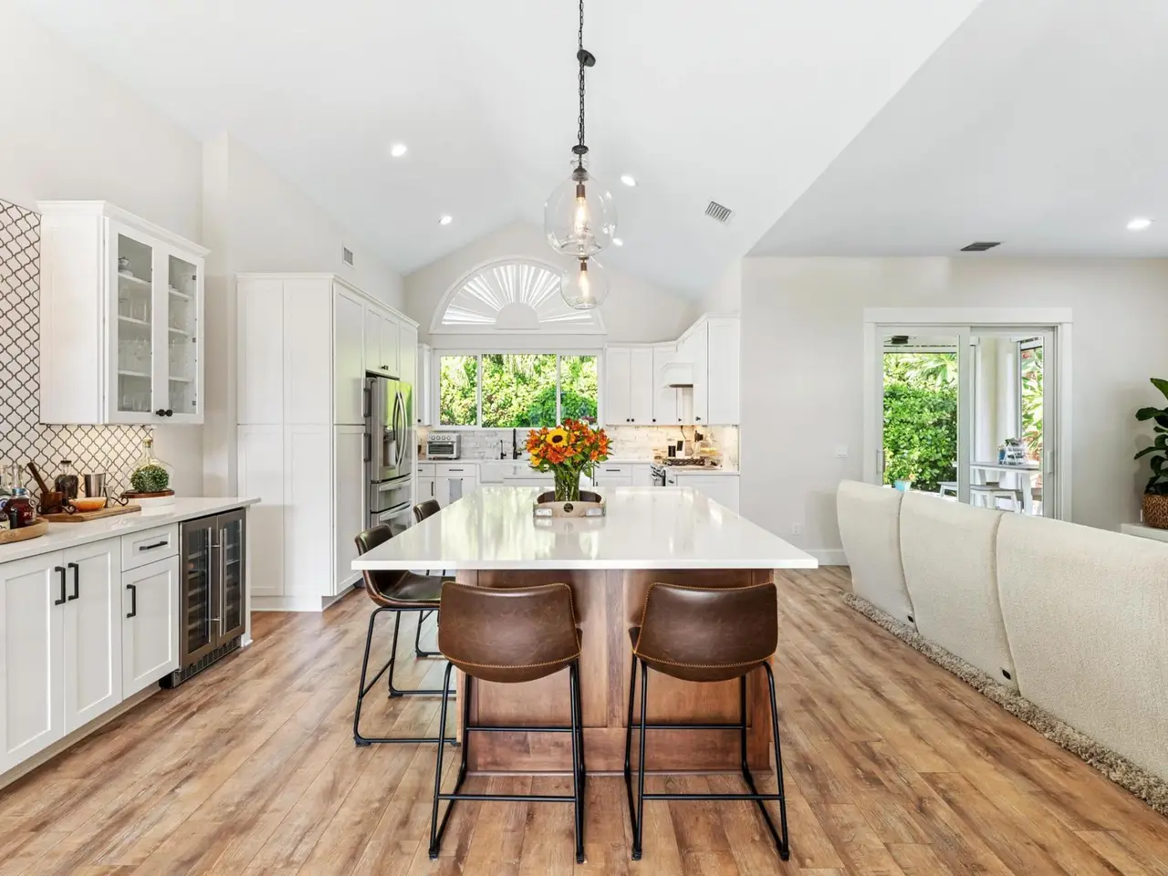 This Downtown Stuart-area home exudes true Florida style with functionality. Pride of ownership is felt the moment you cross the front door. New impact glass windows & doors, a reconfigured kitchen with large gathering island, & bar area beckon the true entertainer. Separate living room offers picture window views of the lush landscaping. Additional sitting area with accent fireplace. Garage doubles as an air-conditioned life/workspace. Outside, the home shines day or night, with multiple seating areas, plunge pool, gas-fed firepit, and water feature. Upgrades include home generator, 2023 new roof, owned solar panels & SPAN home center. A bonus, 40-plus foot dock at the Outrigger Harbour Marina (Jensen Beach) & 24k lift offered for $325