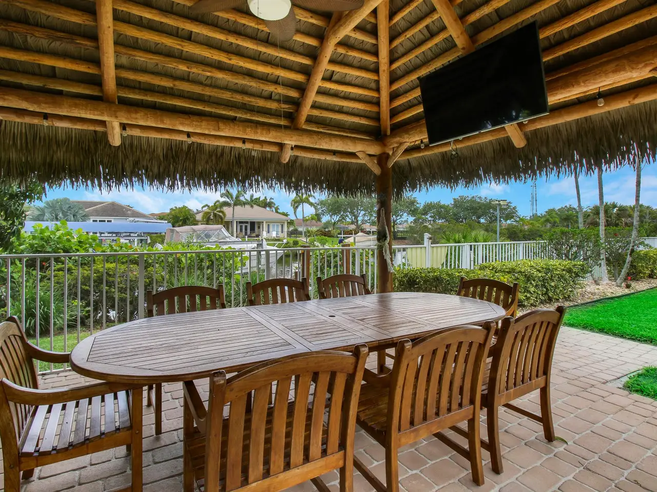 Come see this impressive waterfront pool home located in a gated boating community. This 4 bedroom (plus den/office), 3 bath home is on a deep-water canal with a dock (updated in 2020) and a 13K lift located behind the home with ocean access and no fixed bridges. Great outdoor living with a fenced backyard with an awesome heated saltwater pool and a Tiki Hut with a built-in outdoor style kitchen, lush landscaping and on a corner-lot add to a private setting. The interior of the home is nicely appointed with formal dining and living room and a large combo kitchen and family room. The kitchen comes with stainless steel appliances, 42'' cabinets, granite countertops, double oven, and a center island. Large 3 bay garage allows for good storage. Both A/C units replaced in 2023. Whole house Generac 22kw generator installed in 2020. Easy access to I-95.