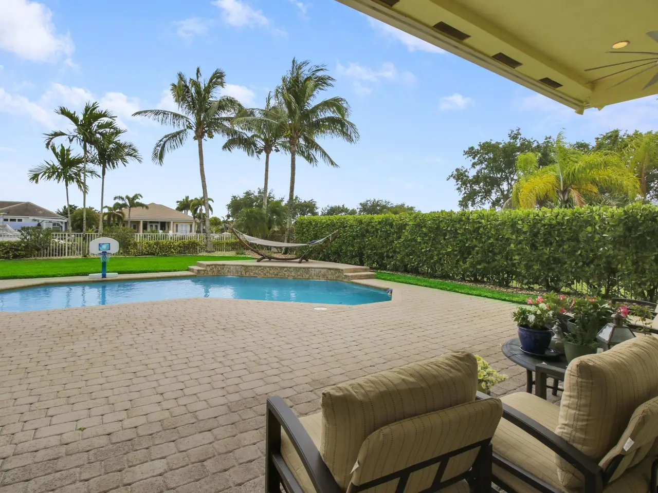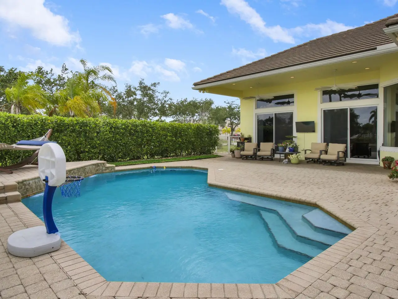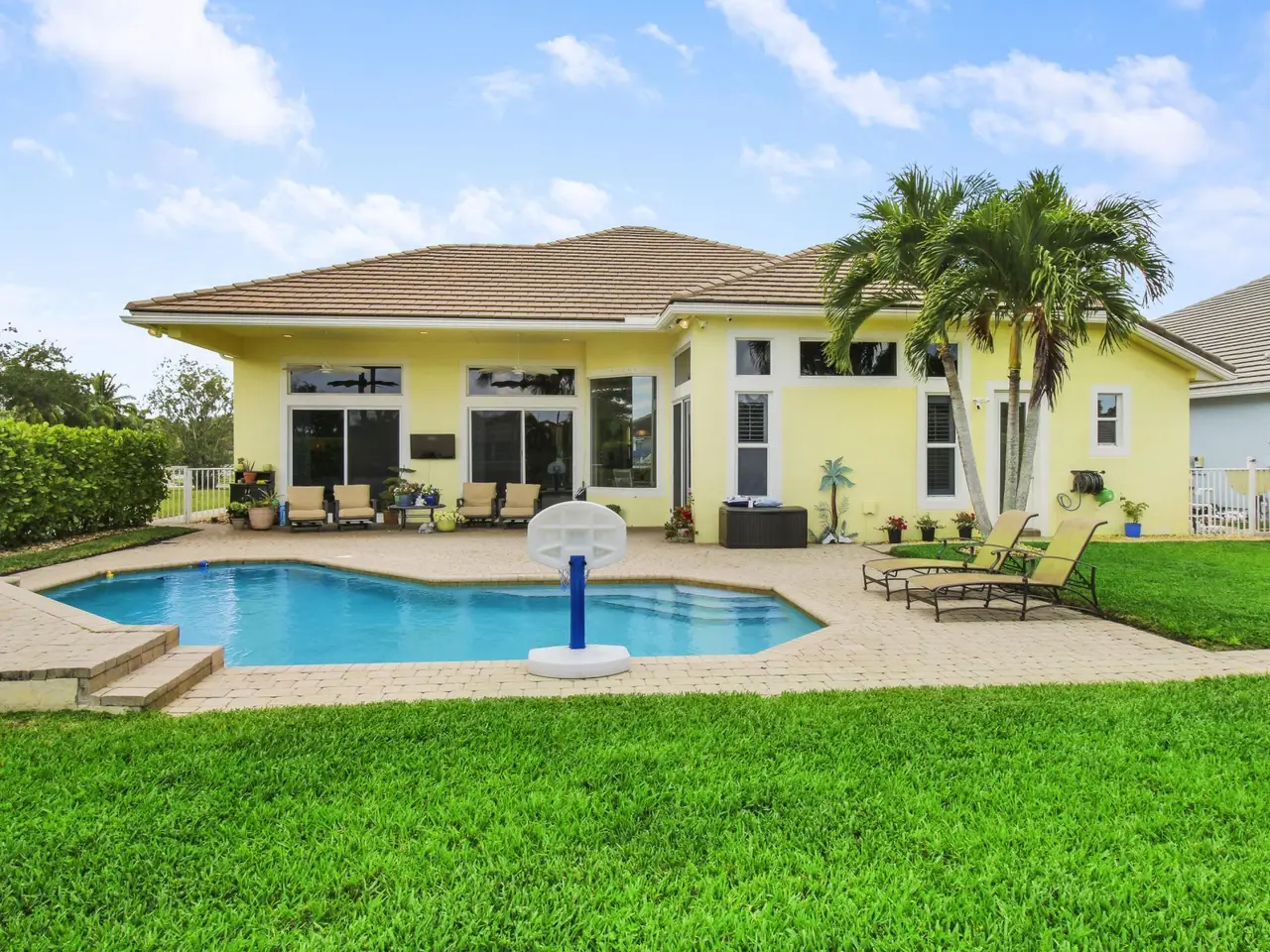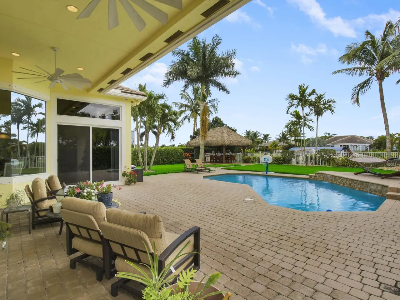 Come see this impressive waterfront pool home located in a gated boating community. This 4 bedroom (plus den/office), 3 bath home is on a deep-water canal with a dock (updated in 2020) and a 13K lift located behind the home with ocean access and no fixed bridges. Great outdoor living with a fenced backyard with an awesome heated saltwater pool and a Tiki Hut with a built-in outdoor style kitchen, lush landscaping and on a corner-lot add to a private setting. The interior of the home is nicely appointed with formal dining and living room and a large combo kitchen and family room. The kitchen comes with stainless steel appliances, 42 cabinets, granite countertops, double oven, and a center island. Large 3 bay garage allows for good storage. Both A/C units replaced in 2023. Whole house Gen erac 22kw generator installed in 2020. Easy access to I-95.