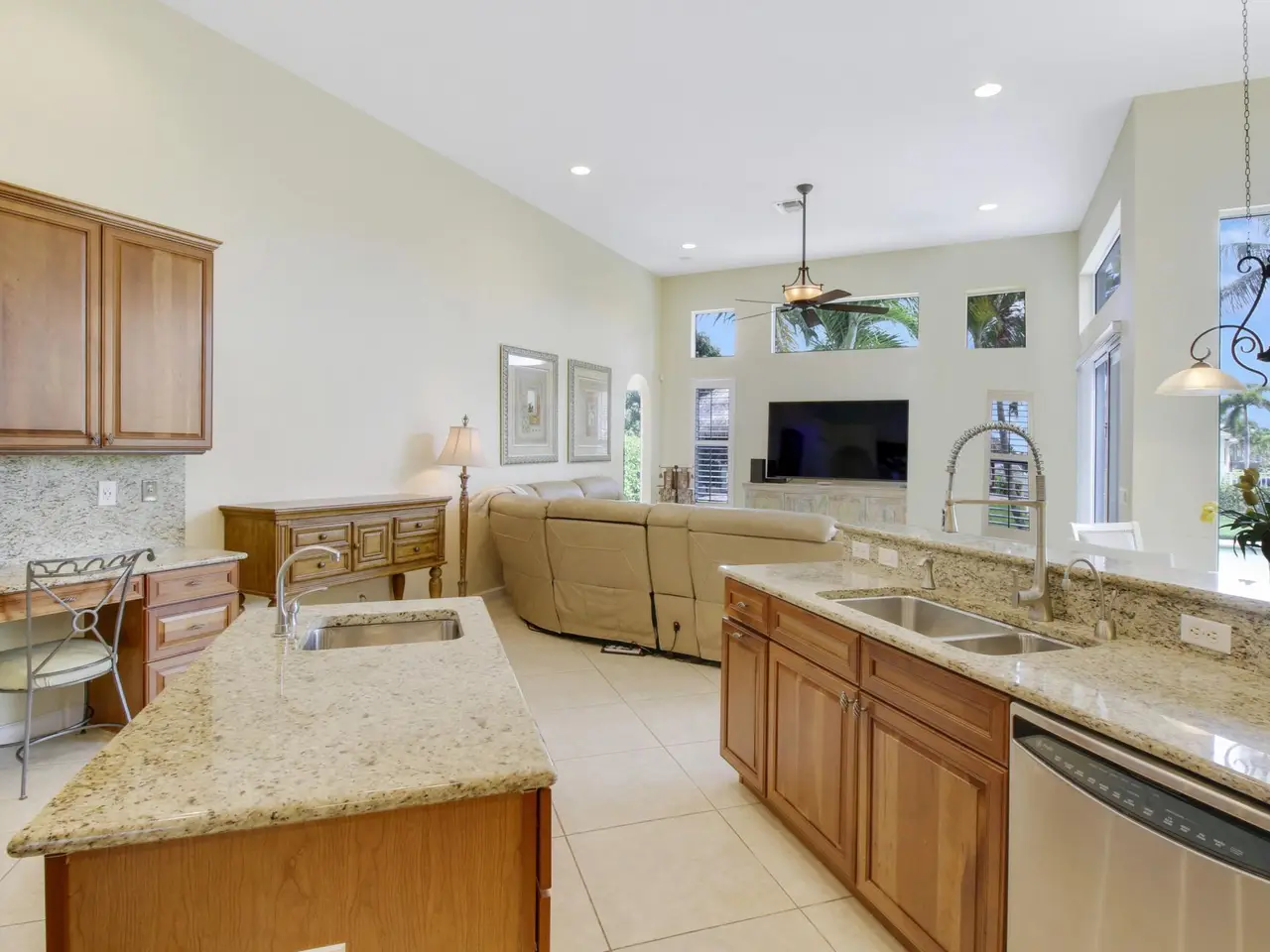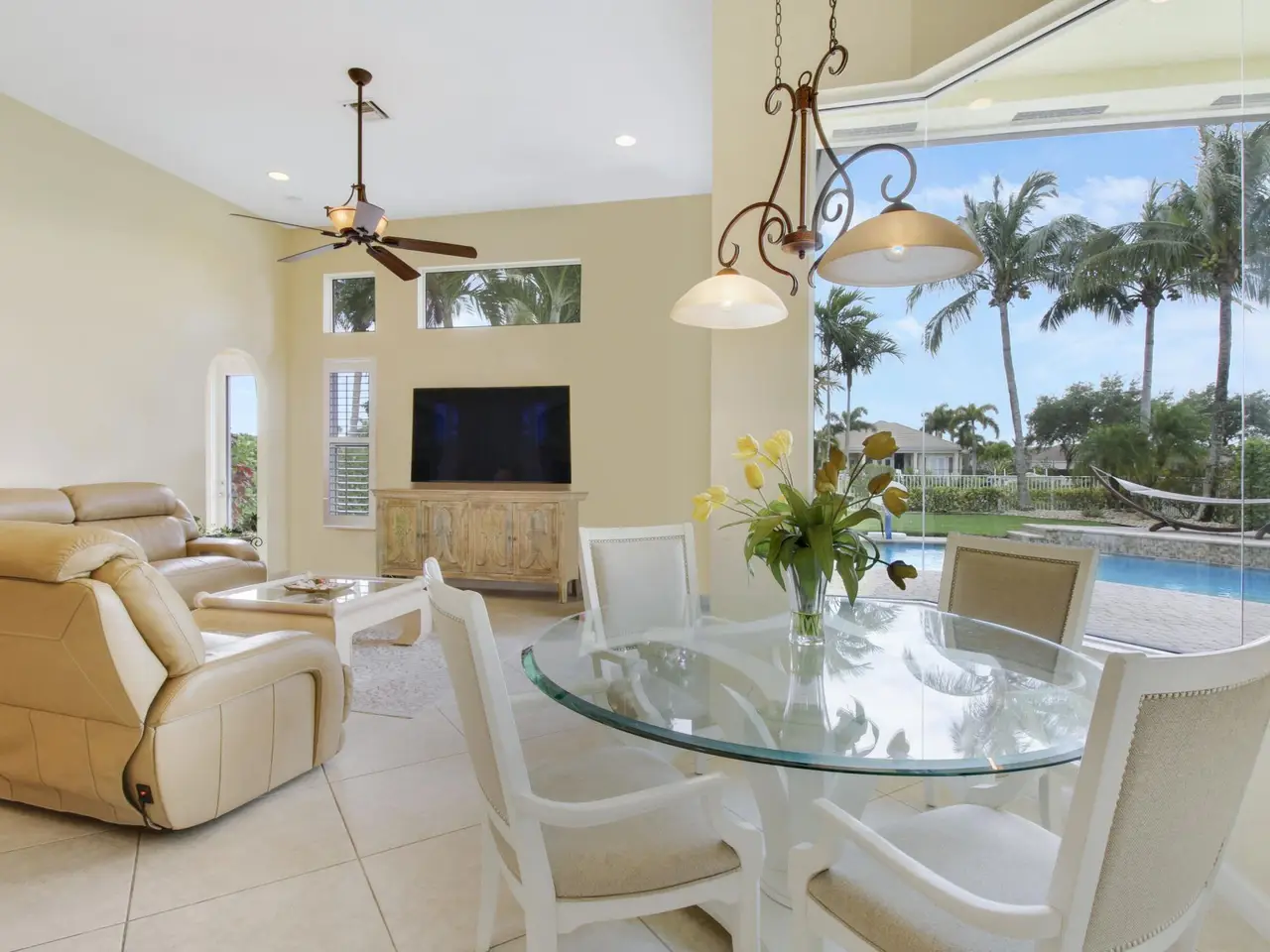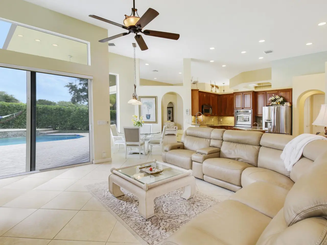 Come see this impressive waterfront pool home located in a gated boating community. This 4 bedroom (plus den/office), 3 bath home is on a deep-water canal with a dock (updated in 2020) and a 13K lift located behind the home with ocean access and no fixed bridges. Great outdoor living with a fenced backyard with an awesome heated saltwater pool and a Tiki Hut with a built-in outdoor style kitchen, lush landscaping and on a corner-lot add to a private setting. The interior of the home is nicely appointed with formal dining and living room and a large combo kitchen and family room. The kitchen comes with stainless steel appliances, 42 cabinets, granite countertops, double oven, and a center island. Large 3 bay garage allows for good storage. Both A/C units replaced in 2023. Whole house Gen erac 22kw generator installed in 2020. Easy access to I-95.