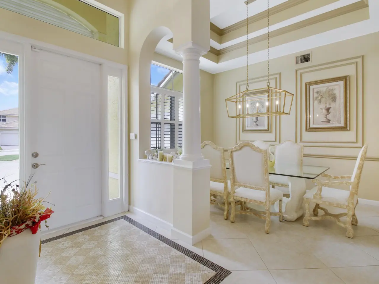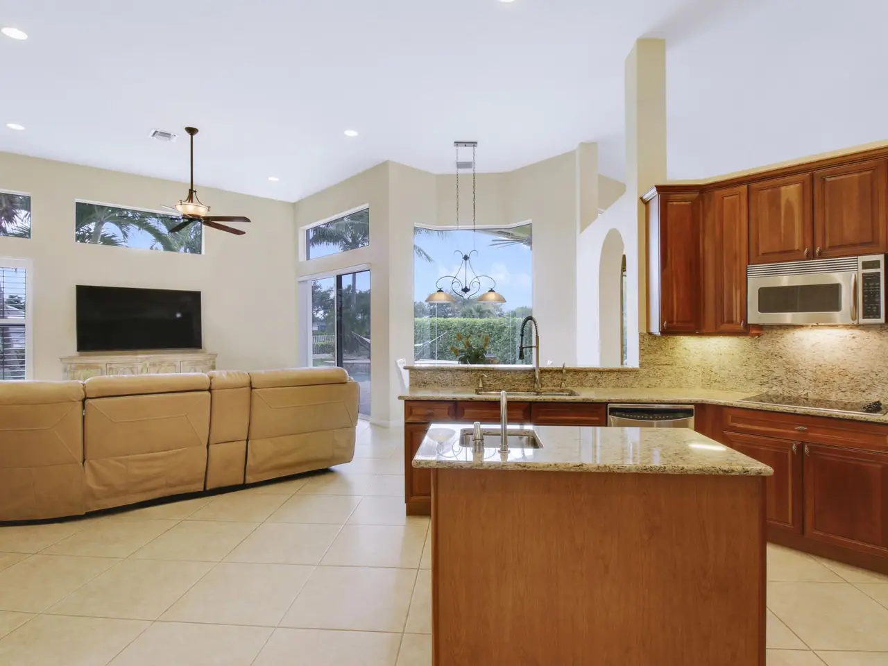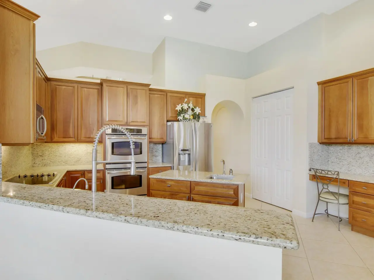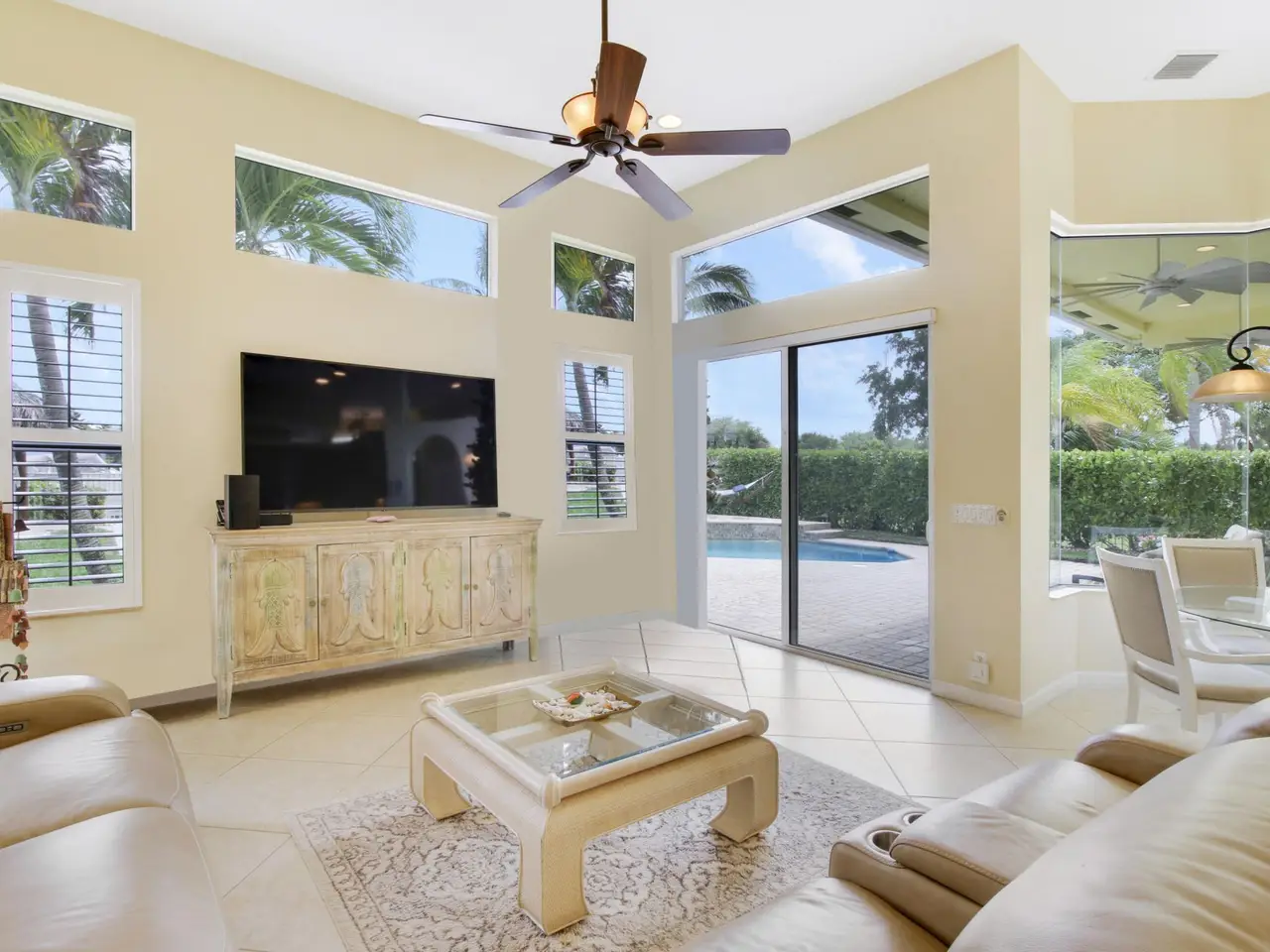 Come see this impressive waterfront pool home located in a gated boating community. This 4 bedroom (plus den/office), 3 bath home is on a deep-water canal with a dock (updated in 2020) and a 13K lift located behind the home with ocean access and no fixed bridges. Great outdoor living with a fenced backyard with an awesome heated saltwater pool and a Tiki Hut with a built-in outdoor style kitchen, lush landscaping and on a corner-lot add to a private setting. The interior of the home is nicely appointed with formal dining and living room and a large combo kitchen and family room. The kitchen comes with stainless steel appliances, 42 cabinets, granite countertops, double oven, and a center island. Large 3 bay garage allows for good storage. Both A/C units replaced in 2023. Whole house Gen erac 22kw generator installed in 2020. Easy access to I-95.