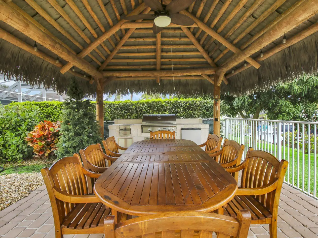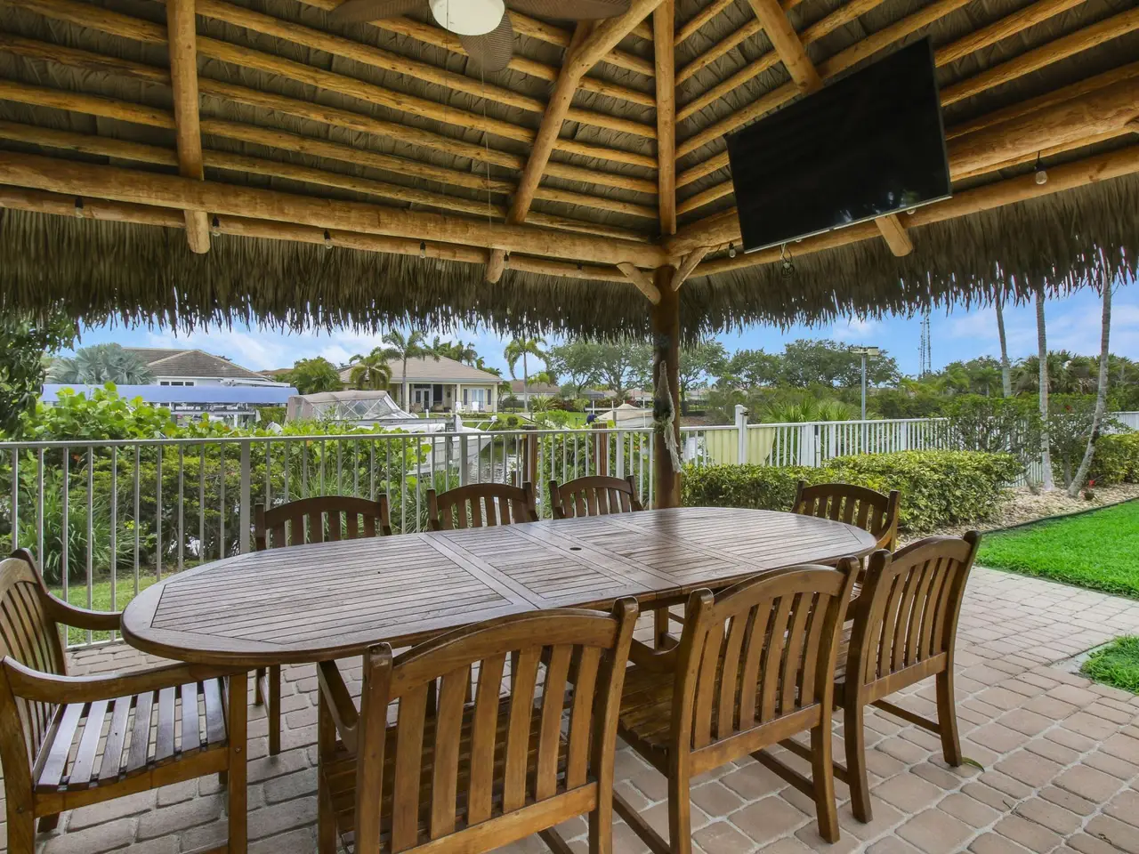 Heated saltwater pool with Tiki Hut and outdoor kitchen