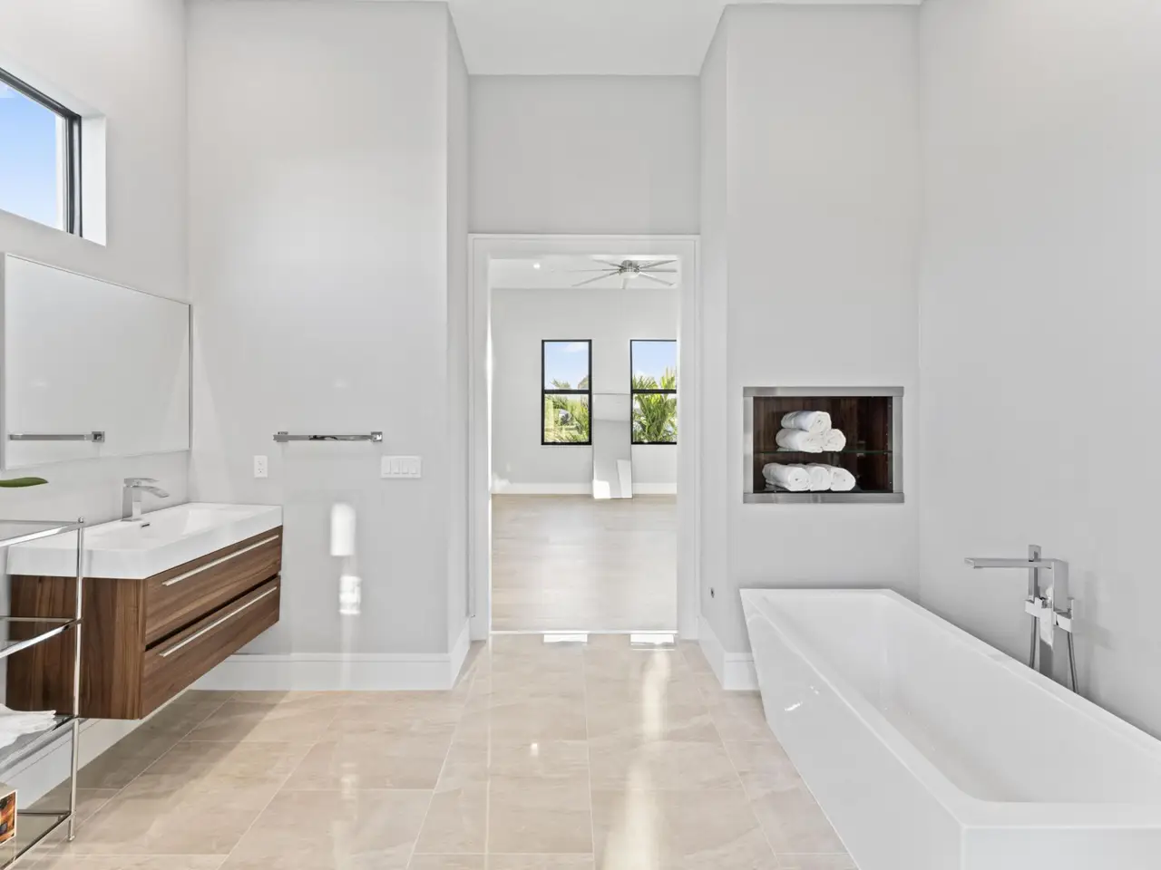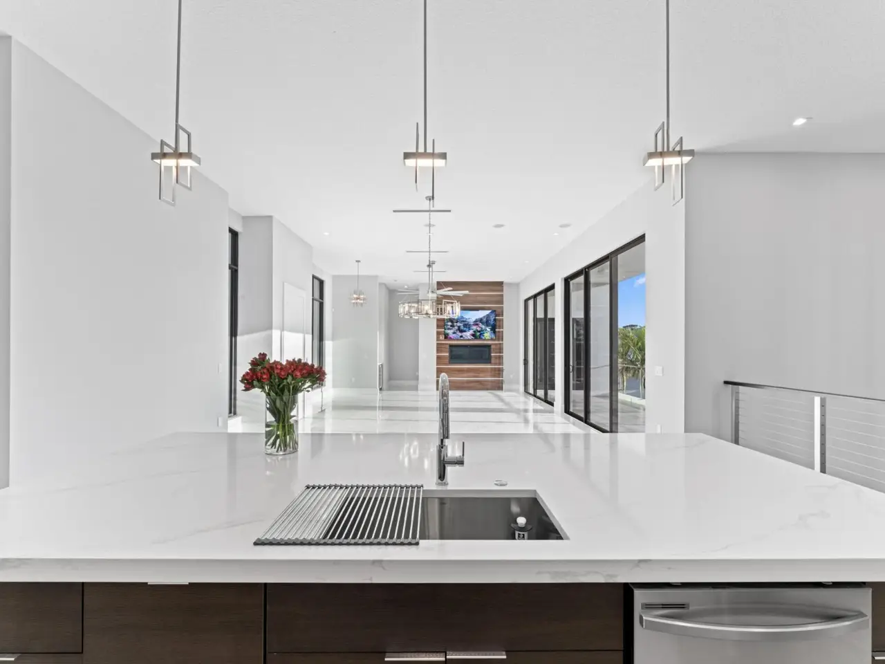 Ultra-Modern Architectural Estate in Stuart, FL -- Where Innovation Meets Luxury in the Sailfish Capital of the WorldJust minutes from downtown Stuart, discover this brand-new, 100% CBS Modern Contemporary Rectilinear Estate, a stunning expression of architectural brilliance and cutting-edge functionality. Designed for ultimate comfort and convenience, this state-of-the-art residence sits on over half an acre off St. Lucie Boulevard, adjacent to Sailfish Sands Golf Course, one of South Floridas premier golfing destinations. Stuart, Florida has been recognized as one of the best coastal small towns in America by USA TODAY 10Best in 2025. In 2024 and 2023, Stuart was named in the top 10 winners for Best Coastal Small Town. The city has also received numerous other accolades, including recognition as a great place for retirement and for its environmental initiatives. Distinguished awards over the years have included Best Small Town (Smithsonian Magazine), Floridas Most Beautiful Small Towns and Cities (MSN), Happiest Seaside Town (Coastal Living), Americas Most Beautiful Town (House Beautiful), The Souths Best Small Towns 2022 (Southern Living), and 10 Best Boating Destinations in Florida (Discover Boating), to name a few. In addition to being a great place to visit, Stuart is a great place to live, work and play. Main Residence Features -Gourmet Chefs Kitchen: - 6 x 12 island, dual refrigerators, provisions for a secondary microwave and/or vegetable prep sink. - Miele dual-fuel double oven, micro convection, warming drawer, cooktop griddle, and expansive walk-in pantrya true culinary haven. -Soaring Ceilings & Expansive Windows: 10-ft ceilings and 8-ft doors on the first level; 12-ft ceilings, 10-ft doors, and 9-ft windows on the second level, framing panoramic waterfront and golf course views. -Grand Design & Layout: Three bedrooms, including a luxurious master suite with spa-inspired en-suite bath, guest suite with private bath, 3.5 total bathrooms, and a state-of-the-art East Coast elevator. -Two Full-Size Laundry Rooms: Thoughtfully placed for effortless convenience. -Four-Car Garage: Generously designed to accommodate vehicles, recreational storage, and additional workspace. Private Guest House & Outdoor Luxury -Exclusive Guest Retreat: A one-bedroom residence featuring a full kitchen, private bath and laundry room. -20 x 30 covered patio overlooking the resort-style pool, complete with a breathtaking rainfall feature. State-of-the-Art Luxury Pool & Water Features -Pentair Automated Pool (20 x 40): Equipped with variable-speed pumps, with options for saltwater chlorine generation, propane, heat pump, and solar heating. -Smart Automation: Control the pool effortlessly from an outdoor panel, your smartphone, or an added handheld Wi-Fi remote. -Rainfall feature from the guest house roofline over the secondary ledge in the swimming pool. -Tanning ledge with an umbrella and romance ledge in the pool. -10 x 24 cascadin