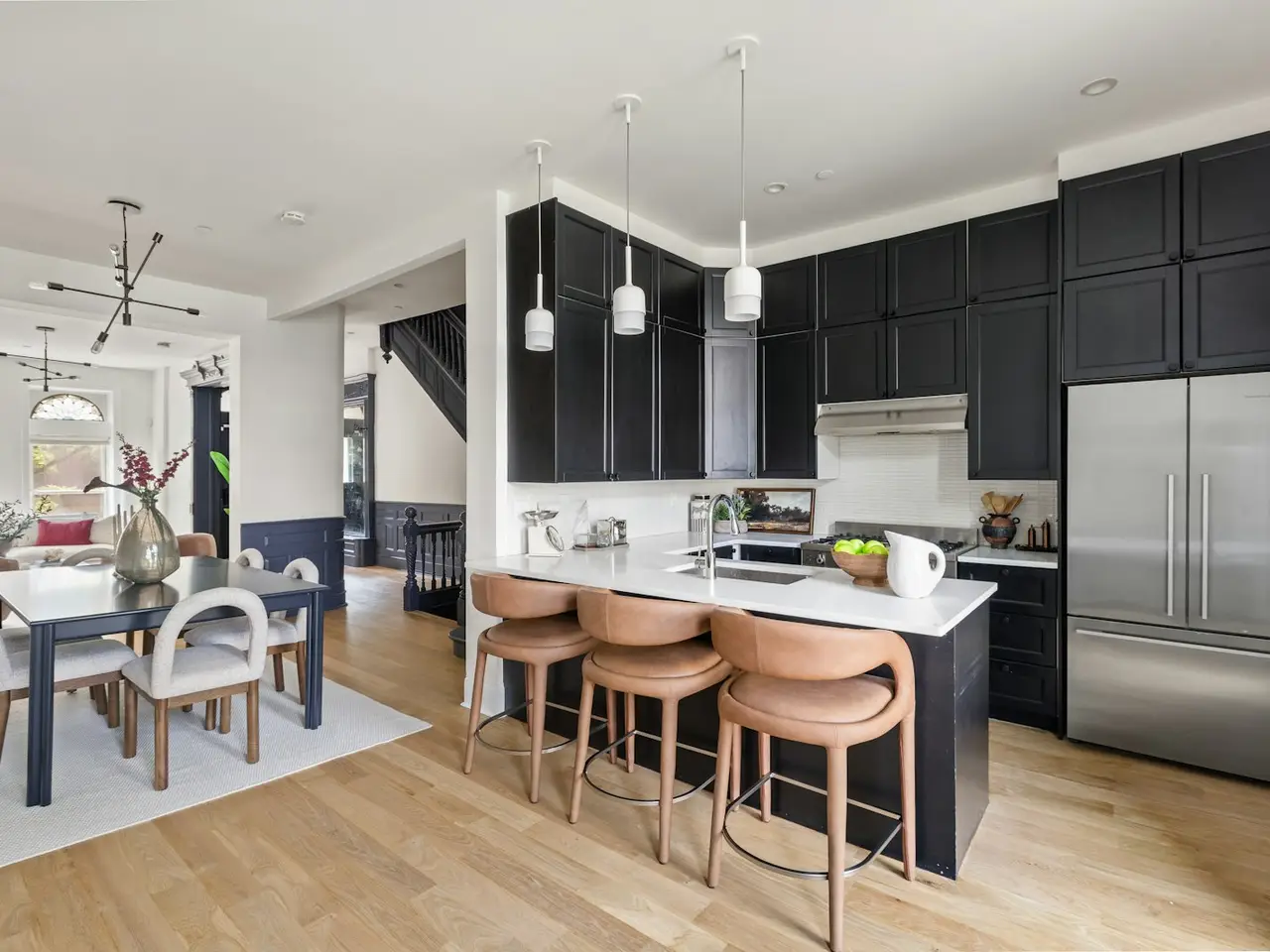 StuyHeights Brownstone with Roof Deck Soak up the sun and skyline views from your private rooftop deck, accessed via a fully retractable skydoor-just one of the many standout features of this meticulously updated brownstone at 271 Decatur Street in Stuyvesant Heights. In a city where private outdoor space is rare, this home offers multiple opportunities to enjoy the outdoors in style. The parlor level welcomes you with striking contrast: natural light fills the space while black wainscoting, moldings, and original restored staircase banisters add bold sophistication. Wide archways create a gracious flow from the living room to the formal dining area and into a sleek, modern kitchen outfitted with black cabinetry, geometric tilework, and a full suite of stainless steel appliances. On the garden level, an oversized bedroom, full bath, and a versatile recreation space offers ultimate flexibility-perfect as a guest suite, home office, or additional sleeping quarters. Step outside to your private backyard retreat for al fresco entertaining or quiet morning coffee. The second floor features two spacious bedrooms, a stylishly tiled full bath, and a bonus room ideal for a study or additional bedroom. Upstairs, the third floor mirrors the layout with three more bedrooms, another full bath, and abundant closet space throughout. One more flight brings you to your rooftop-a true urban oasis-perfect for lounging, entertaining, or taking in panoramic Brooklyn views. Conveniently located near the A and C trains at Utica Avenue and surrounded by beloved neighborhood favorites like Peaches and Saraghina, this home offers the perfect blend of charm, space, and connectivity.