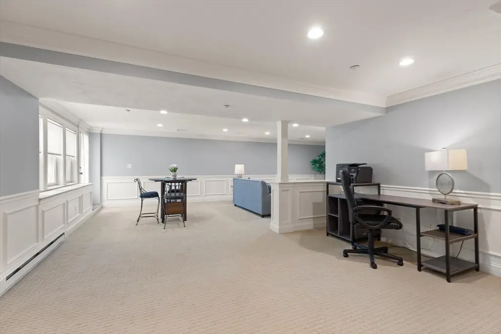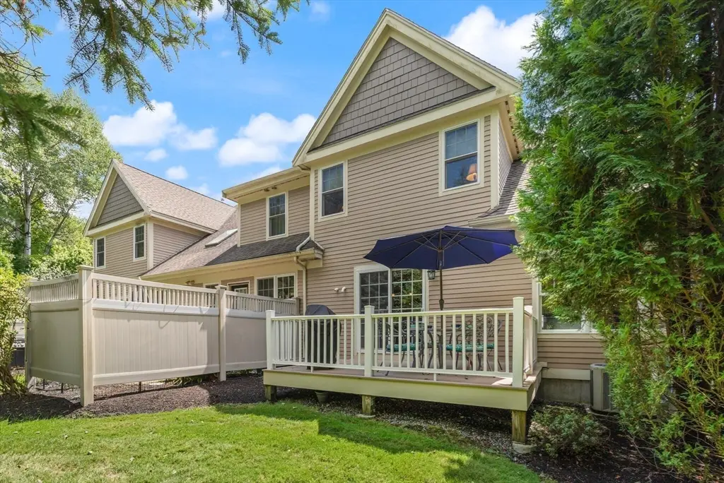 THIS IS A NON AGE RESTRICTED CONDO! SEE MLS#73448492 .Sophisticated, airy & bright end unit condo blending elegance & comfort. Perfectly positioned at the rear of the complex, this stunning 3 bedroom home enjoys tranquil views of conservation land. A soaring vaulted ceiling w/ skylight, gas fireplace, gleaming hardwoods, & refined moldings set the tone for quality throughout. The expansive kitchen features cherry cabinetry, stainless steel appliances, a peninsula, & an inviting eat-in area with sliders to the deck. The formal dining room shines with wainscoting & a custom bar w/ glass-front cherry cabinetry, ideal for entertaining. A 1st floor office w/ tailored built ins provides an inspiring workspace. Upstairs includes 3 spacious bedrooms, including a luxurious primary suite, plus convenient second floor laundry. The finished walk out lower level with full bath expands the living space, perfect for a media room, guest suite, or gym. Two car garage and prime Sudbury location!
