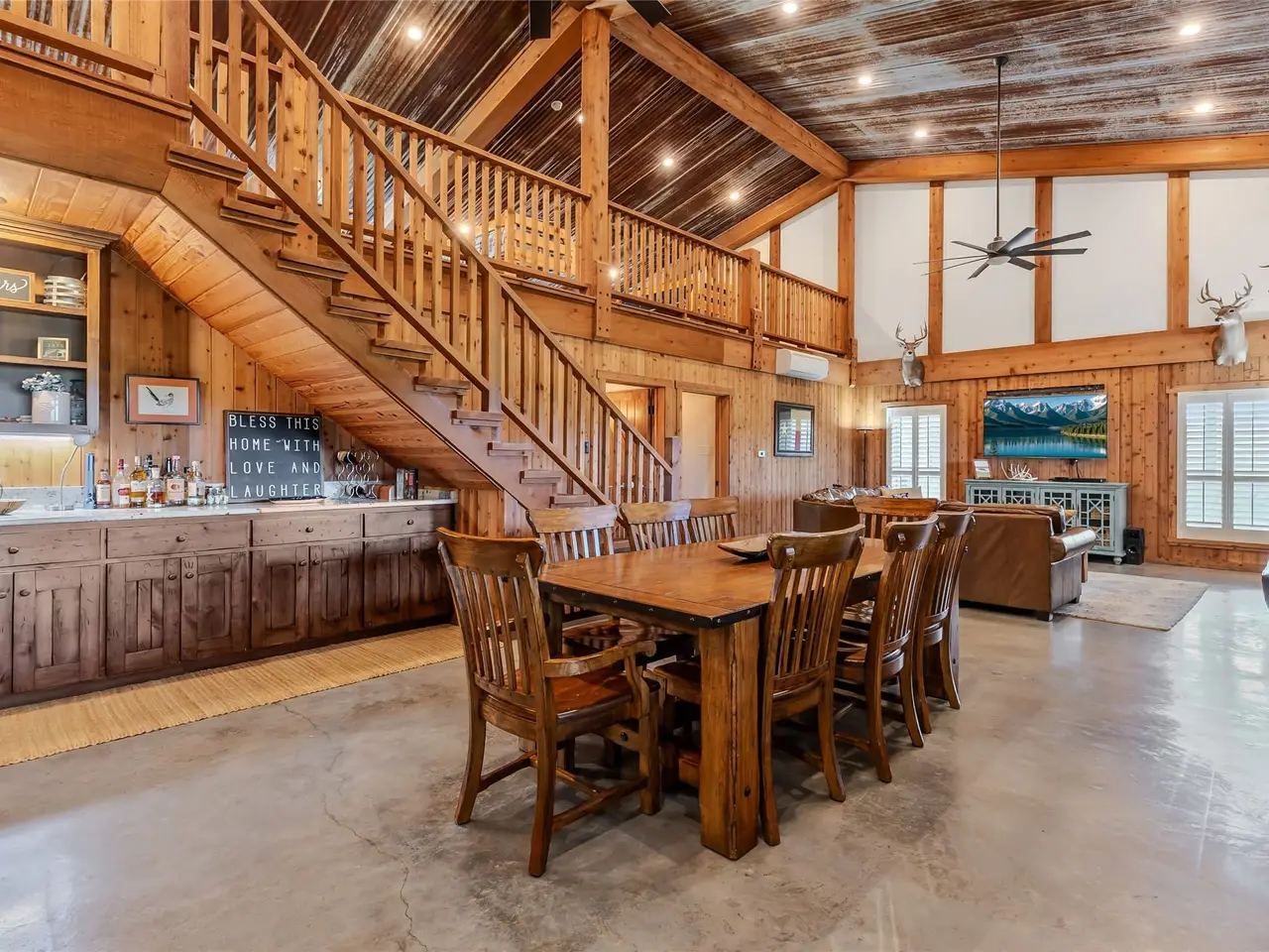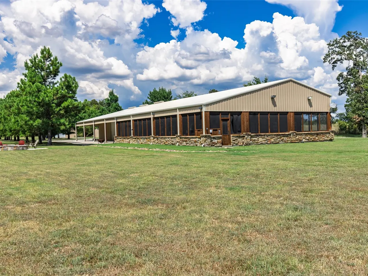 Your own family recreational ranch. Activities for everyone. 449 mostly oak-treed acres with cleared riding trails throughout. Good deer population, 4 stocked bass ponds, waterfowl and exciting 4-wheeling. Over 4,800 square foot two-story barndominium-style lodging with chef's kitchen, three bedrooms and five baths down and huge upstairs area for kids with 3 bunkbeds, 1 bathroom and a theater room. Screened-in porches for extra room to entertain and enjoy the view. Also, a gorgeous pool house overlooking two beautiful fenced-in pools. For the rancher, there is a 40-acre improved grass hay pasture. For equipment and toys, you have a 60X36 barn and a 75x40 barn with 16ft doors, half-bath and concrete floors. Attached is a 75x25 carport and drive-through covered patio. 444-foot backup well and attractive ranch gate. Ag taxes. Don't miss this one, it's power packed!