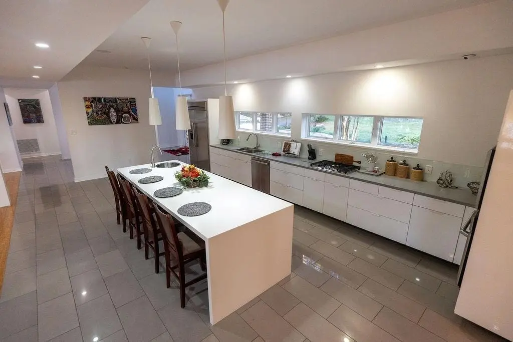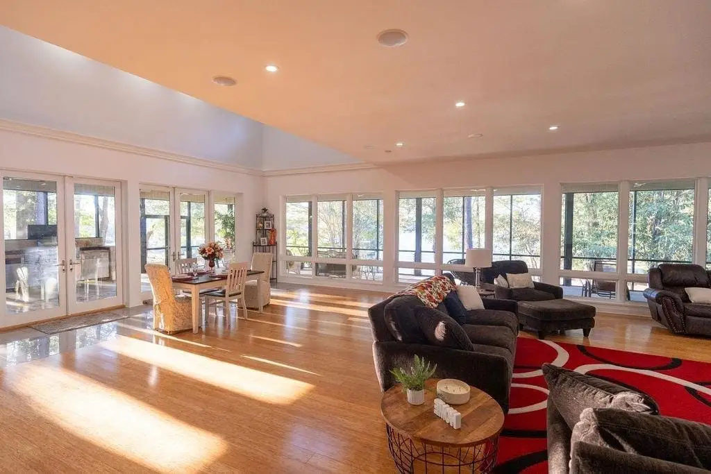 Experience refined waterfront living on this 2.2-acre estate with 186 feet of deep-water frontage along beautiful Fish River. This 5,200 sq. ft. concrete constructed home with a metal roof blends modern design with elegant Asian-inspired details and offers the perfect balance of sophistication and natural beauty.Interior Highlights:Step inside to an open, light-filled floor plan surrounded by expansive windows that showcase panoramic water views. The Thermador-equipped chef's kitchen features premium appliances, sleek cabinetry, and clean, contemporary lines. With three laundry rooms, generous living areas, and thoughtful design throughout, the home delivers both comfort and functionality in every detail.Exterior Features:Enjoy seamless indoor-outdoor living with a screened outdoor kitchen featuring a built-in grill, dishwasher, sink, and refrigerator ideal for entertaining by the river. The property includes a sprinkler system, heated and cooled metal building with a car lift, and a second metal building with RV storage. Surrounded by mature trees and natural landscape, this estate offers privacy, tranquility, and a true connection to the water. Buyer to verify all information during due diligence.