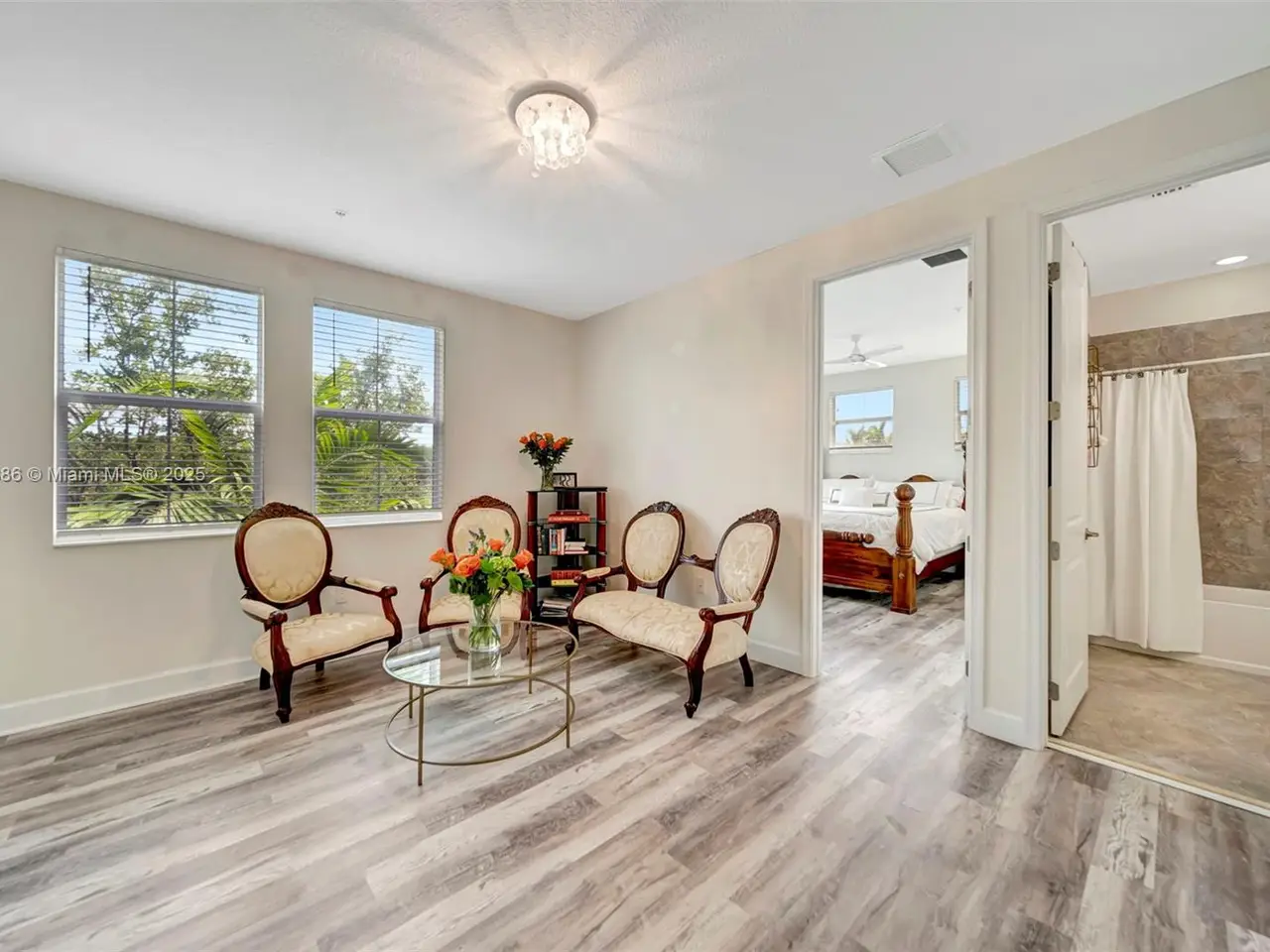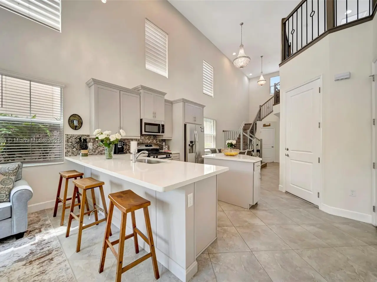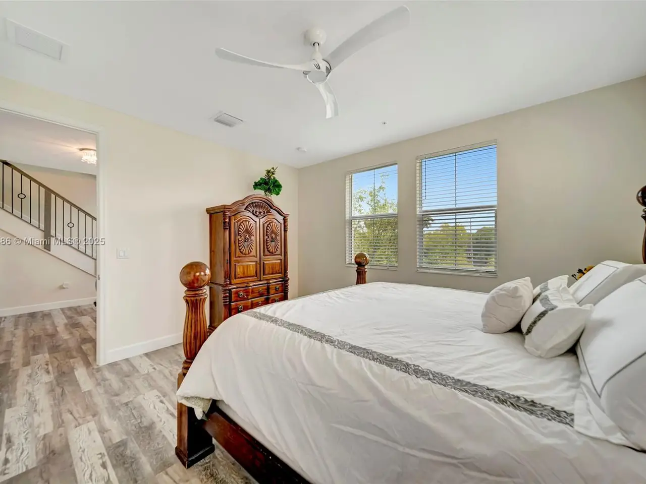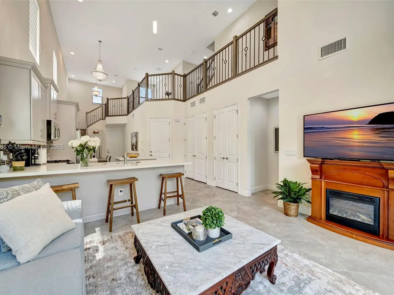 For the discerning buyer -- built in 2020 -- your very own dream home in Sunrise's prestigious 'Artesia' by Minto! This 4-story corner townhome is packed with personality & perfect for big families or guests galore—en suite bedrooms on 3 floors, w/two on the 2nd. One full bedroom & bathroom plus half-bath downstairs. Three living spaces (yes, THREE!), including a dreamy screened-in 4th-floor patio made for sunsets! (Plus a private backyard patio for relaxing). TONS of closet space! Tile floors downstairs, wood laminate upstairs. Two-car garage, gas stove & water heater for energy efficiency. Resort-style luxury with 3 pools, hot tub, saunas, walking paths, indoor basketball court, gym, 3 tennis/pickleball courts, conference room, small ballroom, billiard room and 24/7 guard-gated security.