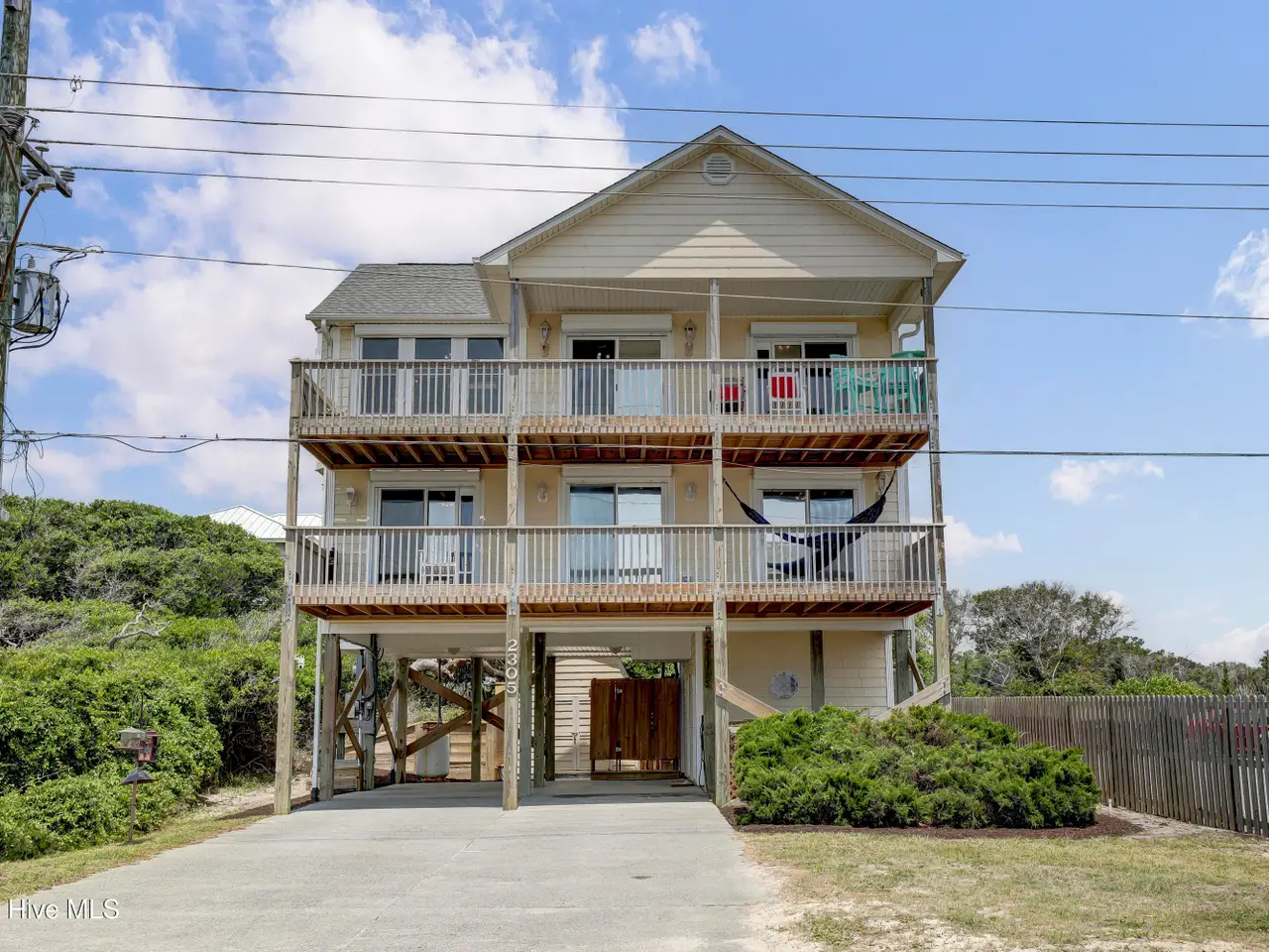 Second row home with ocean and sound views, an elevator and private beach access. A total of 4 bedrooms and 3 full baths featuring an updated gourmet kitchen (2024) with quartz countertops and new KitchenAid appliances, a open living area with lots of windows and a covered deck on oceanside for maximum ocean views and wave watching in any weather. The dining area has water views of the sound for scenic sunset dinners. A bedroom and adjoining full bath has ocean views and access to the top floor oceanside deck as well and completes the top floor of this well maintained home. First living level has 2 guest bedrooms both with access to another oceanside deck and share a full bath in the hallway. An in-suite Master bedroom featuring spacious bath with separate shower and a large tub. Master has access to the partially covered oceanside deck great for rainy day reading. The ground level entry has been renovated to include an interior foyer, storage room with extra refrigerator and the added elevator for convenience. Extras include a central Vacuum system, storm shutters and solar film on upper floor windows. Outside there's a large storage shed, an hot and cold outside shower, and even a small enclosed dog yard for the pups. Private deeded beach access is shared with a neighbor and is just across the street.