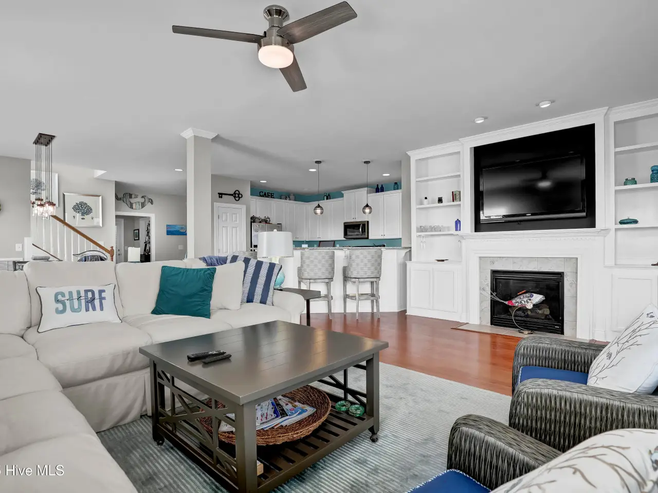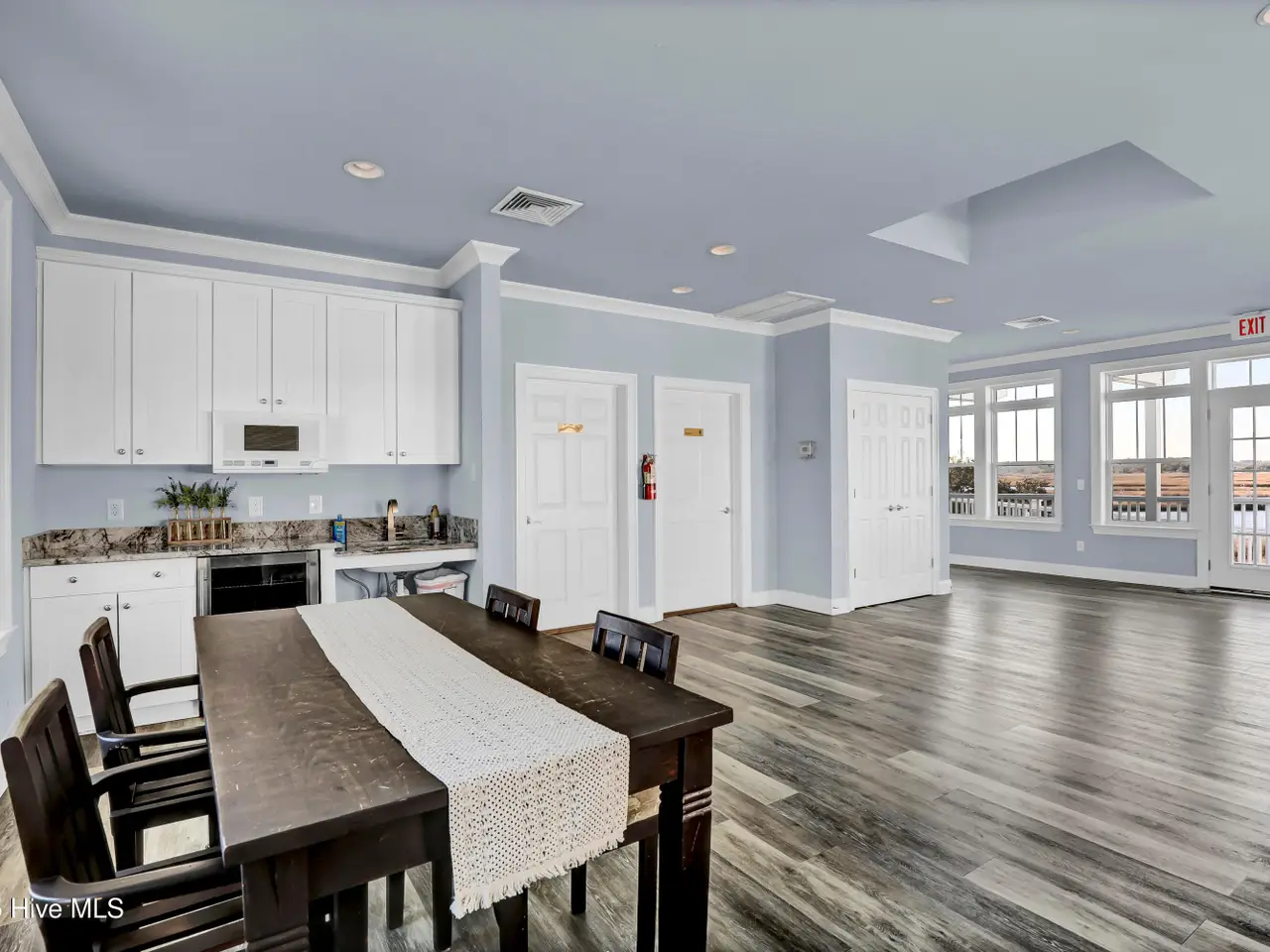 Stunning 4-bedroom, 4-bathroom Sound side waterfront townhome with 2,656 square feet of open living space. Standout features of this home are the incredible views from multiple decks and every room throughout the home, along with the expansive private dock with a spacious sun deck ideal for enjoying sunsets & hosting gatherings by the water. Inside, you'll find luxurious details such as custom living area built-in cabinetry installed in March 2025, 9-ft ceilings, wood flooring, a gas fireplace, and large windows that enhance the natural light. The gourmet kitchen area features granite countertops & bar with seating, stainless steel appliances, and a pantry. The living room and dining room are blended into one, and a large table makes it the perfect place to host. The primary suite is a true sanctuary, with amazing water views from inside & the private balcony. With a walk-in closet and an updated bath complete with a stand-alone tub, tiled shower, and dual vanity, this room is truly exquisite. The additional two upstairs bedrooms include an en-suite bathroom, and the first-floor bedroom/office offers additional versatility.Designed with coastal living in mind, there are new custom hurricane shutters providing peace of mind and protection throughout the year. The home also includes an outdoor shower, and access to a community pool/clubhouse with more fantastic marsh and water views. Located in a cul-de-sac setting, the property is close to public beach accesses, local dining, and shopping, which offers both privacy and convenience. Sold furnished with some exceptions. No short-term rentals allowed.