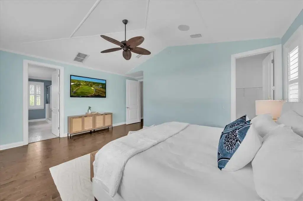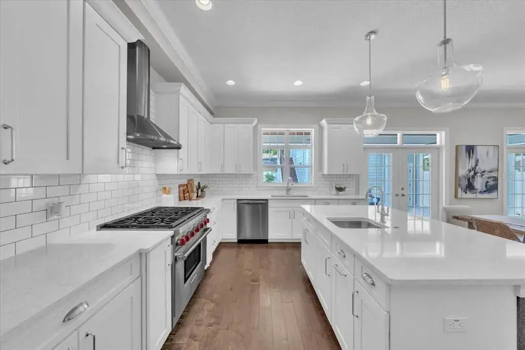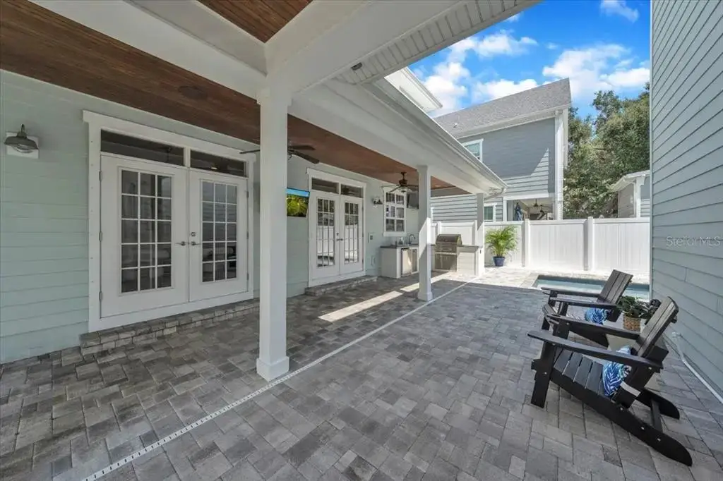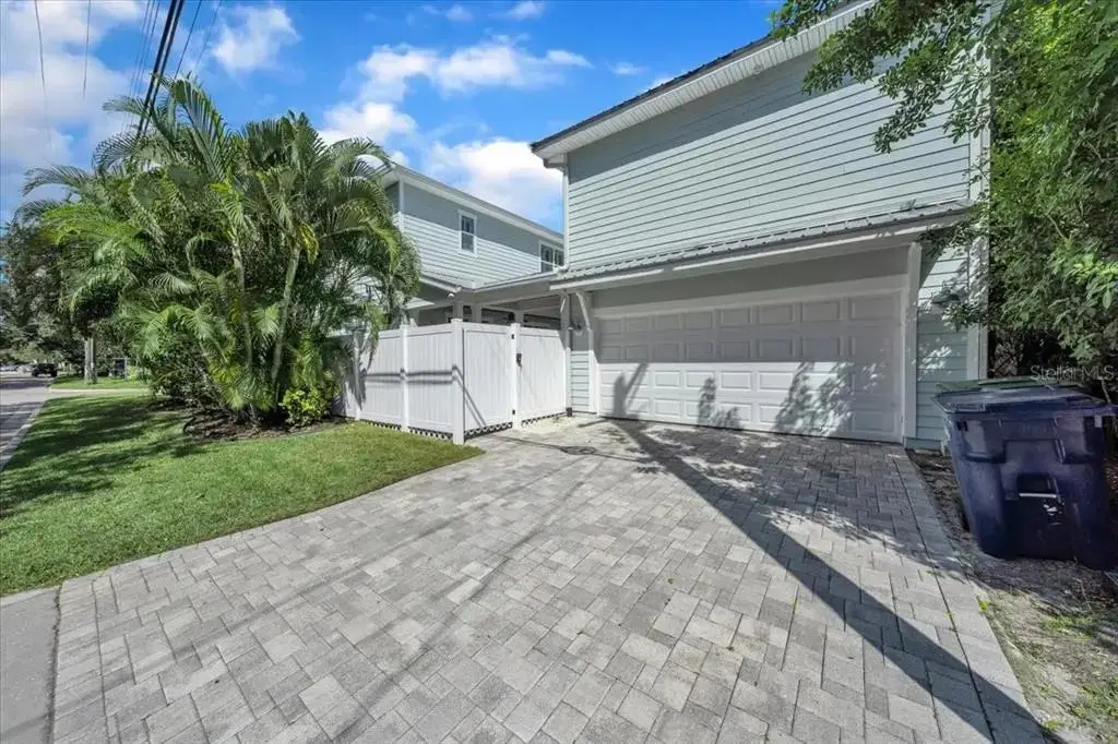 Under contract-accepting backup offers. This timeless Key West Craftsman, built in 2016, sits proudly on a corner lot in the heart of Palma Ceia. With 3,004 sq ft of living space, this home offers an open-concept design, high ceilings, and a detached garage topped by a private guest suite complete with full bath and kitchenette. You'll enjoy peace of mind knowing that this residence sits in flood zone X with no impact from last year's hurricanes. The first floor features a welcoming font porch with Bevolo gas lanterns wood-detailed ceiling, and swing, a flexible office or formal dining room, and a guest suite with private bath and walk-in closet. The spacious living area centers around a gas fireplace with custom built-ins and flows seamlessly into the chef's kitchen, boasting Quartz countertops, 6-burner Wolf gas range, large prep island, wine fridge, and butler's pantry. Upstairs, the Owner's Retreat includes vaulted beadboard ceilings, dual walk-in closets, and a spa-like bath with double vanities and a walk-in shower. Two additional bedrooms share a Jack & Jill bath. The outdoor living area is designed for entertaining, complete with a 10x25 saltwater pool, outdoor kitchen and full pool bath. Additional features include hardwood floors, marble tile in baths, plantation shutters, surround sound with outdoor speakers, camera system, and custom closets. Located in one of South Tampa's most desirable neighborhoods, this home offers a rare combination of craftsmanship, modern upgrades, and indoor-outdoor living.