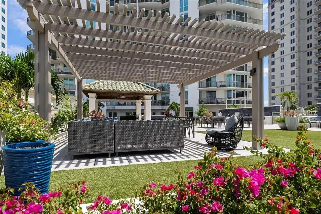 Welcome to 450 Knights Run Ave Unit 104 in The Plaza on Harbour Island — a stunning luxury brownstone-style residence blending elegance, comfort, and modern amenities. This home offers the perfect sanctuary with all the upscale features one expects from The Plaza community. Step inside to discover two spacious bedrooms and two and a half bathrooms, thoughtfully upgraded to maximize style and functionality. The residence boasts light and bright features throughout. The gourmet kitchen features an oversized quartz island with a waterfall on both sides and an inner section, perfect for entertaining or everyday living. All appliances are approximately a year and a half old, used sparingly and in excellent condition. Recent upgrades include a new Trane AC system ensuring optimal comfort year-round, new electrical wiring for recessed lighting throughout the home, including closets, ceilings, and bathrooms, with additional lighting installed above and inside bath cabinets. The bathrooms have been modernized with new sinks, a new toilet in the downstairs bathroom, and stylish seamless glass shower doors. All carpet has been replaced with high-quality flooring, and additional flooring under the staircase has been added to optimize storage space. The entire residence has been freshly painted, complemented by new curtain rods and blackout curtains in all bedrooms for ultimate privacy and comfort. The primary bedroom features a private balcony and outdoor sitting area, offering a tranquil space to relax and enjoy the beautiful surroundings while taking in all that Harbour Island has to offer. Each bathroom has updated ceiling and ventilation fans, enhancing functionality and airflow. The home also benefits from a private entrance to the outside, providing added convenience and exclusivity. Residents of The Plaza enjoy access to extraordinary amenities including a fourth-floor gym, conference and meeting rooms, a pool, spa, sauna, grills, fireplace, private business center, additional conference rooms, and guest suites. With all these exceptional features and upgrades, 450 Knights Run Ave Unit 104 offers a premier Harbour Island lifestyle in a luxurious, meticulously maintained home. Located in a prime area, this residence is within walking distance of Water Street, Amalie Arena, Sparkman’s Wharf, and the brand new Lifetime Fitness facility — placing the best of Harbour Island and downtown Tampa at your doorstep. This exceptional home combines luxury, convenience, and a premier location for the ultimate urban lifestyle.