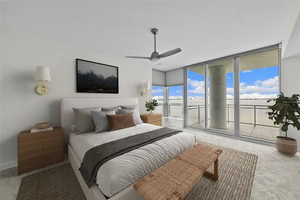 One or more photo(s) has been virtually staged. Don't miss this rare opportunity at VIRAGE BAYSHORE! This gorgeous front Bay-facing 3 bedroom + den/office, 3.5 bath condo boasts sweeping views of Hillsborough Bay and the downtown Tampa skyline. Step off the elevator directly into your private foyer and enter into gorgeous Bay and Bayshore Blvd. views. This home features beautiful porcelain tile throughout the open living area, gorgeous cabinetry, Wolf Induction Cooktop (gas available), Subzero Refrigerator and Pantry with dry bar. This kitchen is open to the light-filled Great Room and perfect for entertaining. The refrigerator located in the storage closet is excluded from the sale. Start the day on the spacious covered terrace, watching the sunrise with a cup of coffee. The Primary Bedroom also has access to the front balcony, a large spa-like bath with an oversized glass shower, separate tub, and a nicely finished custom walk-in closet. The corner den/office has access to the 2nd balcony, and is a great spot for sunsets and views looking South down Bayshore Blvd. Each guest suite has a private ensuite bath and a large walk-in closet. Bonus features include: high ceilings with added recessed lighting, motorized window shades, air conditioned storage closet adjacent to residence, and 2 parking spaces. The Virage is a luxury high-rise featuring 24/7 front desk concierge, resort-style pool overlooking Bayshore, spa, grilling area, fire-pit & social seating, club room, meeting room, a large gym, massage room, private dog walk, dog spa, bike room, air-conditioned storage, and 2 guest suites which can be reserved for your guests. Don't miss this rare opportunity to live the Virage Bayshore lifestyle!