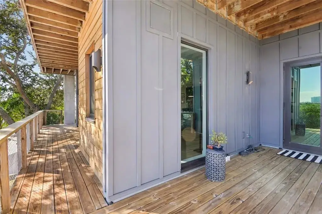 Modern Waterfront Living Meets Exceptional Engineering on Flamingo ////  Completed in 2023, this architecturally inspired 3-story, 4-bedroom / 4-bath waterfront home unites modern design, enduring materials, and fortified construction in one extraordinary residence. Built to stringent standards with 8" (2nd) and 6" (3rd) framing, continuous threaded rods from roof to foundation, and spray-foam insulation in all walls, floors, and ceilings... it offers a level of permanence and efficiency rare in coastal construction. The first level features solid block construction intentionally designed to take in water in the event of a flood, while the upper living levels rise confidently above the snook-filled deep-water canal. /// The main (2nd) floor serves as the heart of the home, where light and volume define a sophisticated open living space surrounded by treetop views and balconies. White oak luxury flooring, expansive glass, and a seamless indoor-outdoor flow create a tranquil "treehouse" ambiance. The custom kitchen is a study in function and form, featuring an AGA Mercury induction range, prep sink, pot filler, deep drawers, walk-in pantry, butler's pantry, beverage and wine refrigeration, and a libation station... crafted for both culinary precision and effortless entertainment. This level also includes one full bedroom and bath, ideal for guests or a home office. /// The top (3rd) floor hosts the private primary suite with its own terrace, along with two additional bedrooms and baths... each framed by natural light, thoughtful design, and a private balcony. /// On the ground level, the solid block foundation includes an oversized two-car garage currently configured for two vehicles but easily adaptable to accommodate four. The extended driveway offers parking for six additional cars. Additional highlights include a 300-amp electric service (no gas), elevator-ready design for first-to-second-floor access, underground utilities, EV charger-ready, security camera system, 60-mil commercial-grade TPO roof, and pre-wired for a modern wood-burning fireplace. The property features a new seawall (2021), deep-water canal access with gorgeous sunset views, and a dock permit ready to go. Located across from the future Isles of Old Tampa Bay... an enclave of 67 multi-million-dollar waterfront residences, 4828 Flamingo represents a rare convergence of architecture, engineering, and artistry... where strength meets serenity, and every detail is designed to endure.