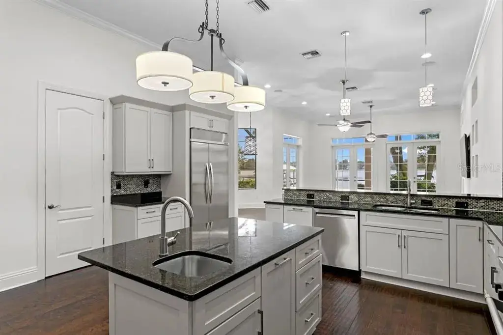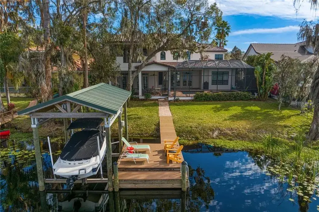 Experience unparalleled luxury in this custom Bayfair-built estate, nestled on the serene shores of Lake Platt within the gated community of Haven Bend. This meticulously designed 5-bedroom, 4.5-bathroom residence offers over 6,100 sq ft of refined living space, seamlessly blending elegance with everyday comfort. The home is directly adjacent to Carrollwood Day School, one of Tampa’s top-rated private institutions—an unbeatable convenience for families seeking premier education. Key Features: • Grand Entrance: A striking iron and glass door opens to a two-story foyer featuring a sweeping staircase and rich wood floors that set the tone for the home’s sophisticated ambiance. • Gourmet Kitchen: Equipped with a gas range, double ovens, a spacious island, built-in desk area, and premium KitchenAid appliances, the kitchen flows effortlessly into the family room—perfect for entertaining. • Primary Suite Retreat: Located on the main floor, the expansive primary suite boasts new wood flooring, direct pool access, a custom walk-in closet with center island, and a spa-like en-suite bathroom. • Private Guest/Flex Suite: Just off the 3-car garage, a private staircase leads to a versatile suite featuring a bedroom, full bath, and a spacious sitting or family room—ideal for guests, an in-law setup, a college student retreat, or a private workspace. • Upstairs Layout: The second level includes a dedicated media/entertainment room, a private office (which could function as a 6th bedroom), and three additional spacious bedrooms—offering flexible living for families of all sizes. • Outdoor Oasis: The backyard features a heated, screened-in pool, an outdoor kitchen, and a private dock with boat lift—perfect for lakeside entertaining and year-round enjoyment on Lake Platt. • Recent Upgrades: A brand-new barrel tile roof installed in November 2024 enhances both curb appeal and peace of mind. • This thoughtfully designed home offers a smart, functional layout with the primary bedroom on the main level, a private guest/flex suite above the garage, and the remaining bedrooms and entertainment spaces upstairs. Located directly on Lake Platt, a ski-sized lake, you’ll enjoy boating, paddleboarding, and sunset views right from your backyard. •. Carrollwood Day School—right next door—is nationally recognized for its rigorous IB curriculum and Pre-K–12 programs, making this home ideal for families prioritizing both lifestyle and education. •. A rare blend of privacy, sophistication, and location—just minutes from dining, shopping, and all that Tampa Bay has to offer. This is lakefront living at its finest. •The backyard extends to the water’s edge, where a private boat dock with a 4,500 lb lift with covered roof provides direct access to Lake Platt—perfect for boating, fishing, and enjoying waterfront living. This home has seen numerous recent updates, including a barrel tile roof installed in November 2024, three air conditioning units replaced in May 2024, February 2024, and October 2018, KitchenAid dishwasher installed in November 2024, garbage disposals replaced in December 2024 and November 2023, outdoor barbecue grill added in October 2024, wood floors installed in the primary bedroom and closet in July 2024, pool heater installed in September 2022, a variable speed pool pump replaced in September 2022, and a new salt system added in July 2022.