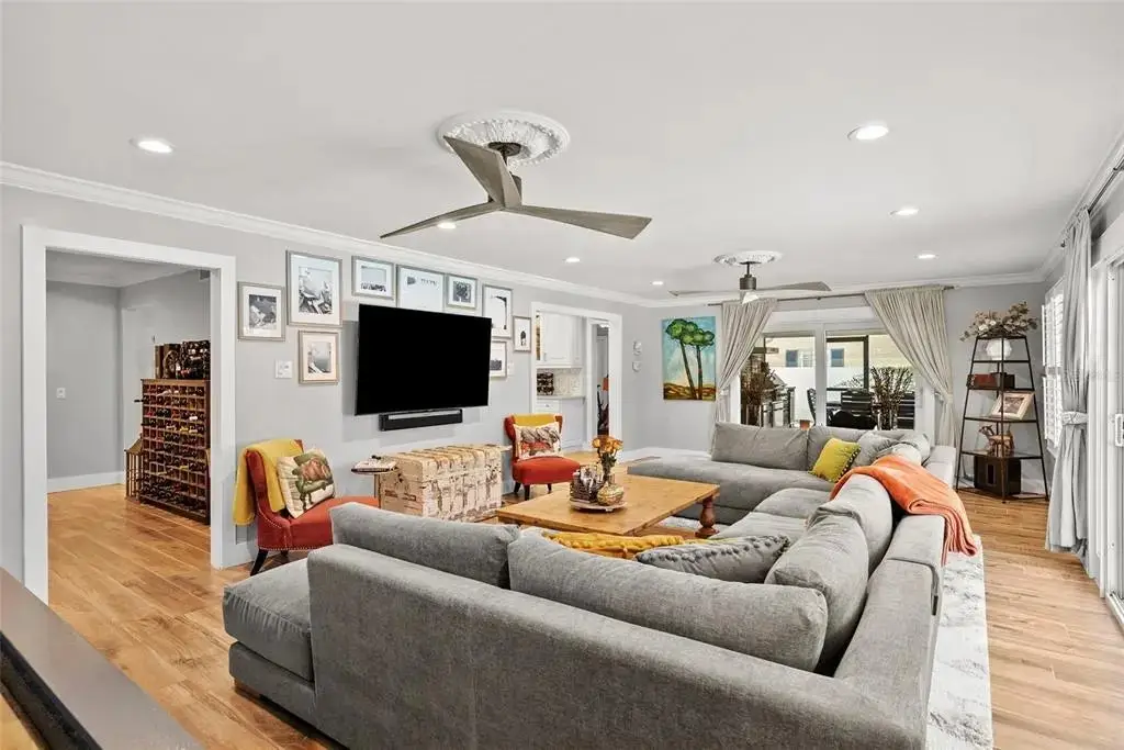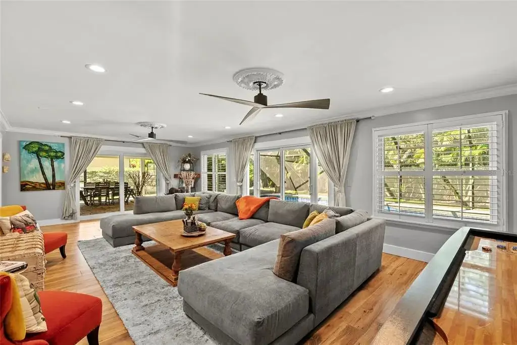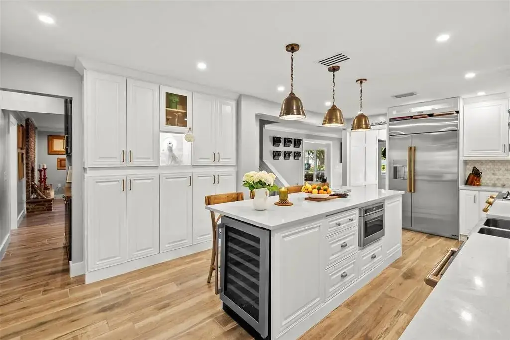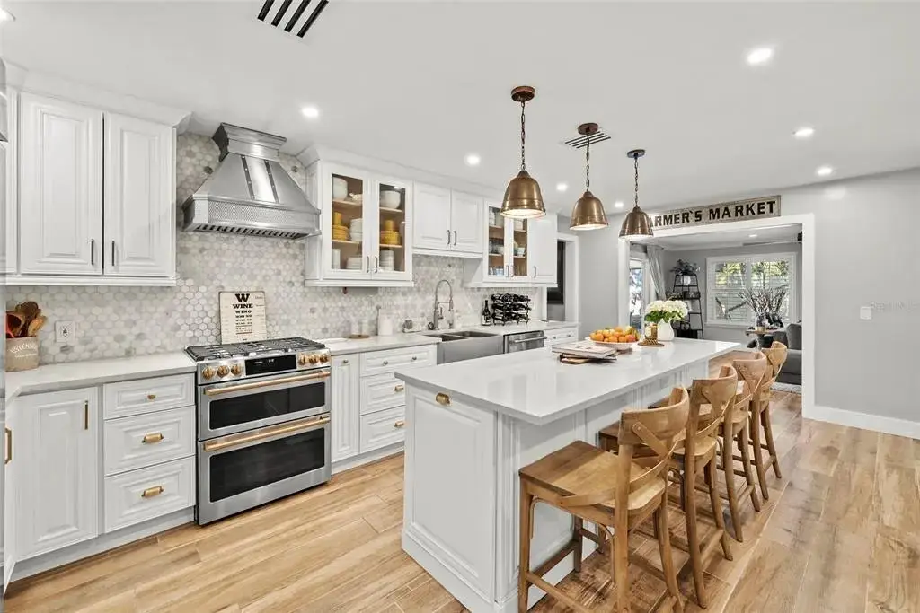 Tucked away on a quiet cul-de-sac in the heart of South Tampa, this reimagined modern farmhouse is where design and lifestyle intertwine. Beyond its classic façade lies a home that has undergone a complete transformation — a blend of timeless architecture and the art of modern living. Step inside and feel the energy of open, sun-filled spaces that invite connection and creativity. Every room flows seamlessly into the next — from the welcoming front living area (perfect for cocktails and conversation) to the expansive family room that opens effortlessly to the outdoors. Whether it’s movie night, a dinner party, or a spontaneous Sunday brunch, this home adapts to every mood and moment. At its heart is a brand-new chef’s kitchen and dedicated bar area that inspire culinary play. Outfitted with high-end GE Café appliances, a gas range, wine fridge, and generous cabinetry, it’s a space designed for both cooking and gathering. The adjacent flex room doubles beautifully as a creative studio, home gym, or vibrant workspace. Slide open the doors and step into your own backyard retreat — a reimagined entertainment oasis. The sparkling pool shimmers beneath string lights, while the paver deck, outdoor kitchen, and gas fireplace set the stage for unforgettable evenings. Grill, gather, laugh, and lounge — this is where the best memories are made. Upstairs, the private quarters balance tranquility with sophistication. The primary suite feels like a boutique escape with dual walk-in closets and a spa-worthy bath. Two guest suites share a chic Jack-and-Jill bath, and a third-floor retreat offers perfect privacy for guests, an au pair, an independent teenager or an artist in residence. Completely move-in ready with new AC systems (2025), a newer roof (2023), new pool heater (2023), gorgeous landscape lighting (2022), newer lanai (2020), plus a 110V EV charger in the garage — every detail has been considered. Within walking distance to Mabry, Coleman, and St. Mary’s schools, this home captures the art of living beautifully — where every corner invites you to entertain, create, and simply be.