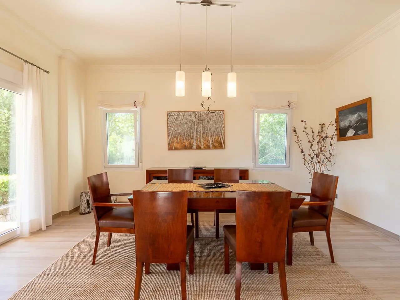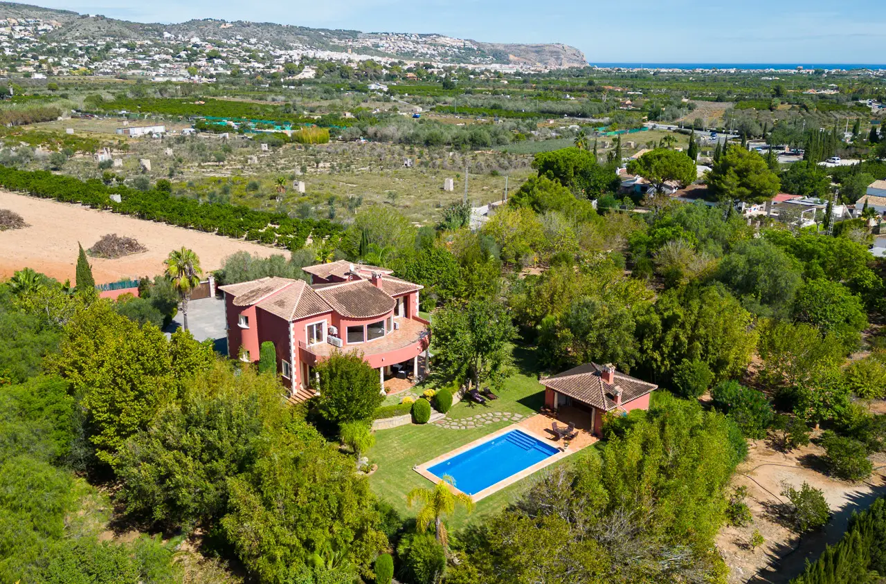 This impressive villa is located in the prestigious area of Tarraula, in Jávea, Alicante. With an architectural design that combines elegance and functionality, the property offers a luxurious and comfortable living environment. The villa, built on a spacious plot of approximately 10,500m², features a constructed area of over 600m², providing generous space for personal and family enjoyment. The villa boasts five bedrooms and four bathrooms, two of which are en-suite, ensuring privacy and comfort for all residents. The interior of the property is adorned with marble and parquet floors and is equipped with air conditioning and underfloor heating throughout the house, ensuring a pleasant atmosphere year-round. The kitchen is fully equipped and includes a laundry area. Outside, the villa offers a private oasis with a swimming pool and a garden, both with panoramic views of the mountains and countryside. The terraces, both covered and uncovered, are ideal for enjoying the tranquility of the surroundings, while the barbecue area invites outdoor gatherings. The villa is also equipped with an automatic irrigation system for the garden, ensuring its maintenance with minimal effort. Additional features include a private garage with space for two vehicles and a basement designed as a games room, ideal for leisure activities. The property is well-connected, located near amenities, the sea, beaches, golf courses, and the city center, offering a perfect balance between privacy and accessibility. This villa in Tarraula is a unique opportunity for those seeking a dream home in a natural setting without compromising modern conveniences, very close to the Jávea Golf Club and the city center.