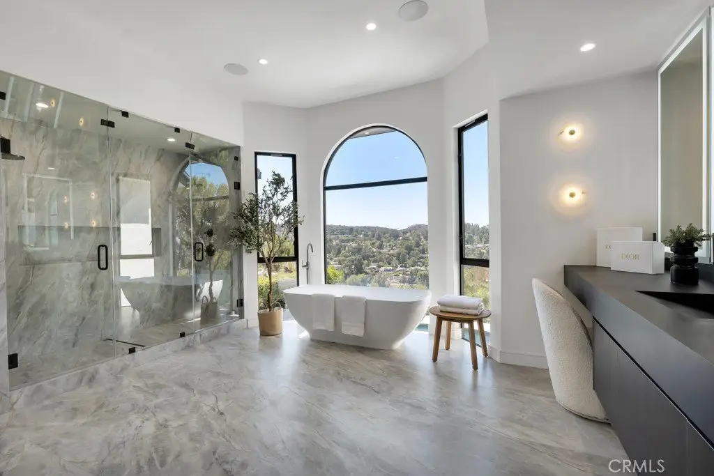 Welcome to 4015 Clarinda Drive, a newly remodeled contemporary estate in one of Tarzana Hills most coveted neighborhoods, offering 5,100 square feet of elite luxurious living on an expansive 18,819 square foot lot with breathtaking panoramic views from virtually everywhere on the property. Seller recently invested over $1,000,000 to remodel the entire home with custom high end expensive finishes throughout. The oversized open floor plan showcases soaring ceilings, Restoration Hardware chandeliers and light fixtures, LED mirrors, new doors and windows, custom cabinetry, wide-plank hardwood flooring, and so much more. A designer's dream of a gourmet chef’s kitchen features true seductive warm flow, a large stone island, brand new Thermador appliances, sensational views, and an abundance of space to entertain. The massive living room has a romantic oversized fireplace, sleek wet bar, exit doors to the yard, and crisp lines. The primary suite is a gorgeous private retreat complete with a modern fireplace, custom walk-in closets with LED lighting, and a spa-inspired ensuite bathroom with dual vanities, an oversized glass shower, and a freestanding soaking tub framed by floor-to-ceiling windows capturing stunning valley views and cascading illuminating natural light. The additional bedrooms are generously sized, each boasting their own designer bathrooms with modern stonework and fixtures. For added convenience, the home includes two laundry rooms, and plentiful storage space. The backyard is designed for upscale resort-style living, with a brand-new pool and spa, built-in BBQ, fire pit lounge area, lavish landscaping, expansive turf lawn, new security gates, sophisticated outdoor lighting, custom hardscape and walkways, and intimate entertaining areas everywhere—all set against massive sweeping city and mountain views. You will enjoy epic daily sunsets with glorious cotton candy skies and the utmost in exclusivity and privacy. Additional upgrades include modern garage doors, gorgeous fireplaces, elegant pivot entry door, new air conditioning units, tankless water heaters, detailed carpentry, and custom designed closets throughout. Situated only minutes from Ventura Boulevard’s premier shopping, high-end dining and entertainment, this move-in ready estate offers the ultimate luxurious Tarzana family living.