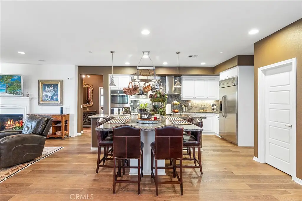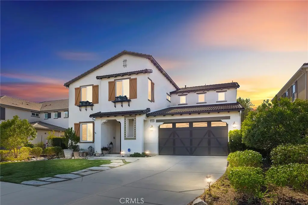 Absolutely the best in the beautiful Belle Maison community of Temecula! Located immediately adjacent to the Temecula Wine Country - this spectacular home boasts top quality upgrades and decorating in every corner, a spacious open floor plan with 5 bedrooms, 3 baths, plus office and loft, and a huge yard with two covered patios and an outdoor fireplace! The floor plan features one bedroom and full bath downstairs. There is a huge Formal Dining Room with large custom rustic chandelier, spacious open Great Room with a cozy fireplace, and Gourmet Kitchen with center island, built-in Breakfast Island attached, built-in stainless GE Monogram refrigerator and appliances, walk-in pantry, white cabinets, and more. Downstairs there is also a formal living room or office option. The stairs are lined with a wrought iron railing, and upstairs you will find a huge main suite with a large workout area/sitting room, a media room/loft at the top of the stairs, and three other bedrooms. One of the bedrooms is currently used as an office, and the office furniture is available to stay. Carpeting is absolutely the best, hardwood oak flooring and quality tile, all with a Neutral pallet, plantation shutters, custom draperies, custom lighting add to the ambiance. In the elegant backyard, you will find two covered patios, one with a fireplace, many fruit trees, flowering shrubs, cypress and pine trees, and walkways creating a private oasis. A 3-car garage with many overhead storage racks, immaculate epoxy flooring, Tesla Batteries are included, and the leased solar system provides discounted electric costs. All Televisions are included, and some of the furnishings such as the desk in the office could be available.