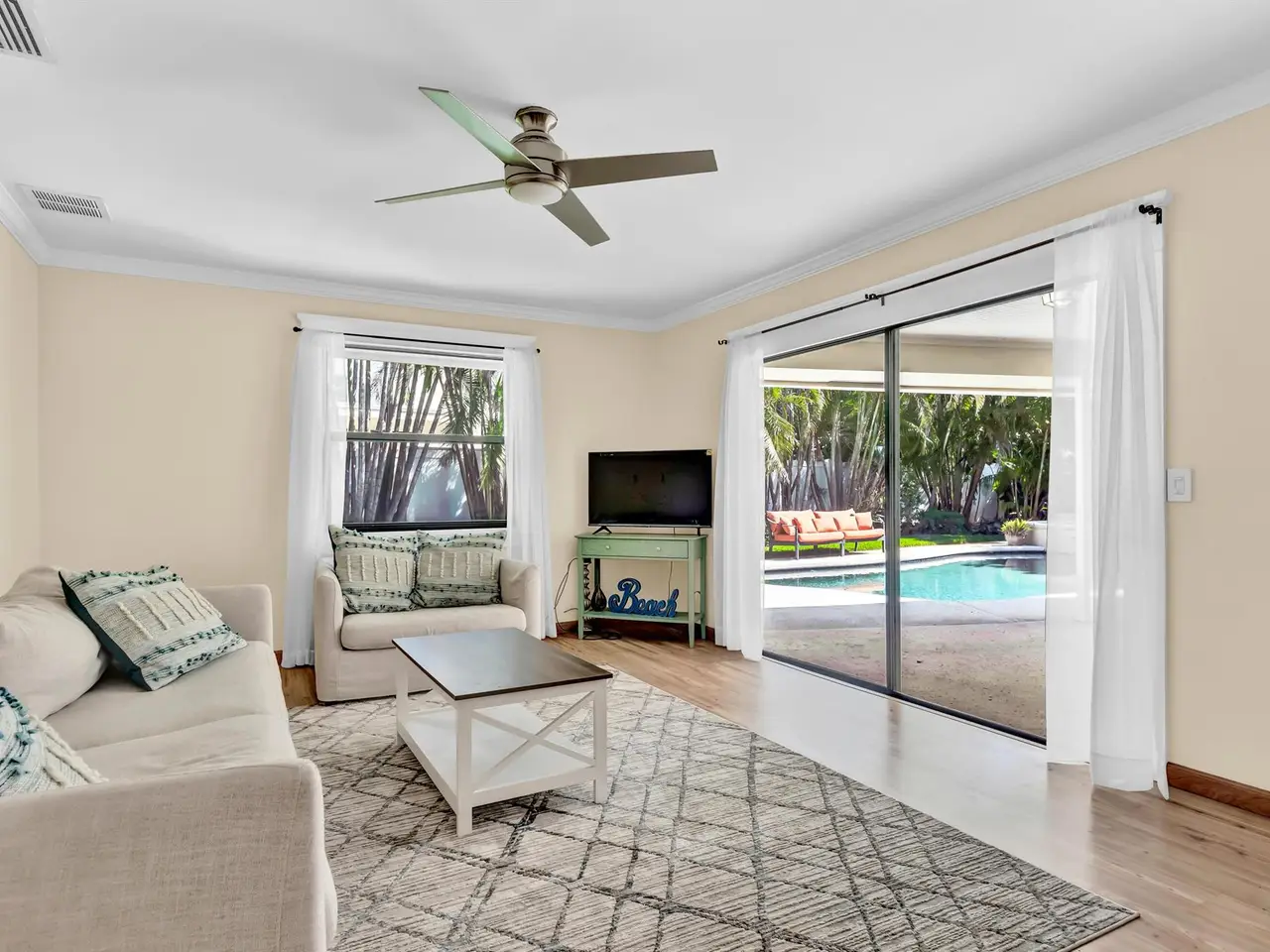 Welcome to the charming Village of Tequesta! This home perfectly blends small-town character with an unbeatable location. Inside, you'll find 3 spacious bedrooms, 2 full bathrooms, and a versatile den that can be used as an office or easily converted into a fourth bedroom. The split floor plan offers two separate living areas, giving everyone space to relax and enjoy. The newly renovated kitchen is light, bright, and open--featuring beautiful quartz countertops, newer stainless steel appliances, and a seamless flow into the dining and living areas. The main living room boasts vaulted ceilings and luxury vinyl flooring, creating a modern yet comfortable atmosphere. SEE MORE REMARKS...
